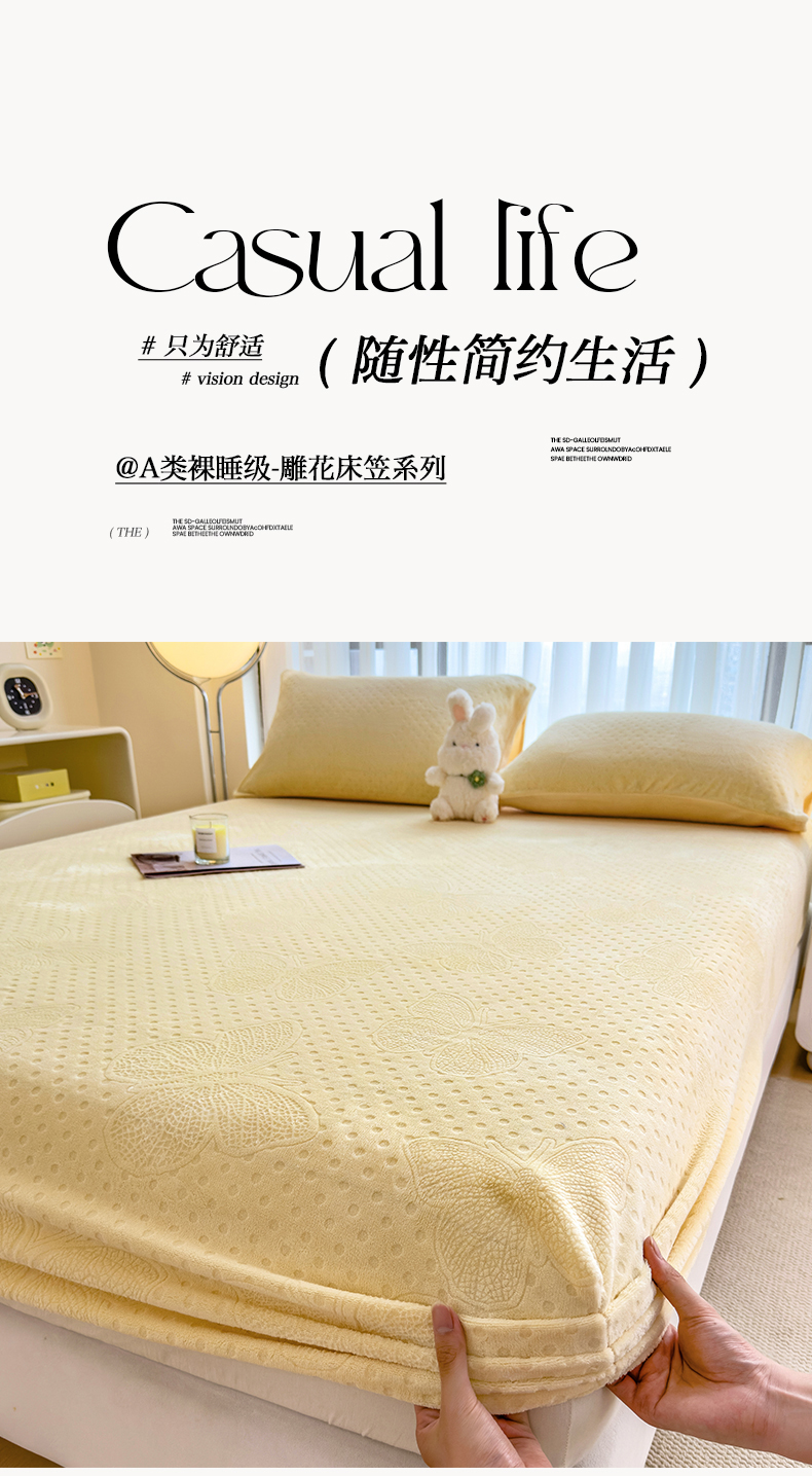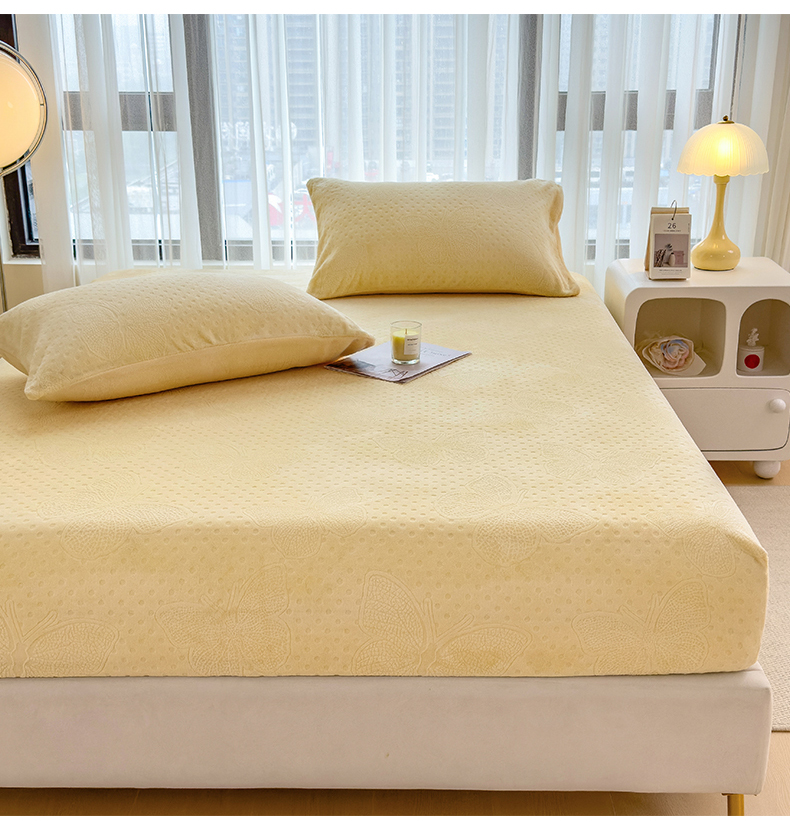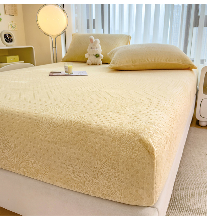 当前位置: 91家纺网 > 商品网购 > 床品套件 > 四件套 > 牛奶绒四件套 > 摩妮卡 2025新款小清新雕花牛奶绒床笠单床笠床笠三件套 路易黄