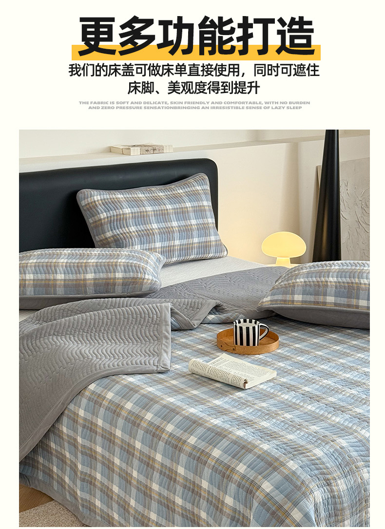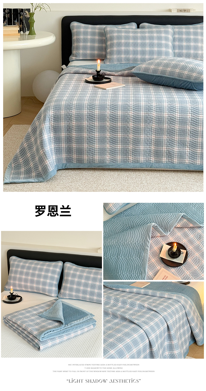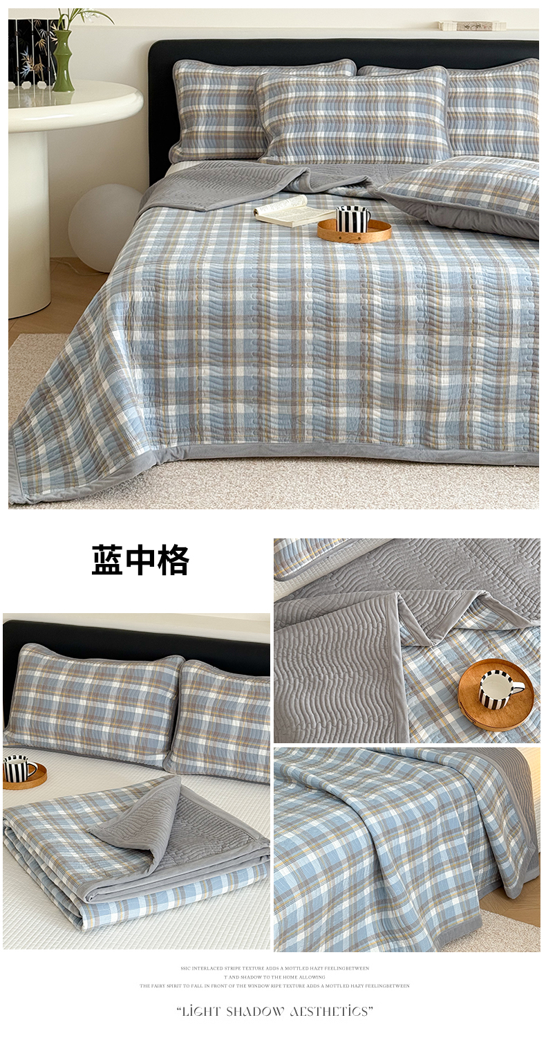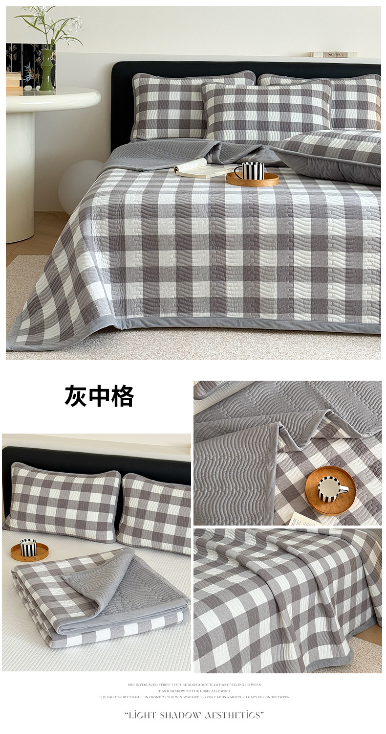 当前位置: 91家纺网 > 商品网购 > 床上用品 > 床盖 > 乐野家居 2025新款A类全棉色织水洗棉棉加绒床盖三件套 灰中格