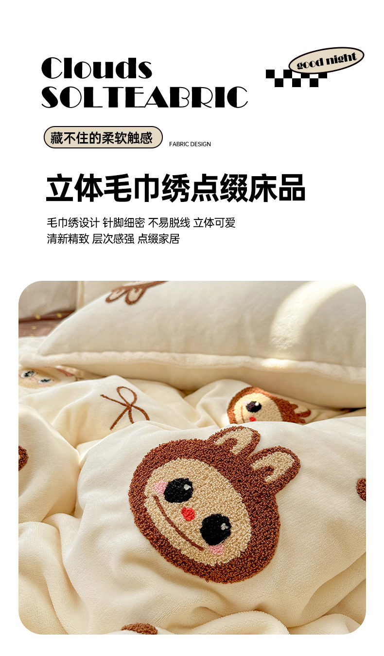 当前位置: 91家纺网 > 商品网购 > 床品套件 > 四件套 > 牛奶绒四件套 > KT猫直营店 2025新款高克重大版毛巾绣牛奶绒卡通四件套 蝴蝶结布布