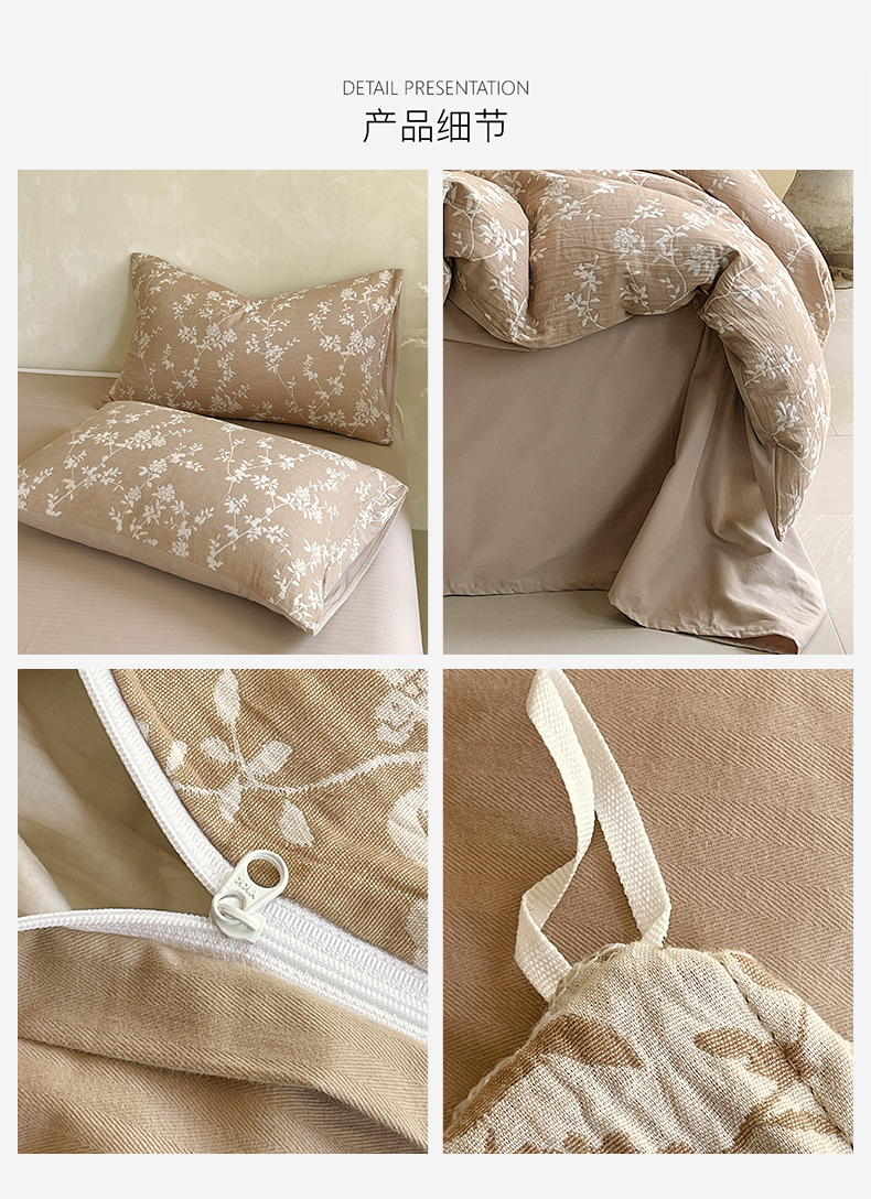 商品名称:佰亿莱 2026新款棉麻双层纱四件套第二批 夏日森林-粉