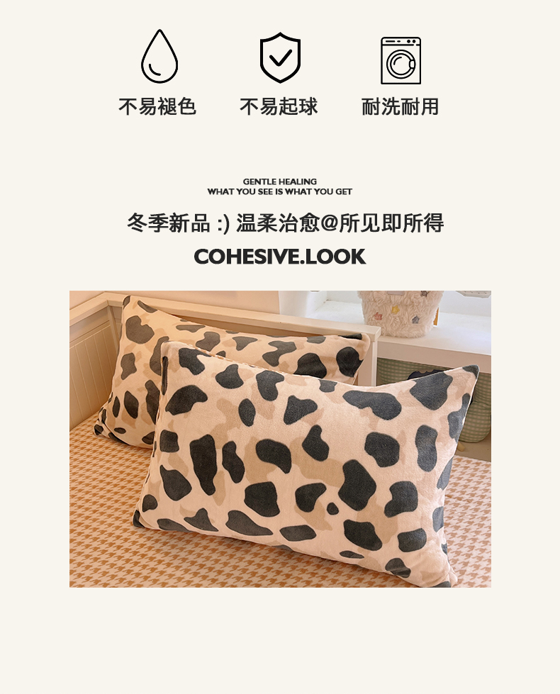 商品名称:桃子家居 2025新款A类ins小清新少女奶油卡通可爱加厚牛奶绒四件套 绒-豹点点绿咖