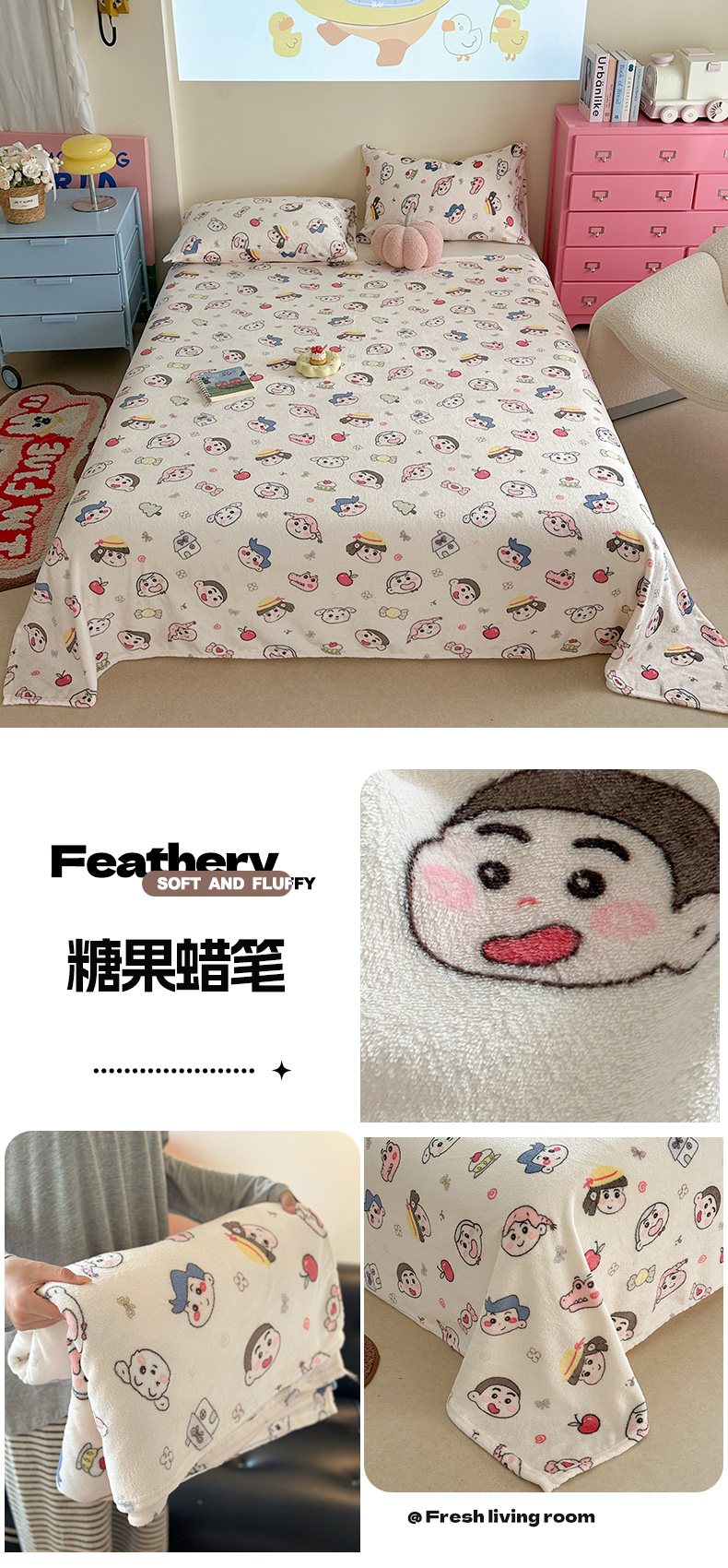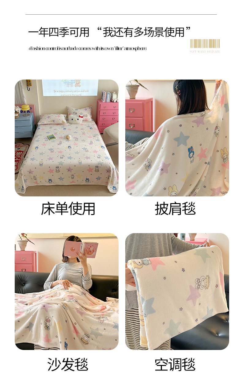 贝扬思家纺 2025新款四季款双面印花牛奶绒毛毯空调毯 QQ企鹅
