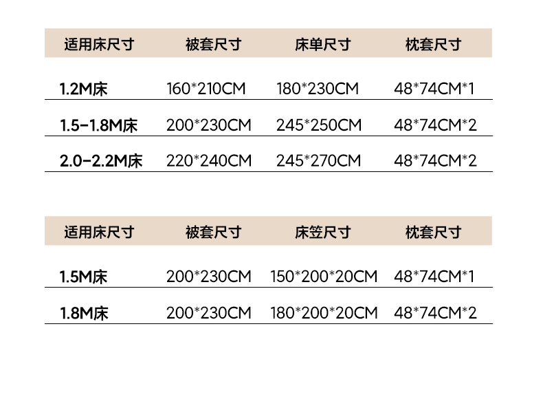 【床笠款】1.8四件套-被套200x230 | ¥130.00 |