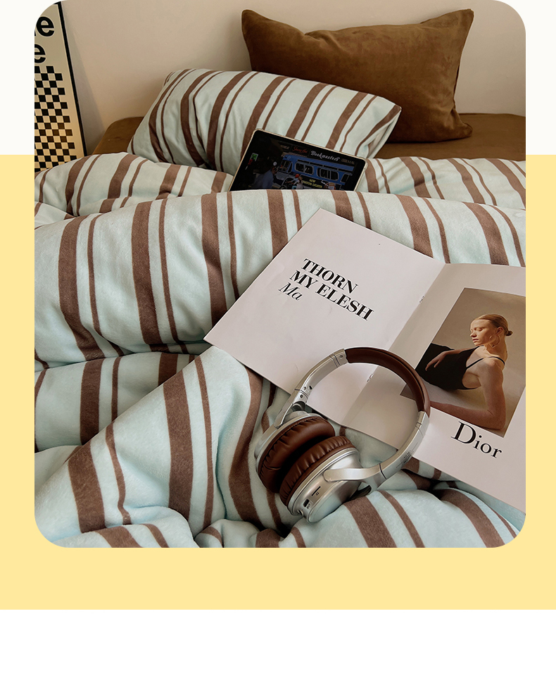 当前位置: 91家纺网 > 商品网购 > 床品套件 > 四件套 > 牛奶绒四件套 > 蜜宿 2025新款混搭条纹牛奶绒四件套(小号默认条纹枕套一只)可以配小号四件套枕套9/一只;标准和加大(默认混搭枕套条纹一只,纯色一只,可以备注更换!) 薄荷生巧