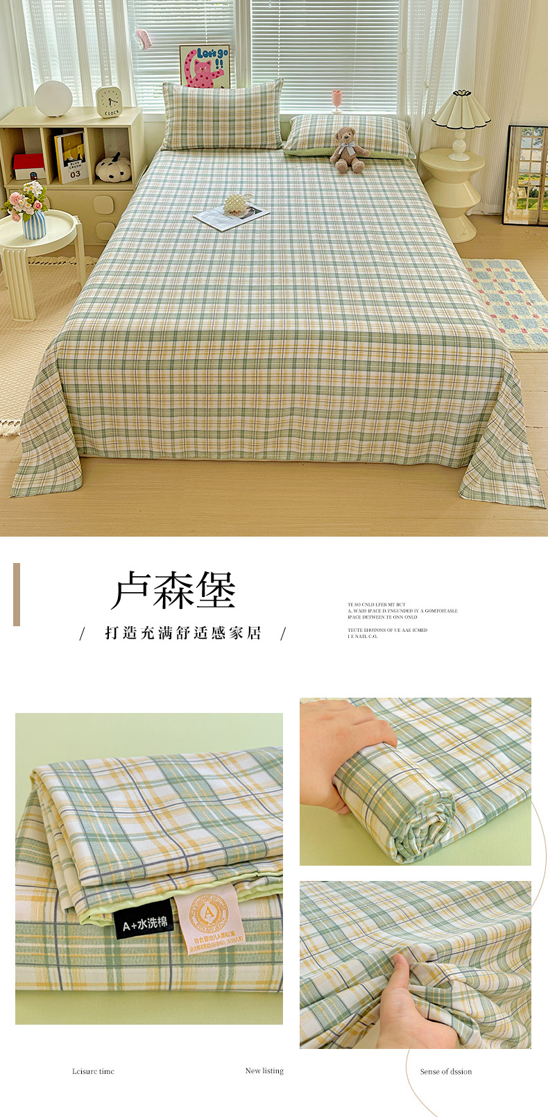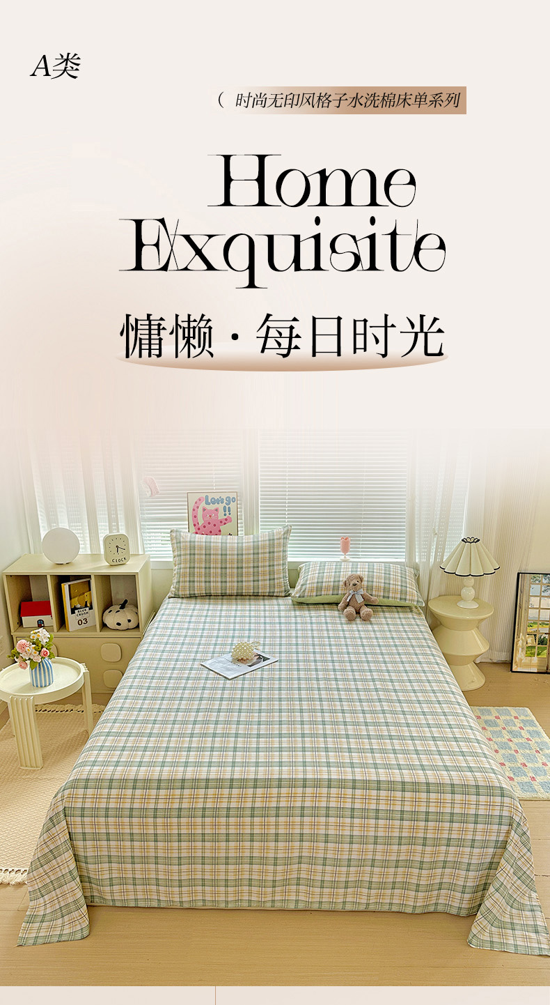 商品名称:(总)南通菲度家纺 2025新款ins博主风软糯糯亲肤印花热款纯色格子无印风水洗棉时尚单床单