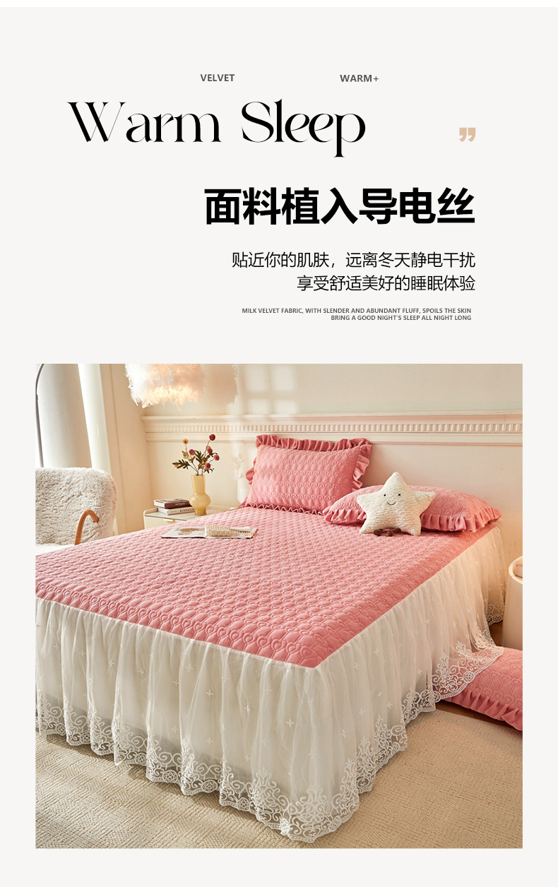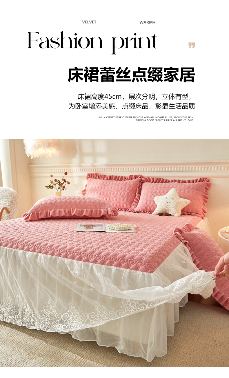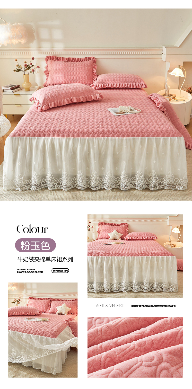 • 91家纺网 家纺一手货源 找家纺 怡源梦 2025新款A类牛奶绒夹棉床裙单件-甜心公主系列 粉玉色