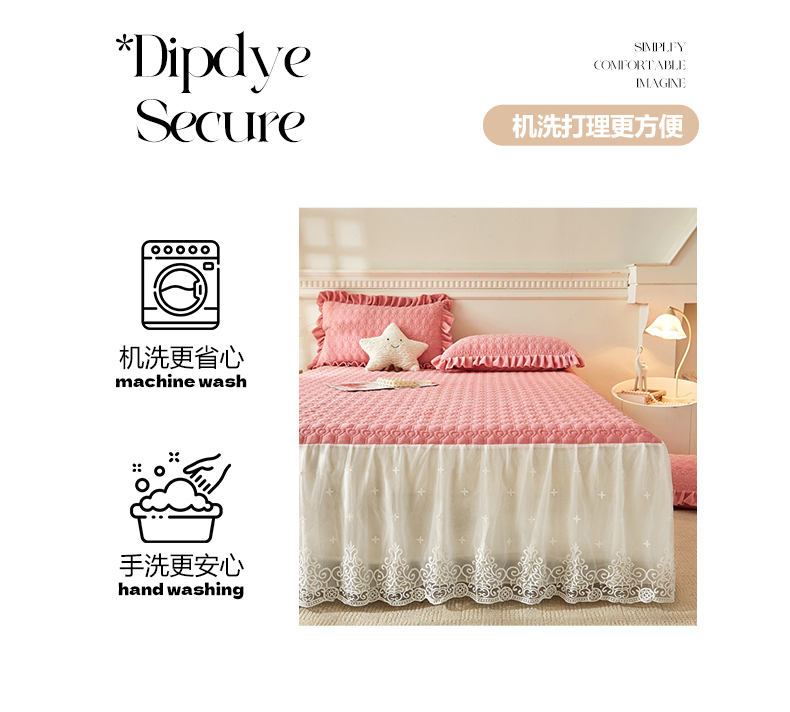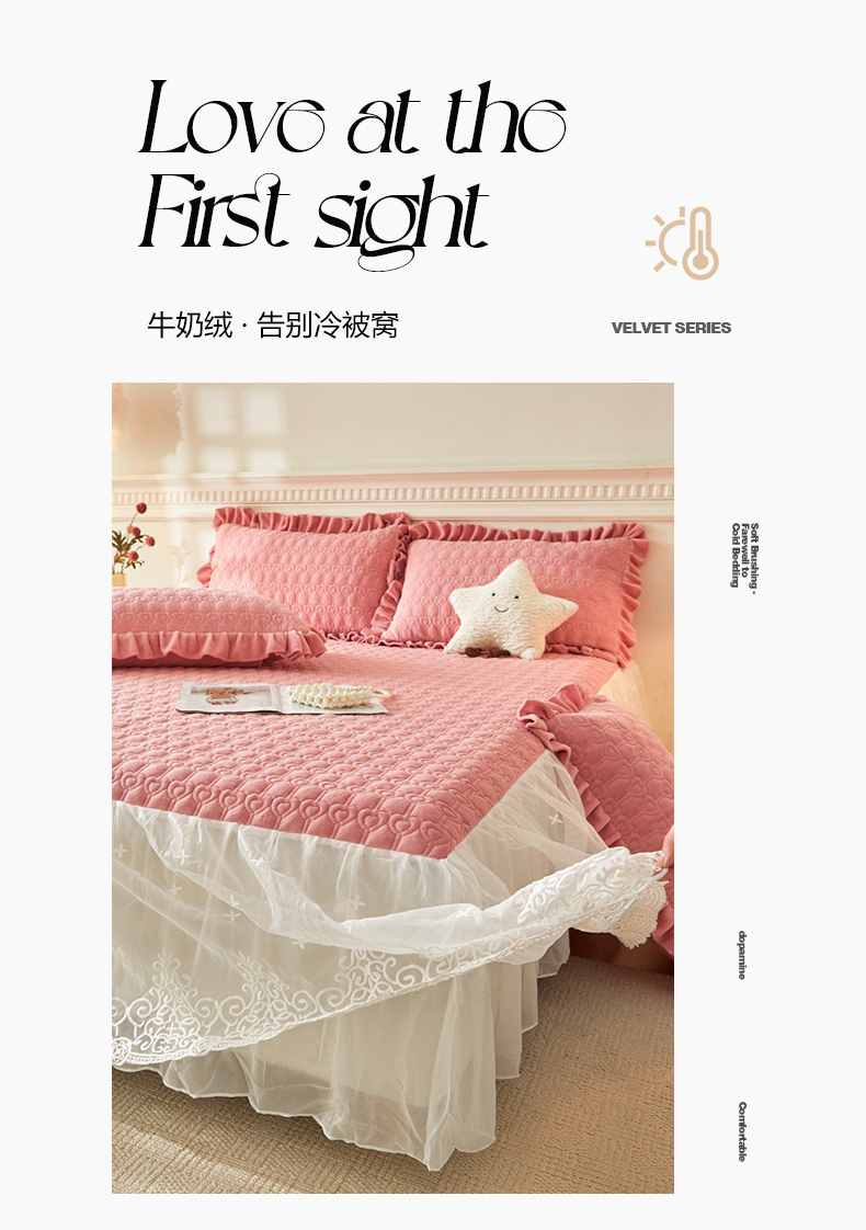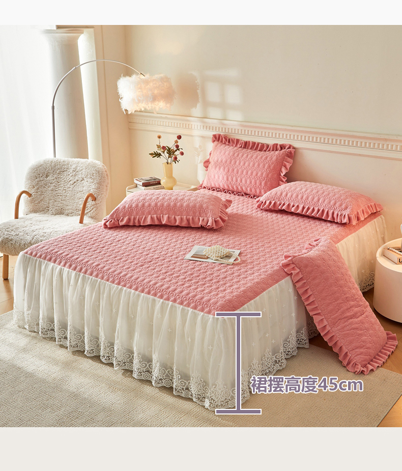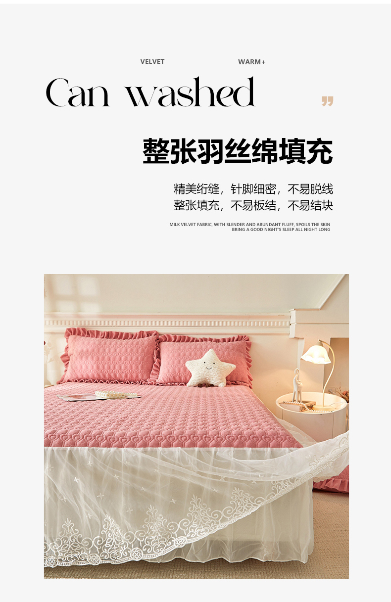 • 91家纺网 家纺一手货源 找家纺 怡源梦 2025新款A类牛奶绒夹棉床裙单件-甜心公主系列 粉玉色