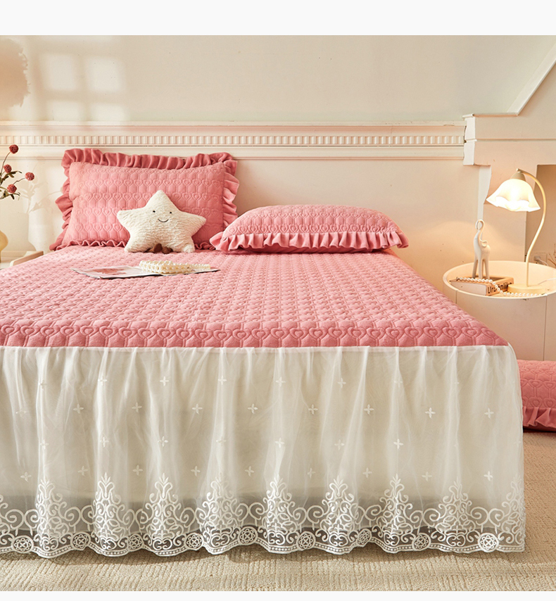 怡源梦 2025新款A类牛奶绒夹棉床裙单件-甜心公主系列 粉玉色