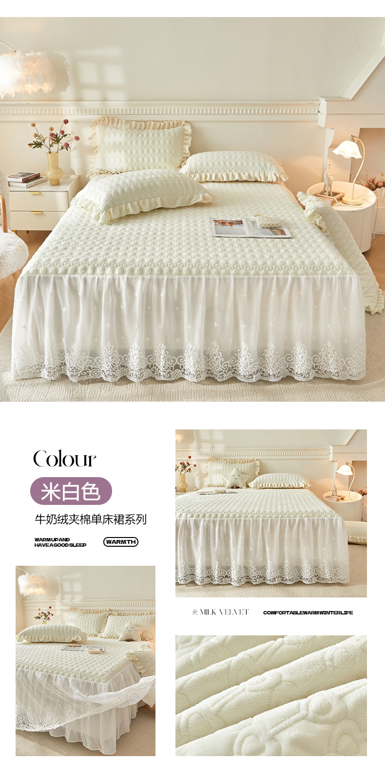 (总)怡源梦 2025新款A类牛奶绒夹棉床裙单件-甜心公主系列,米白色,大红色,粉玉色,灰色,咖色,绿色,紫色