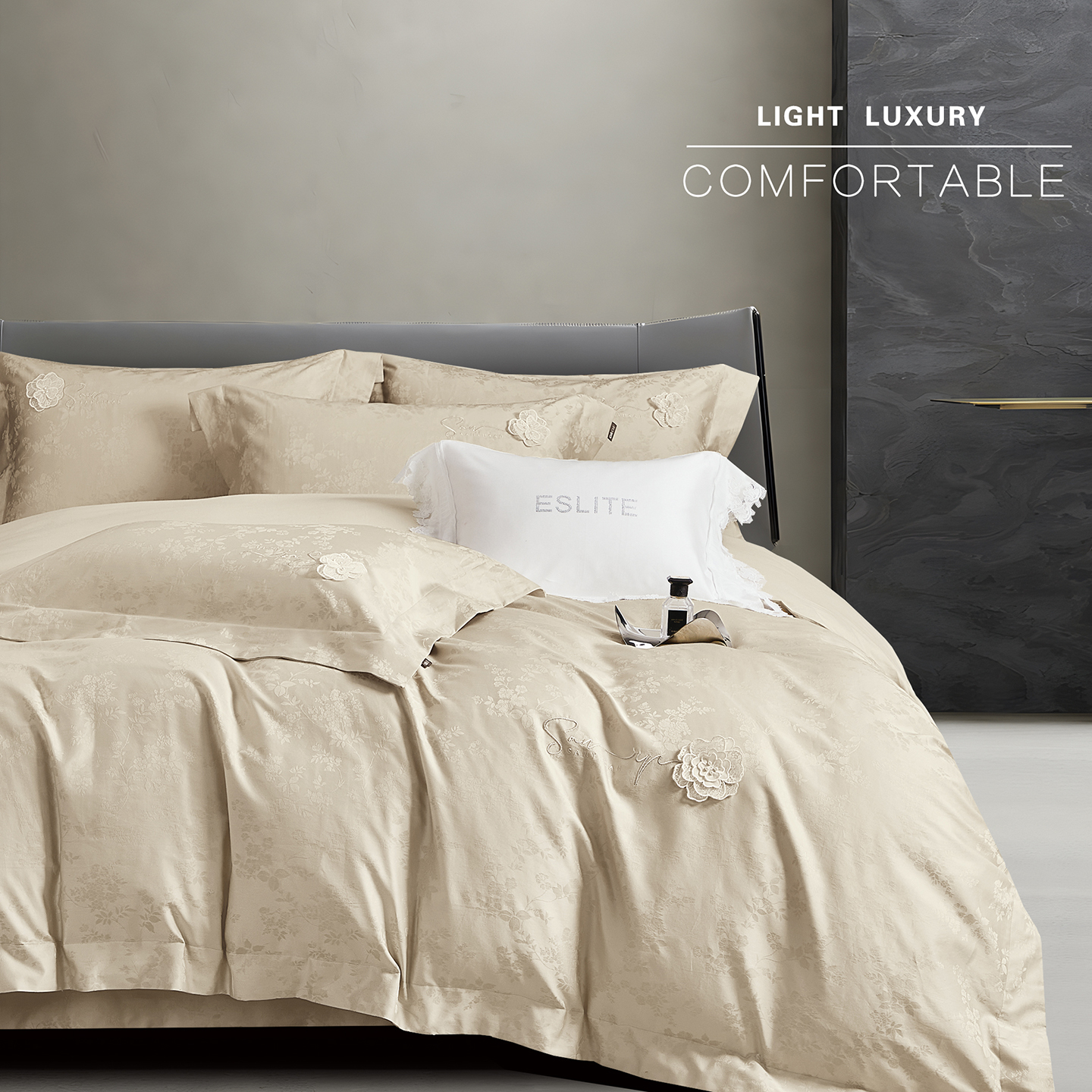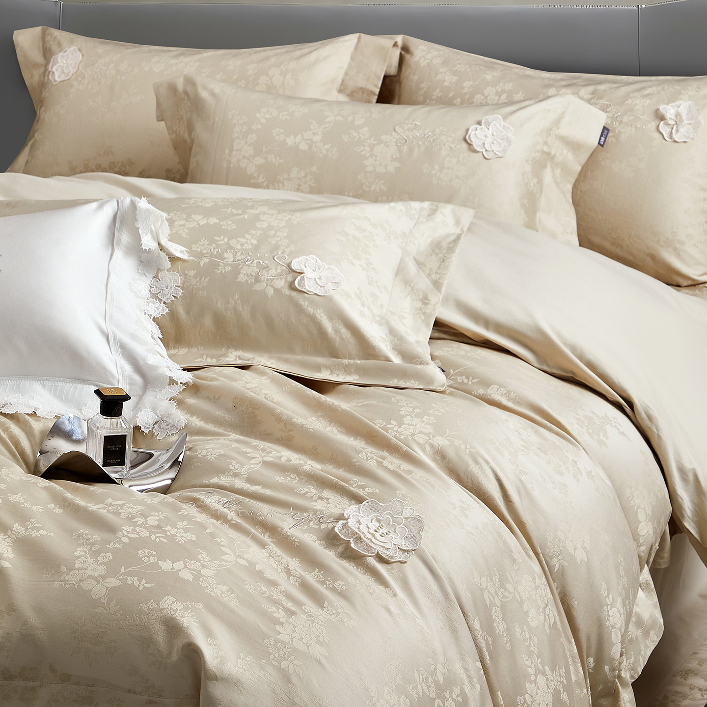 总玖玖爱家纺 纯棉100支贡缎长绒棉刺绣被套三件套四件套加大四件套,白色,高级灰,卡其,蓝灰,绿色,浅桔,深蓝,紫豆沙