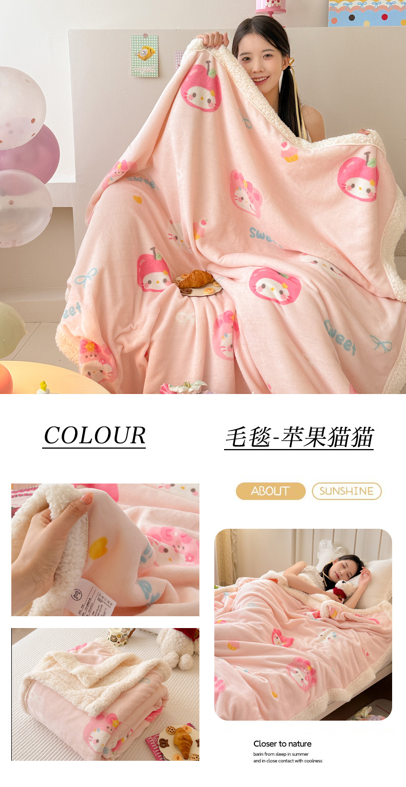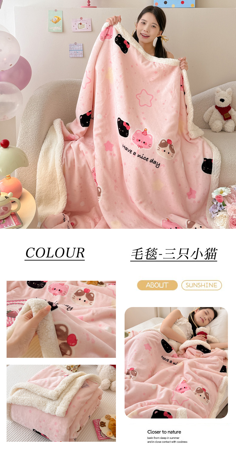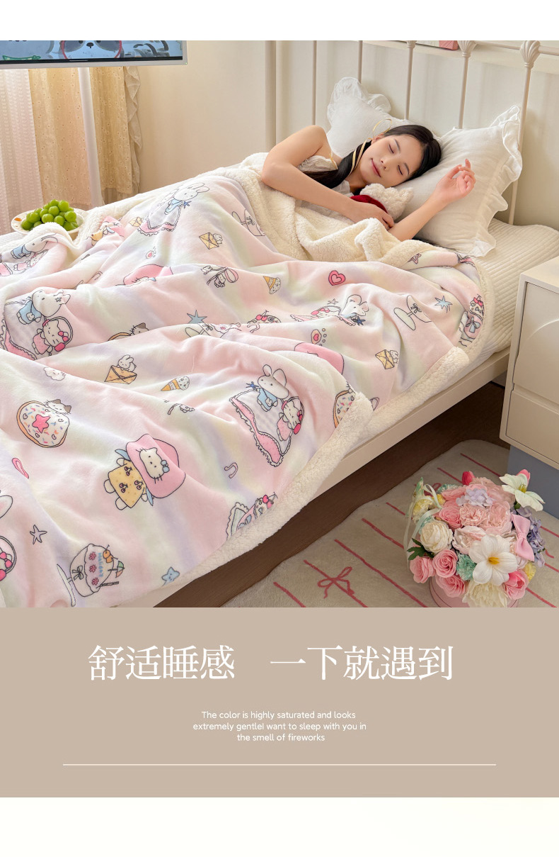 商品名称:沐慕 2025新款牛奶绒拼羊羔绒毛毯盖毯毯子 毛毯-可爱布布