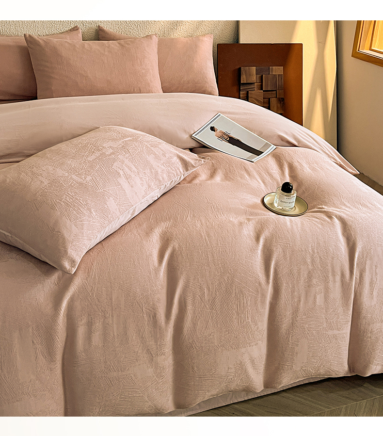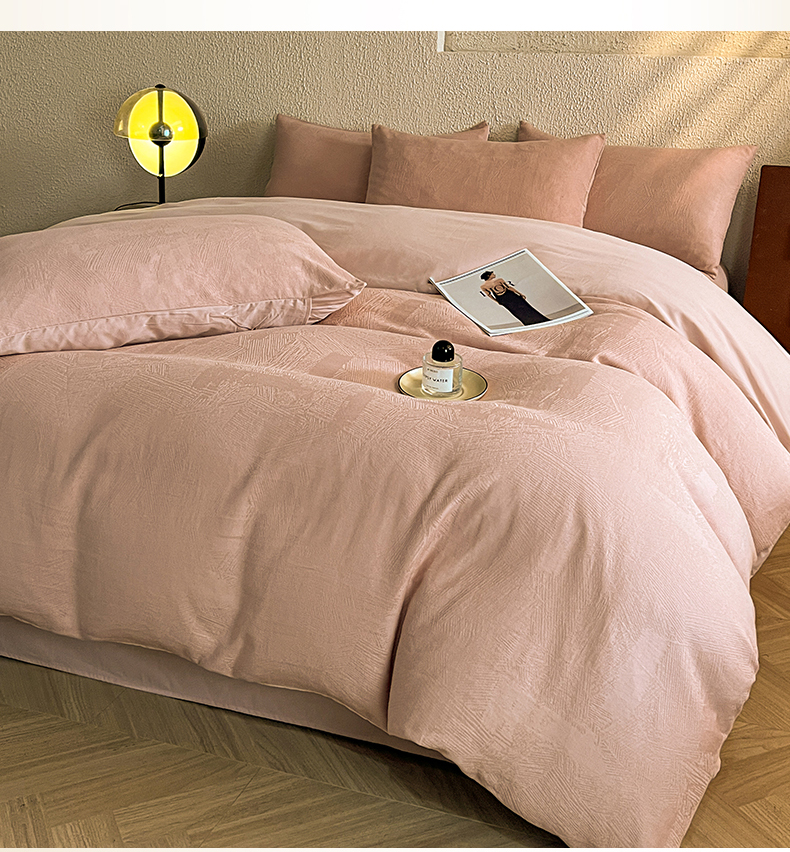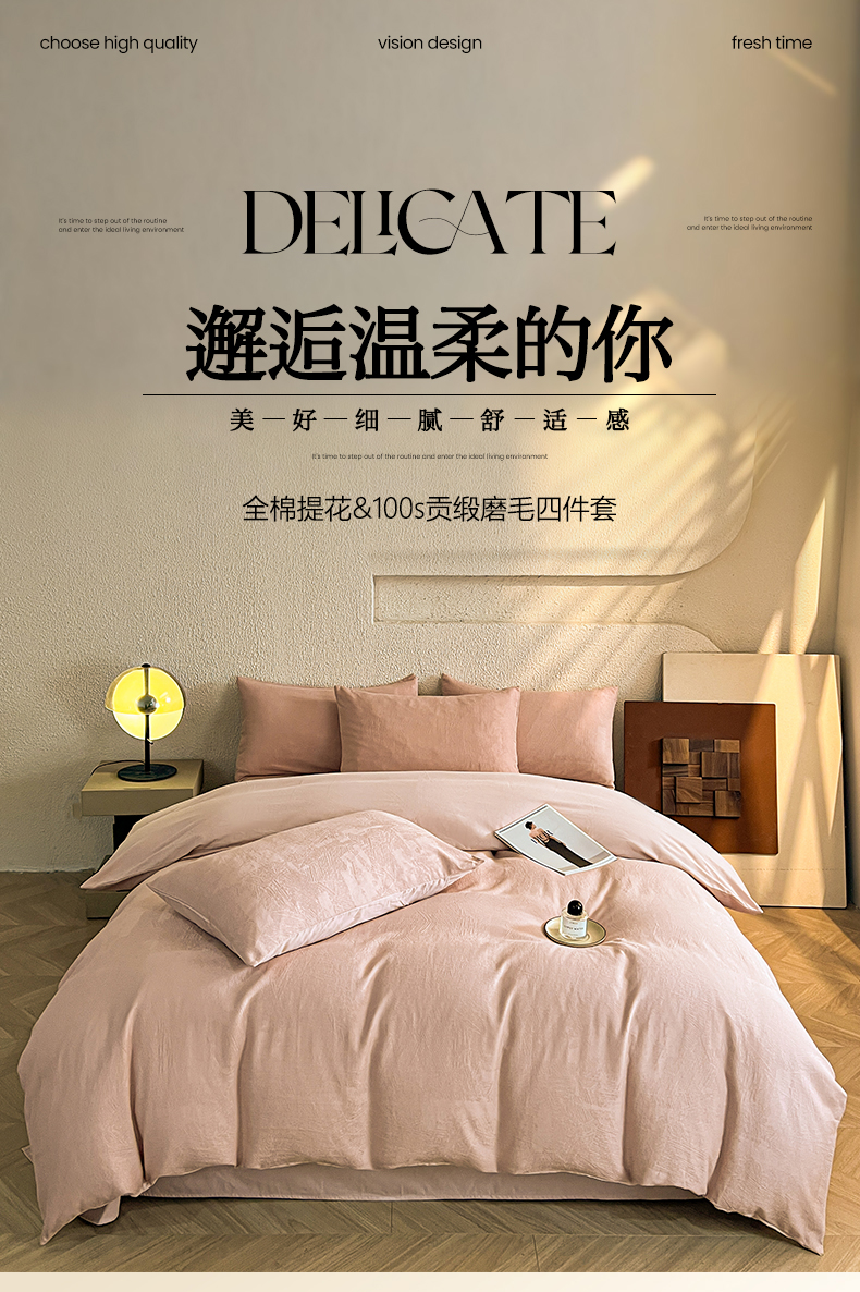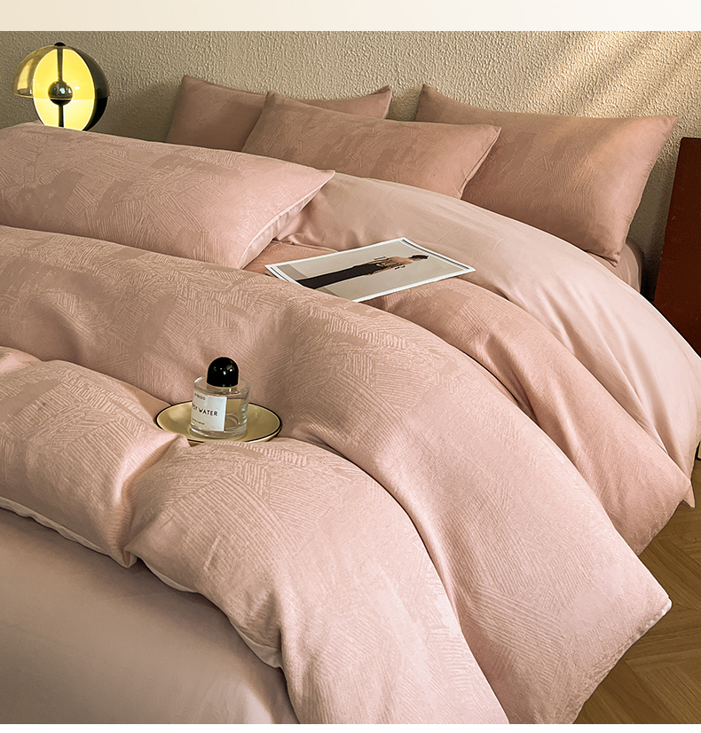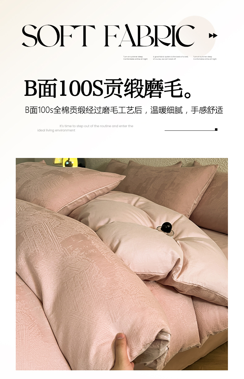 莱茵家居 2025新款全棉提花贡缎磨毛四件套 银河-粉