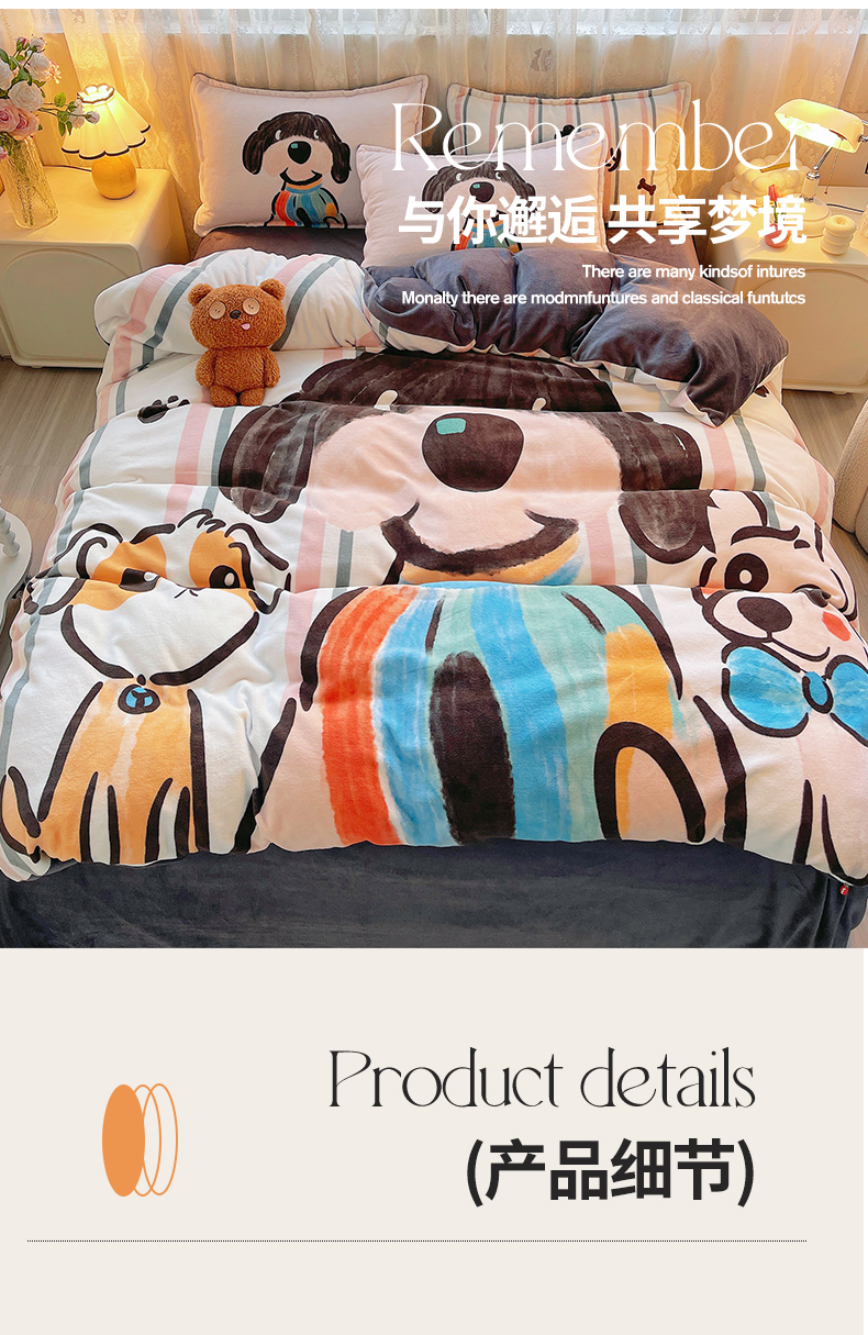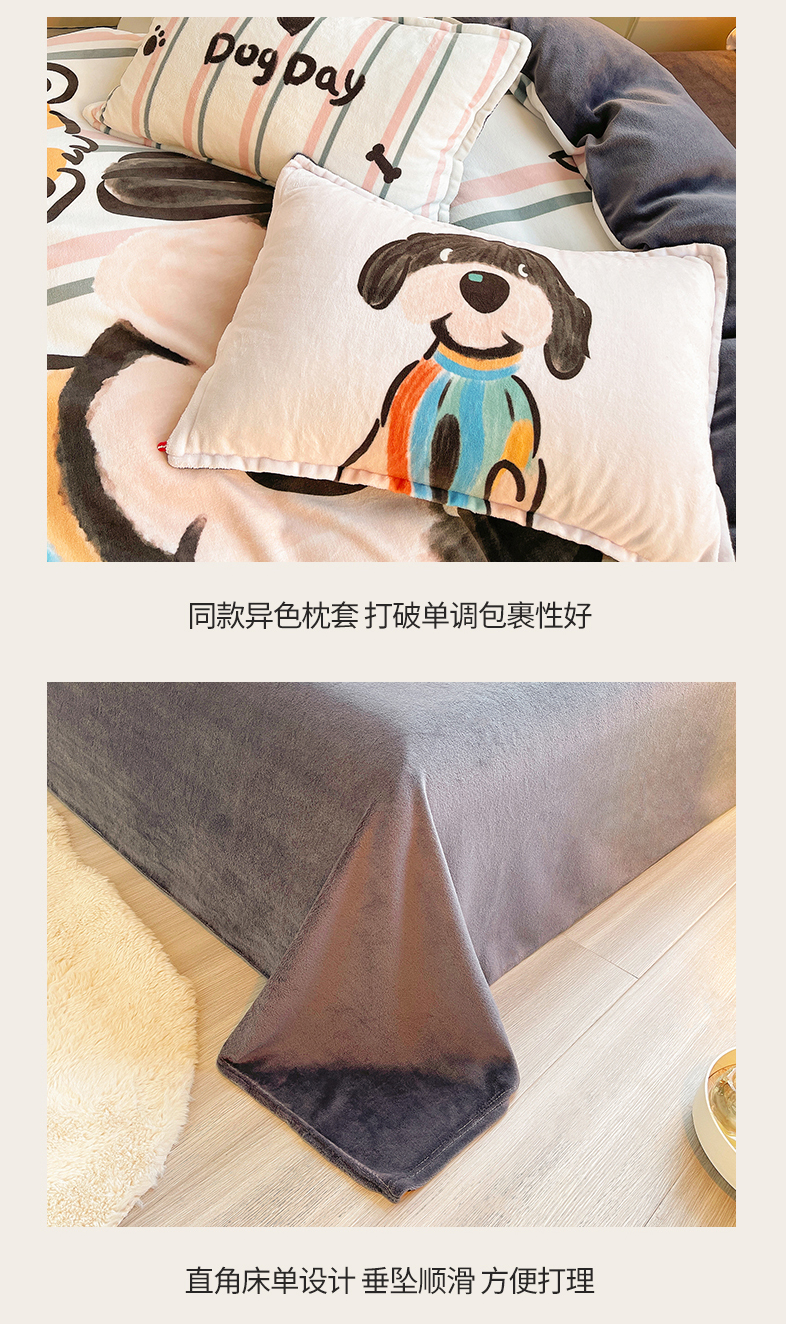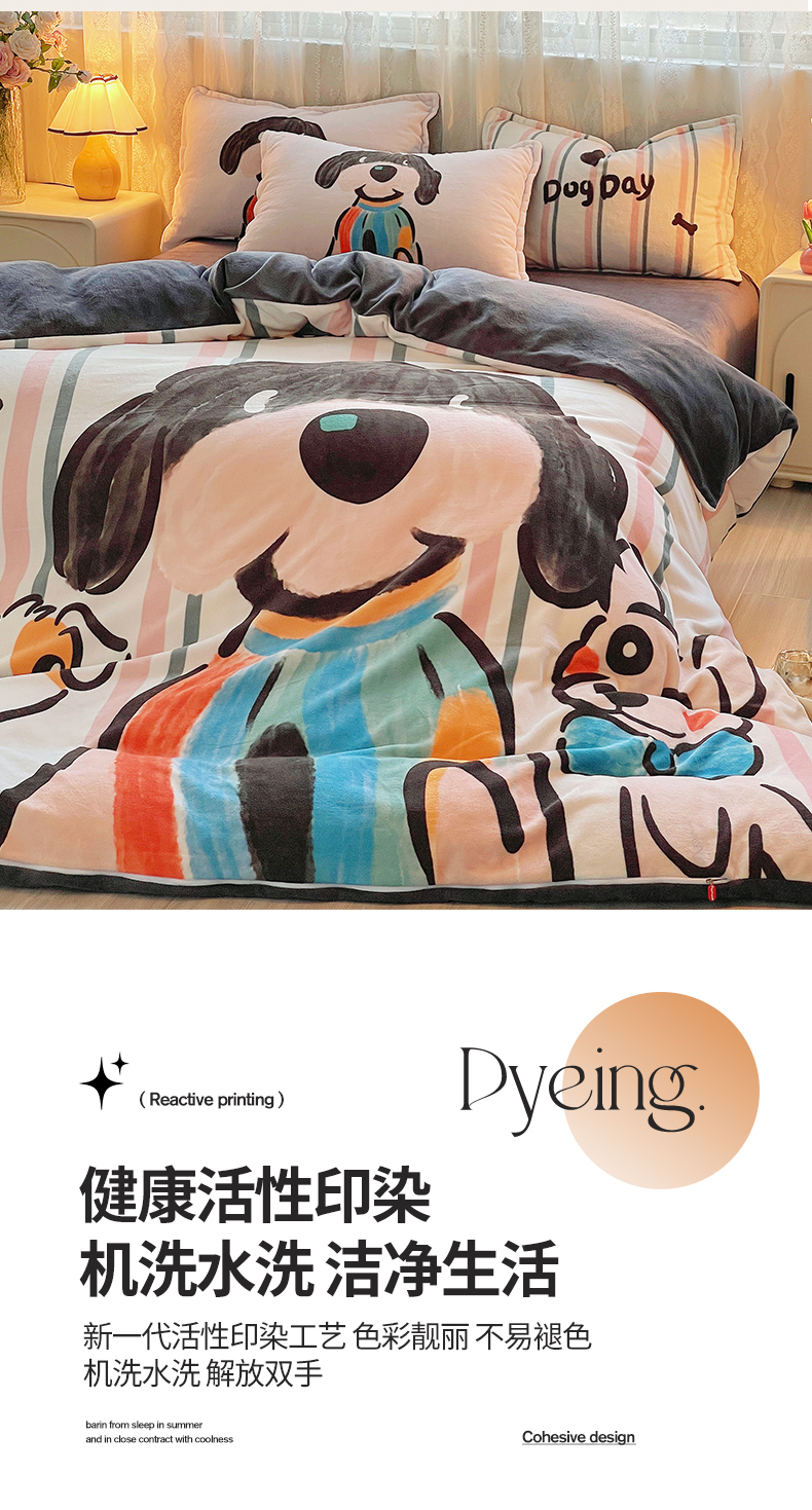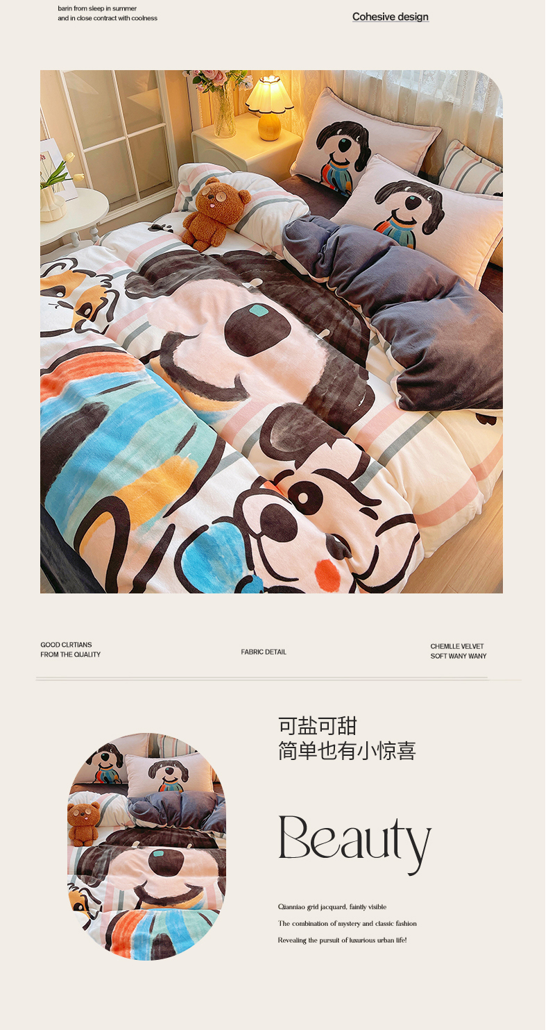 (总)炫拼家纺 2025新款大版数码印花卡通高克重牛奶绒四件套,乔治汪汪,快乐小象,熊和兔,啵啵熊,扭扭狗,苹果狗,豹纹兔兔,泡泡狗,搞怪兔兔,向钱看,元气企鹅