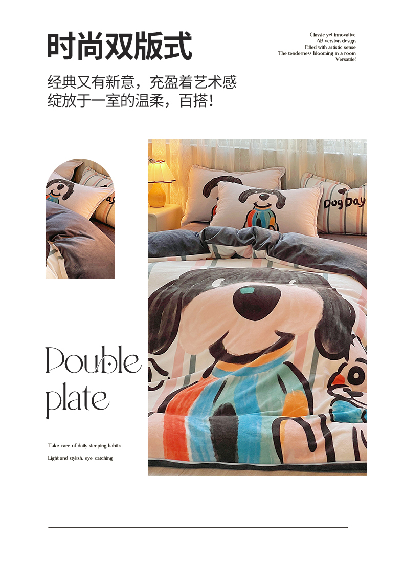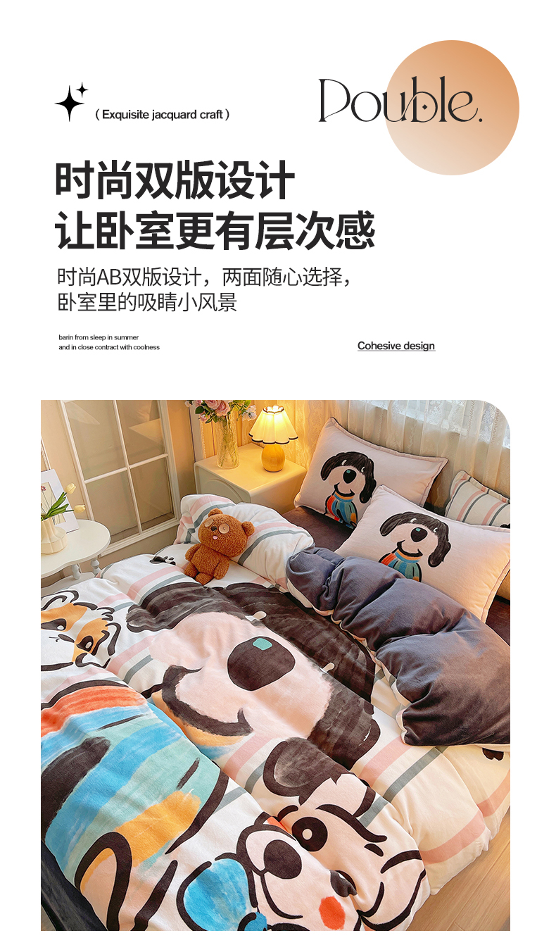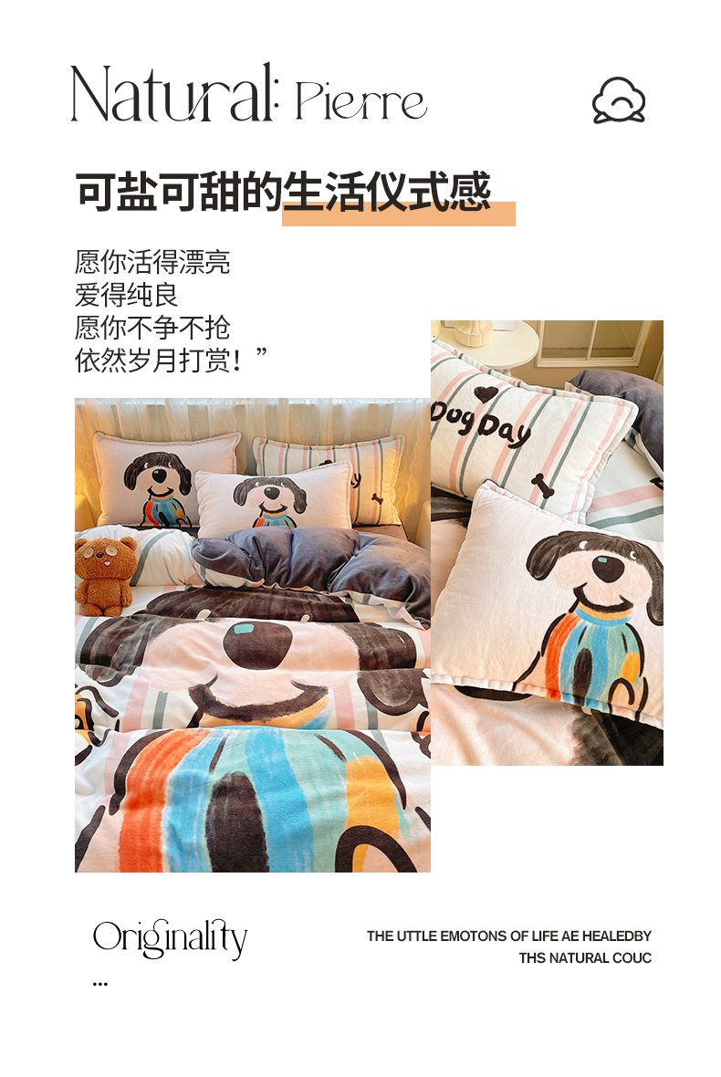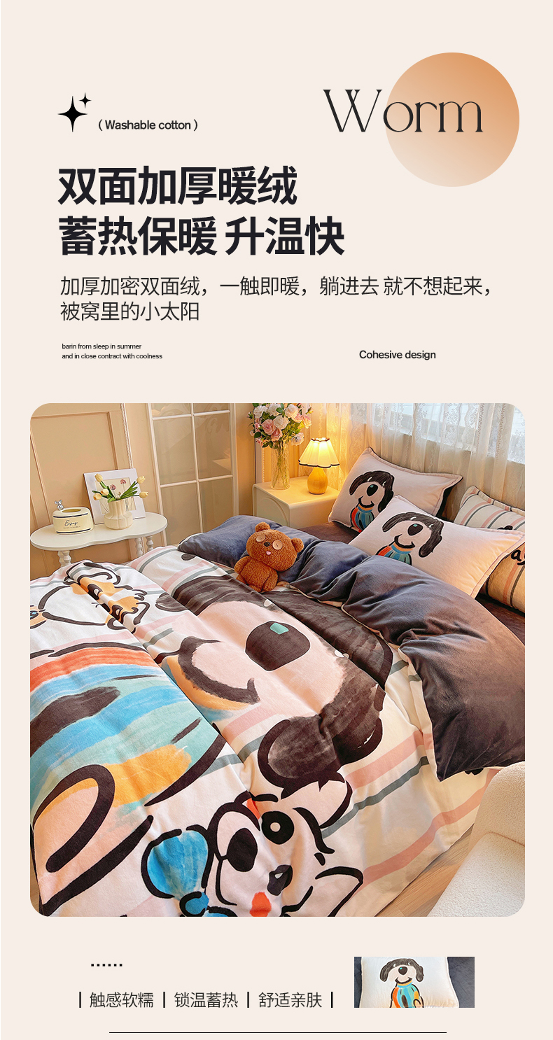 (总)炫拼家纺 2025新款大版数码印花卡通高克重牛奶绒四件套,乔治汪汪,快乐小象,熊和兔,啵啵熊,扭扭狗,苹果狗,豹纹兔兔,泡泡狗,搞怪兔兔,向钱看,元气企鹅
