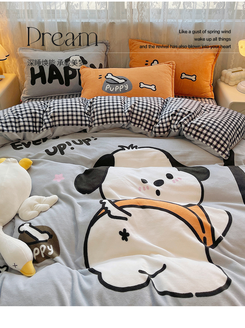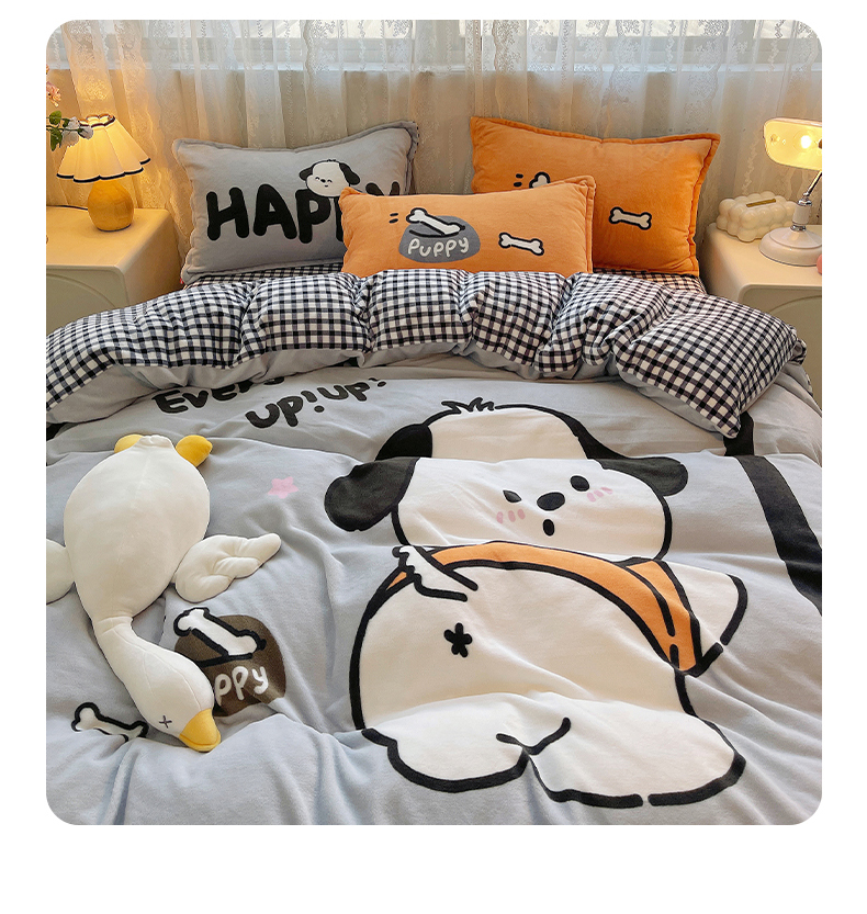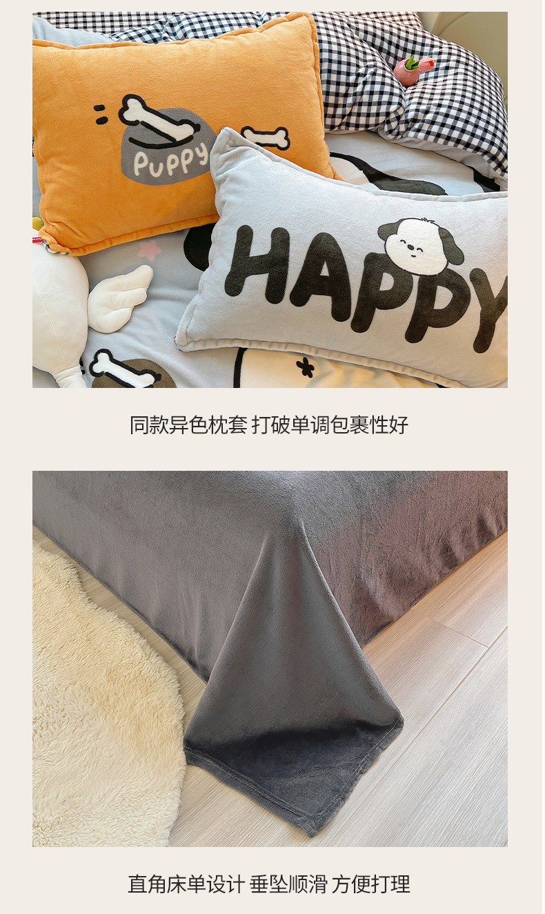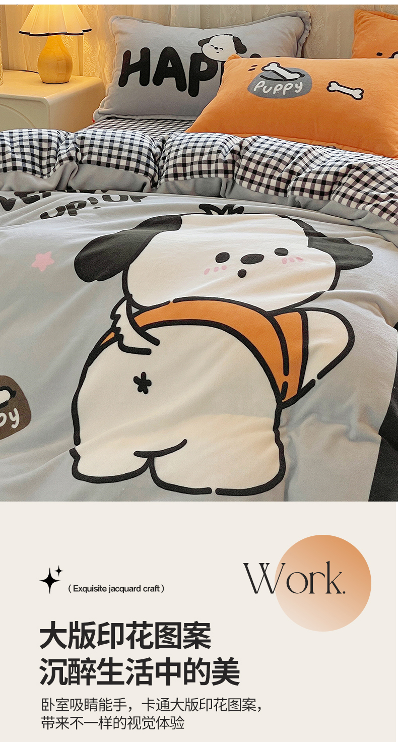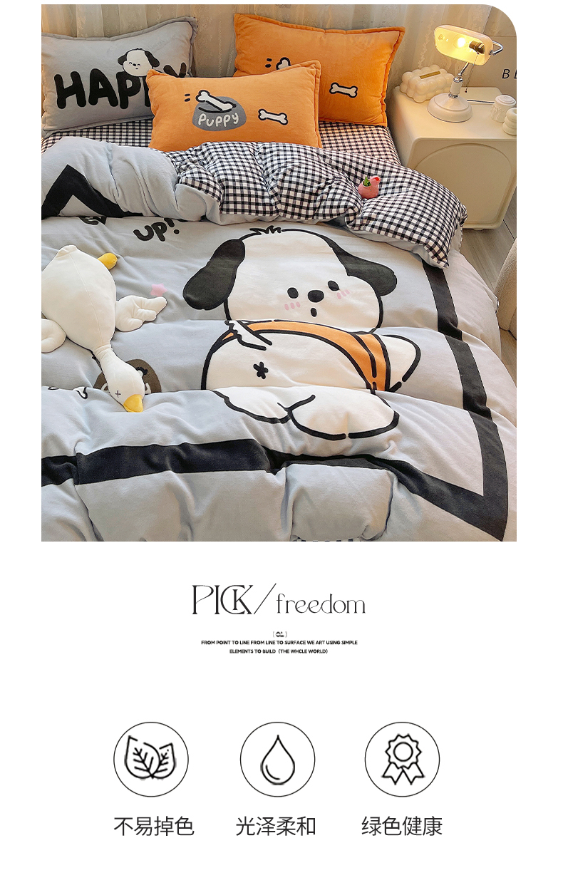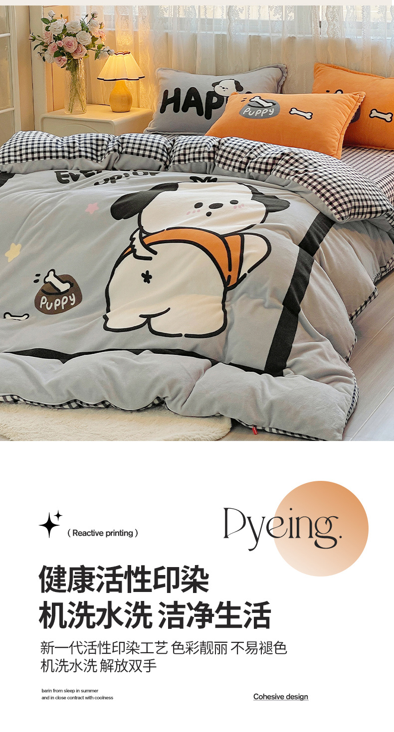 炫拼家纺 2025新款大版数码印花卡通高克重牛奶绒四件套 扭扭狗