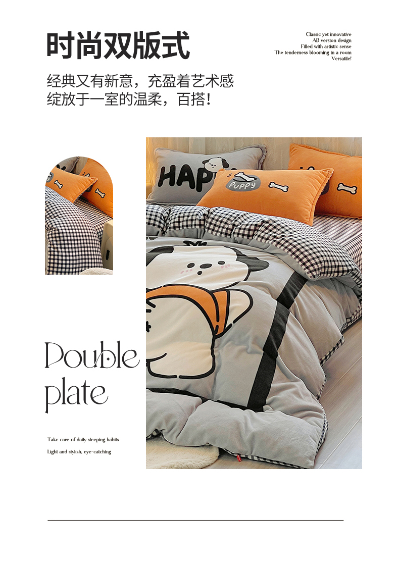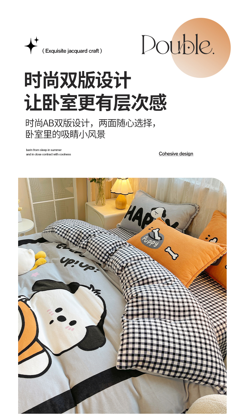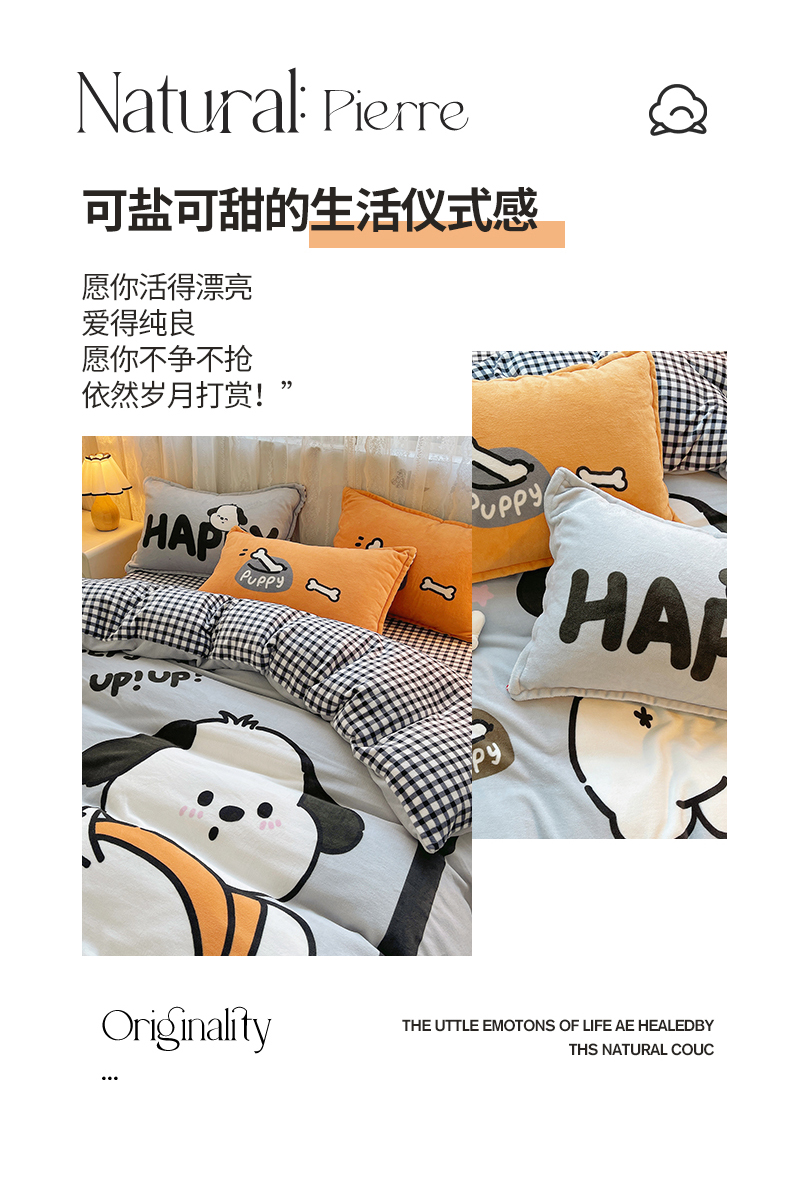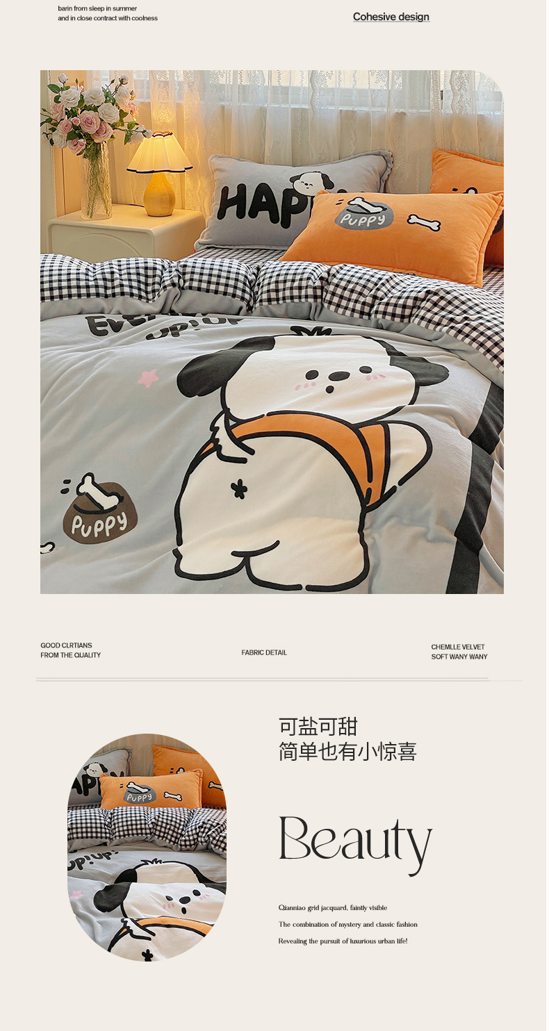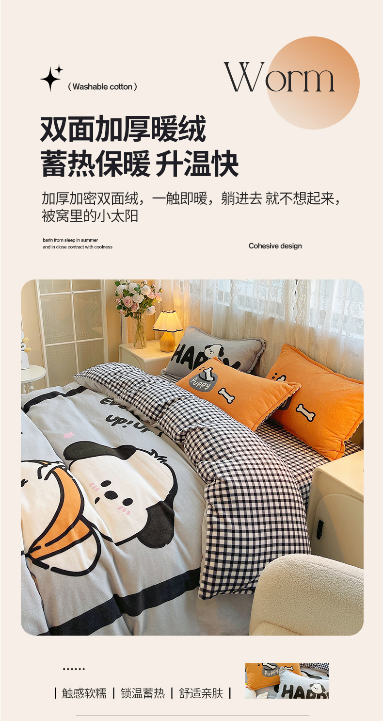 炫拼家纺 2025新款大版数码印花卡通高克重牛奶绒四件套 扭扭狗