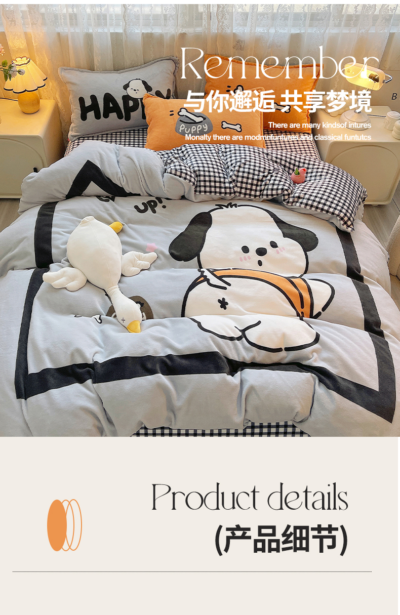 商品名称:炫拼家纺 2025新款大版数码印花卡通高克重牛奶绒四件套 扭扭狗