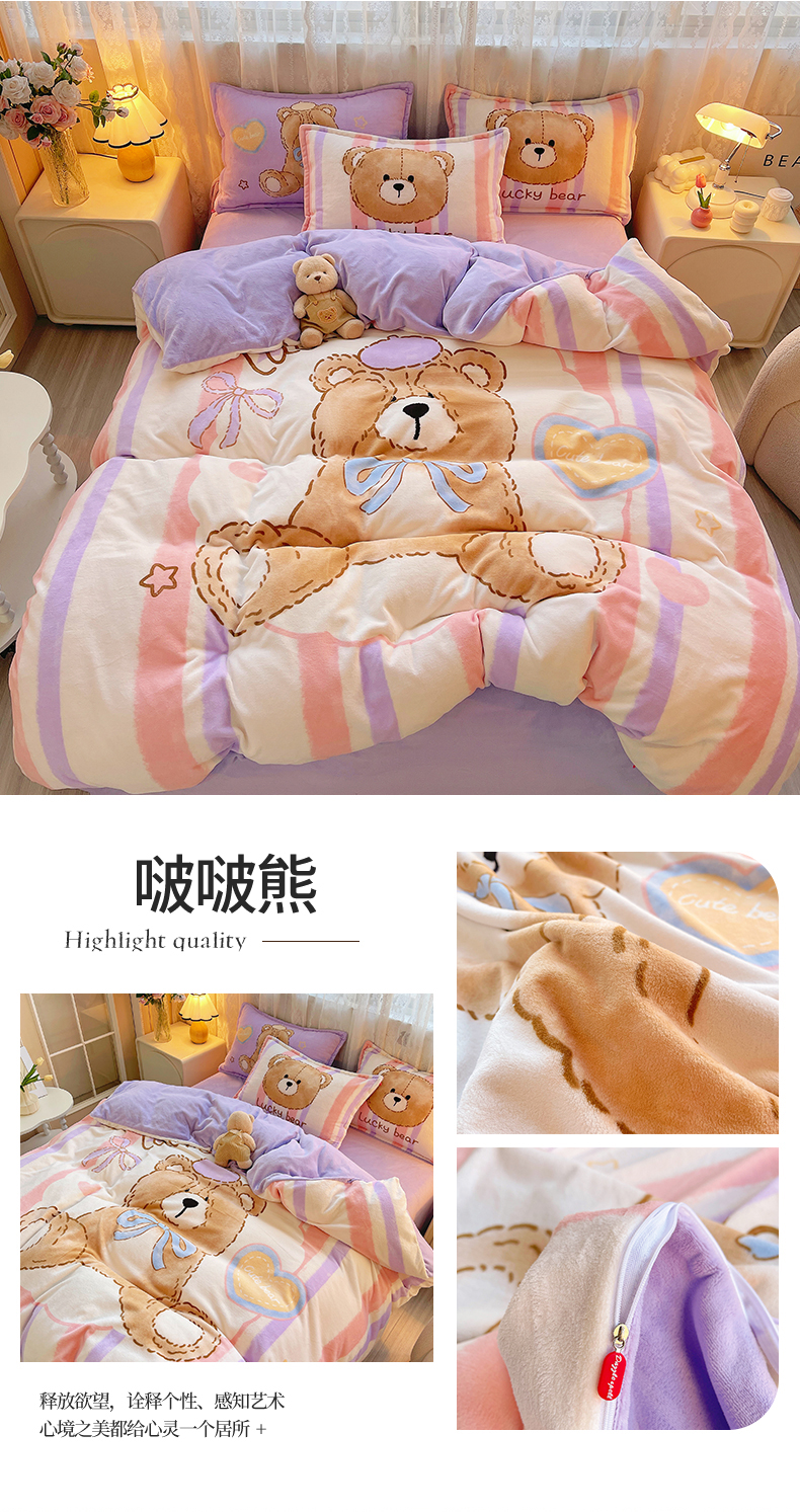 (总)炫拼家纺 2025新款大版数码印花卡通高克重牛奶绒四件套,乔治汪汪,快乐小象,熊和兔,啵啵熊,扭扭狗,苹果狗,豹纹兔兔,泡泡狗,搞怪兔兔,向钱看,元气企鹅