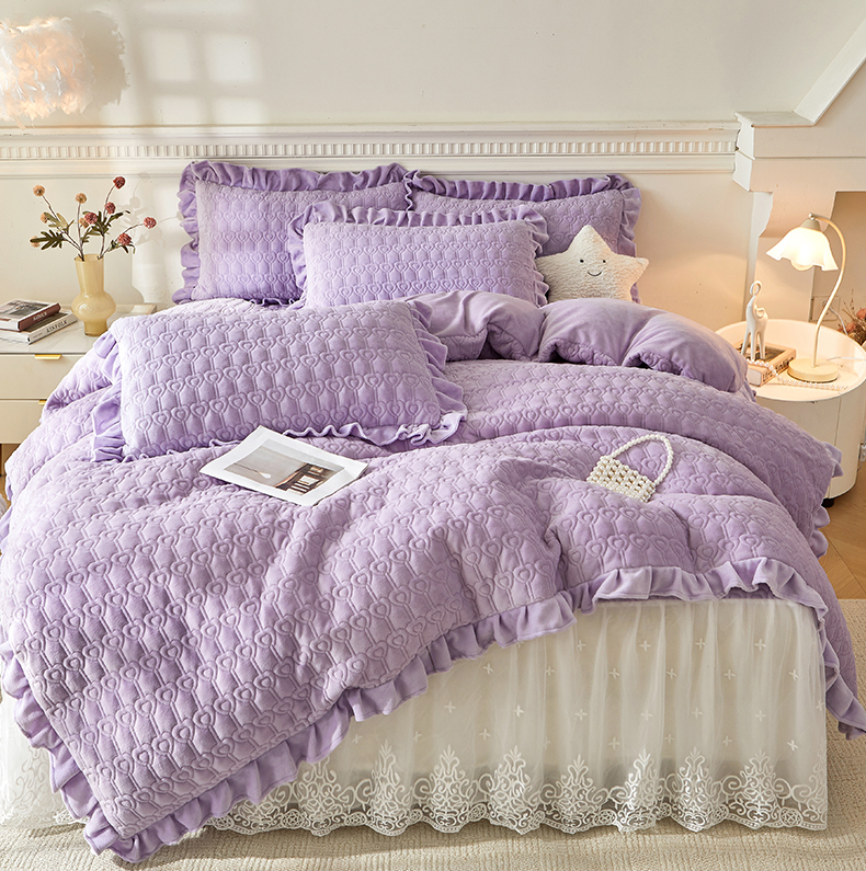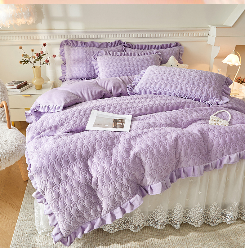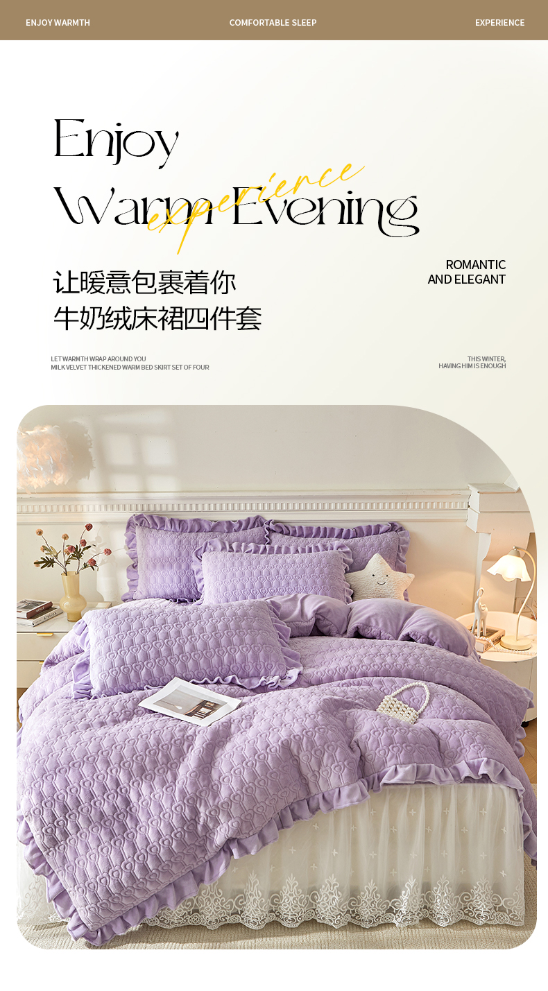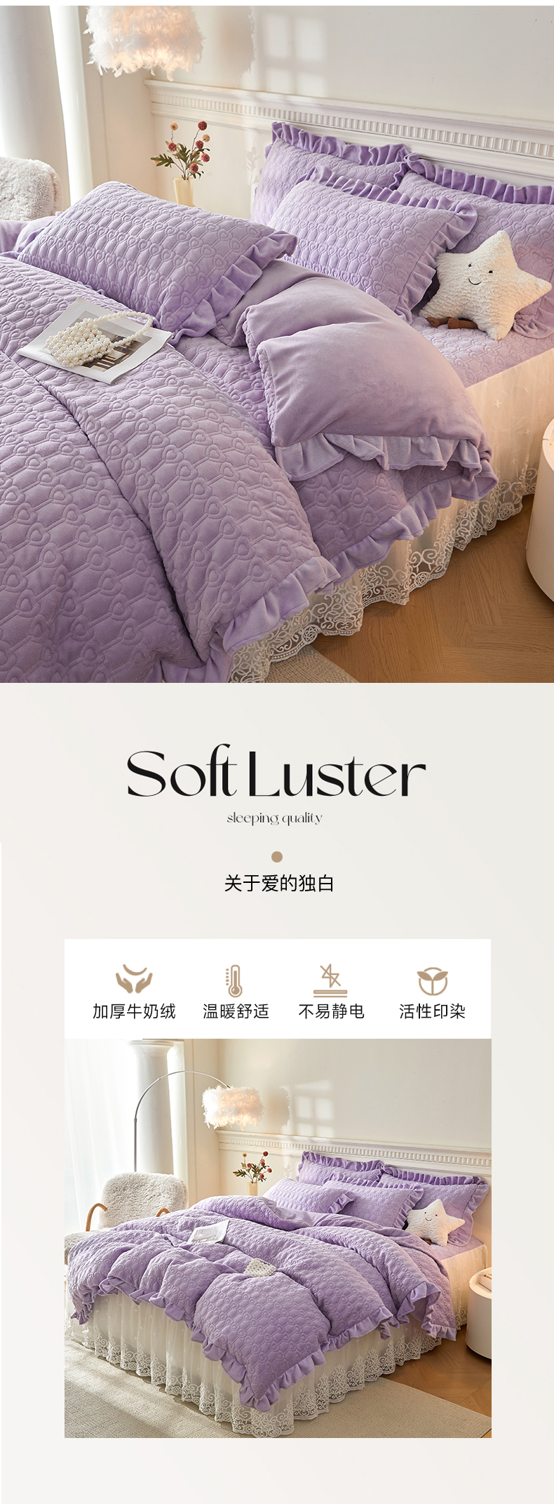商品名称:怡源梦 2025新款牛奶绒床裙四件套-甜心公主系列 紫色