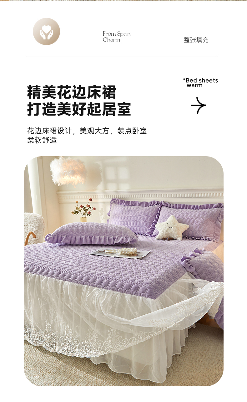 (总)怡源梦 2025新款A类牛奶绒夹棉床裙单件-甜心公主系列,米白色,大红色,粉玉色,灰色,咖色,绿色,紫色