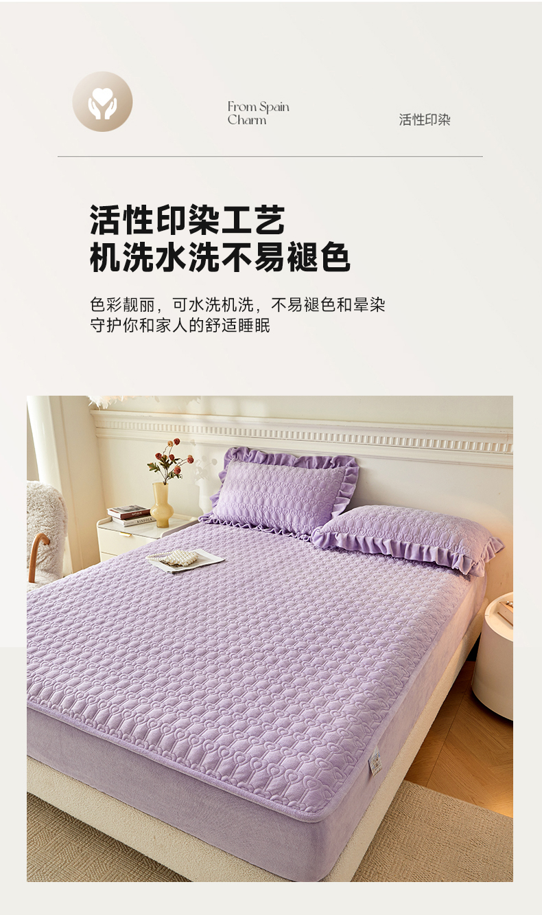 (总)怡源梦 2025新款夹棉床笠-甜心公主系列,大红色,粉玉色,灰色,咖色,绿色,米白色,紫色