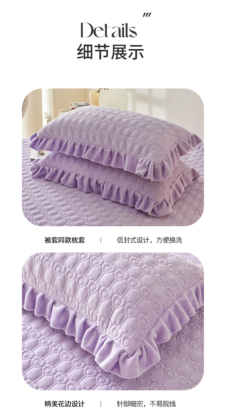 (总)怡源梦 2025新款A类牛奶绒夹棉床笠三件套-甜心公主系列,灰色,咖色,大红色,粉玉色,绿色,米白色,紫色