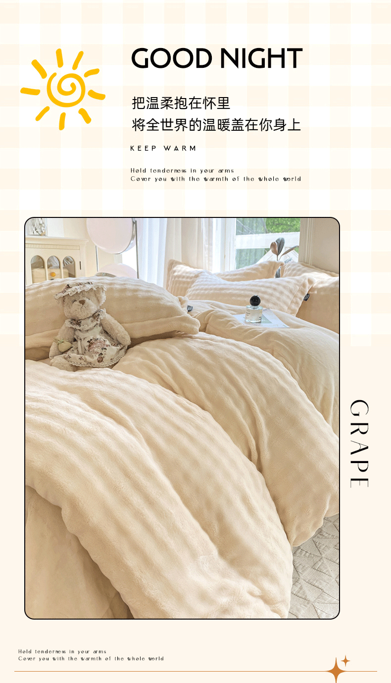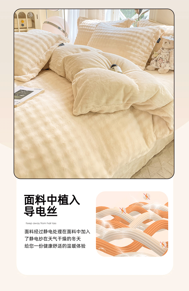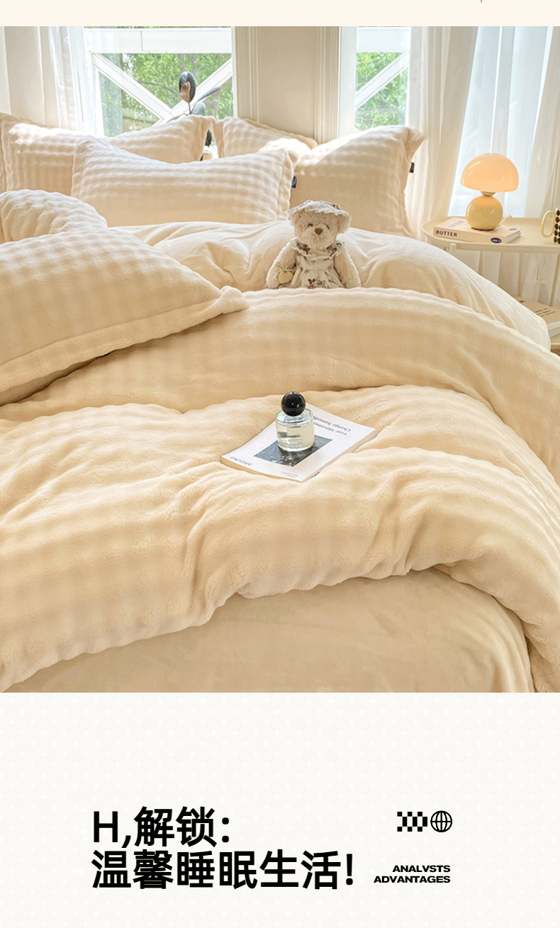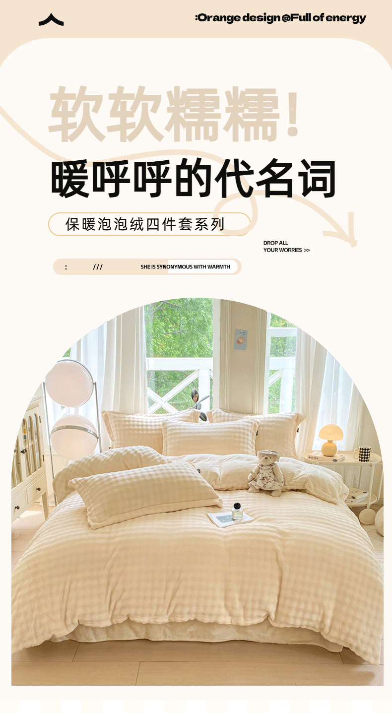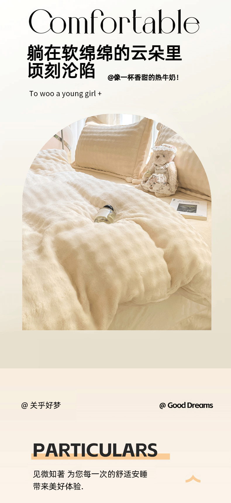 商品名称:悦织湾家纺 2025新款泡泡绒仿兔毛绒四件套牛奶绒纯色轻奢床上用品4件套货源足 泡泡绒-米白