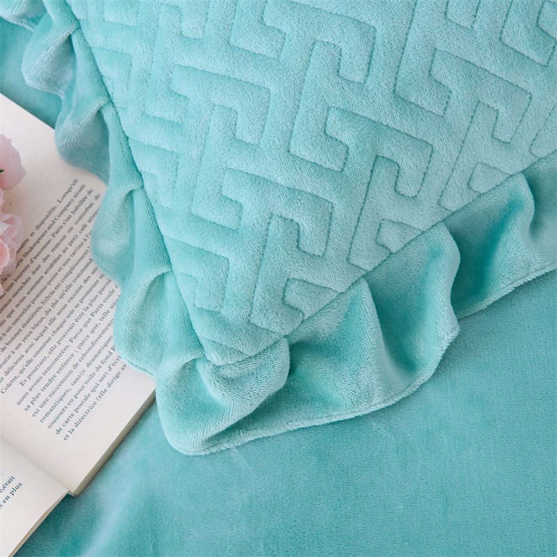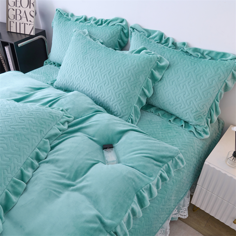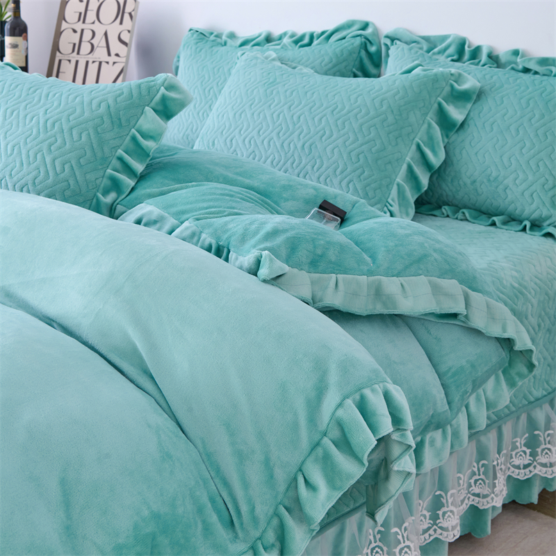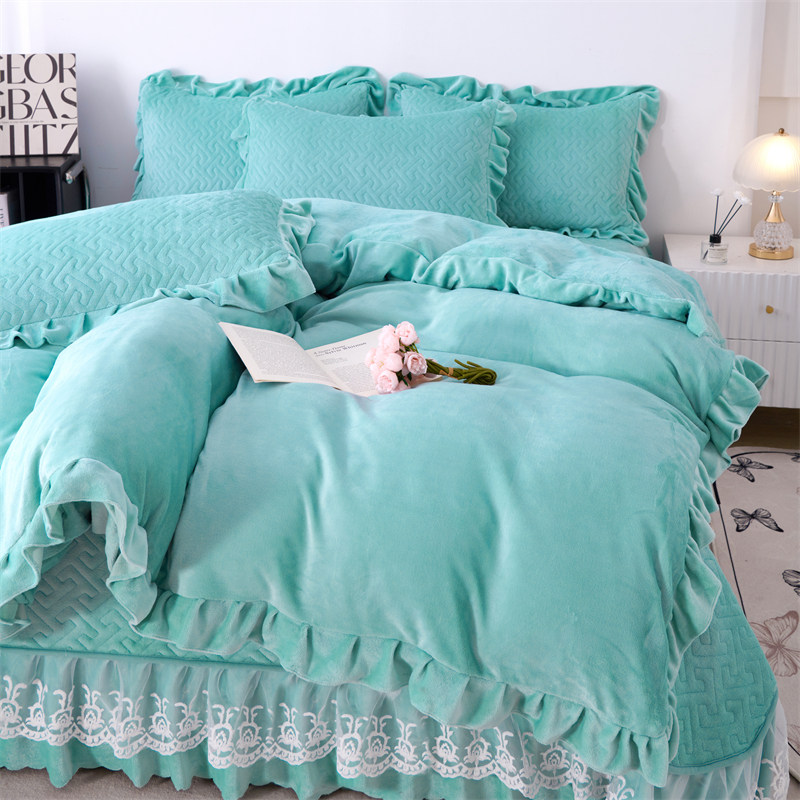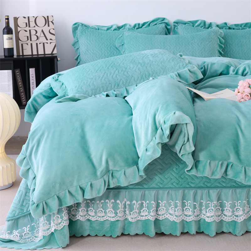 商品名称:畅畅家纺 2025新款11斤纯色韩版冬季超柔加厚牛奶花边床盖四件套 青蓝