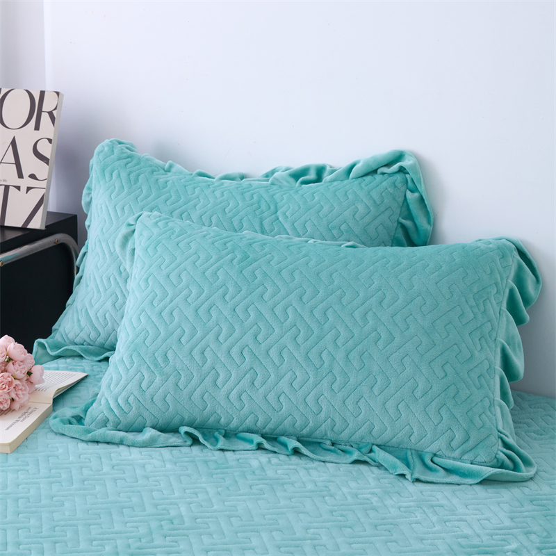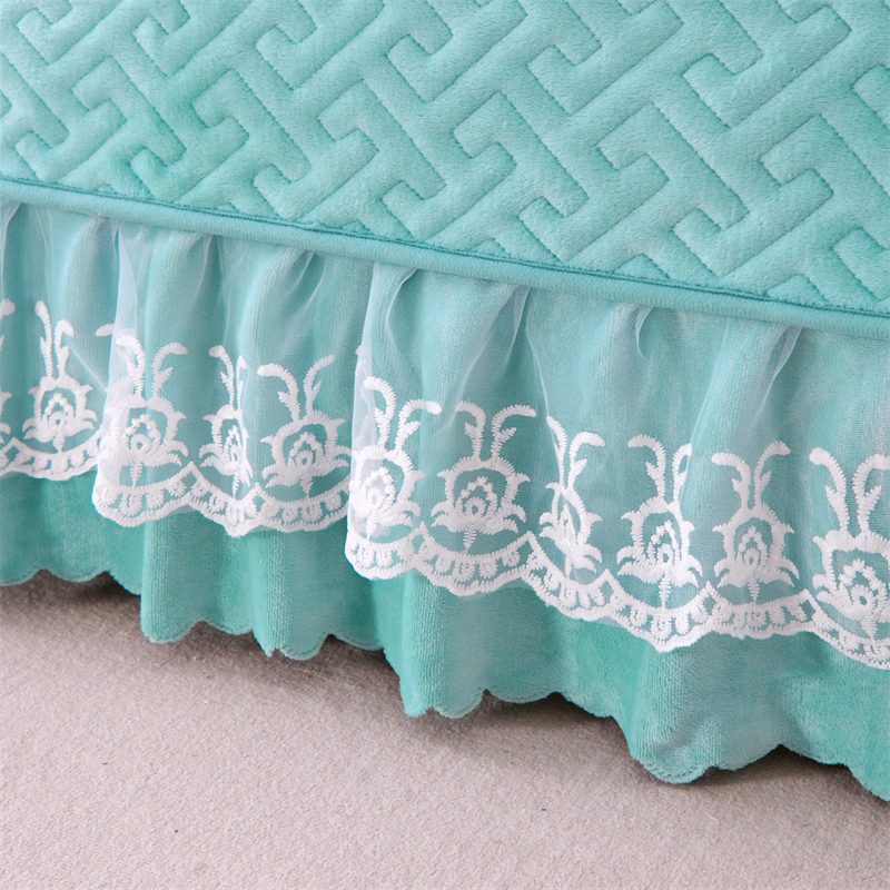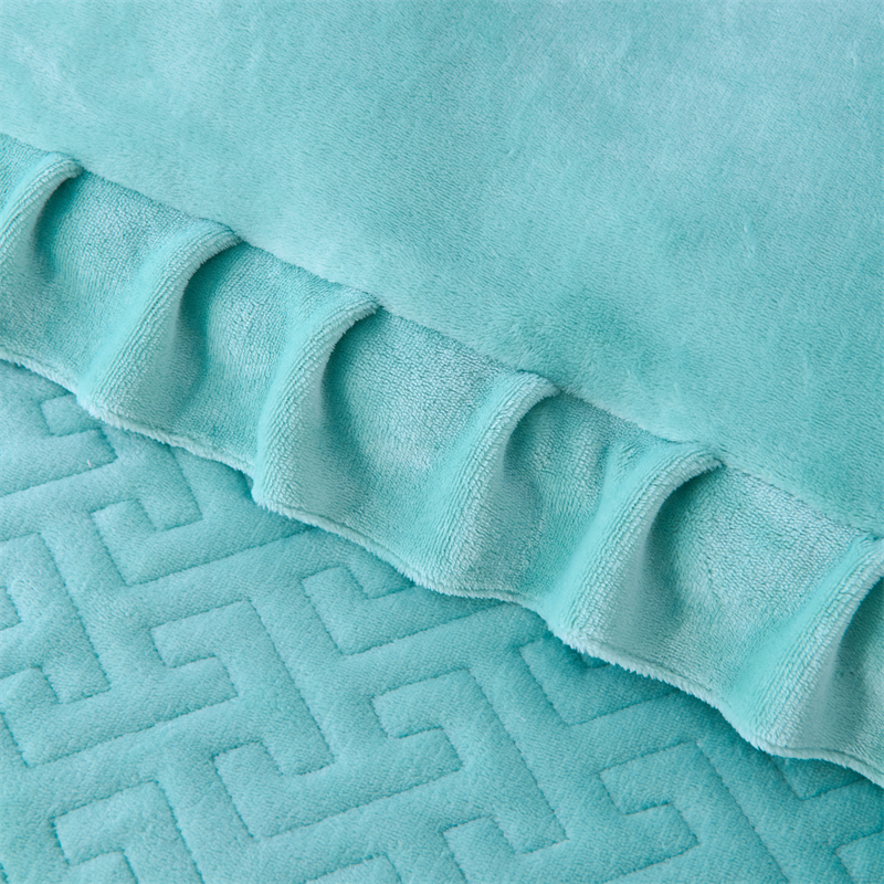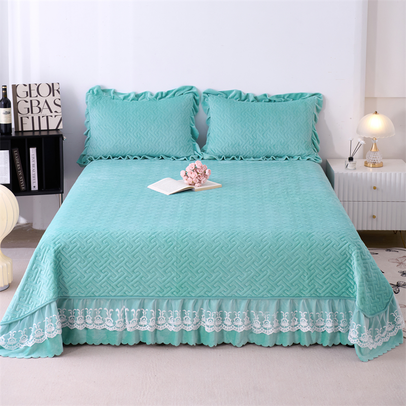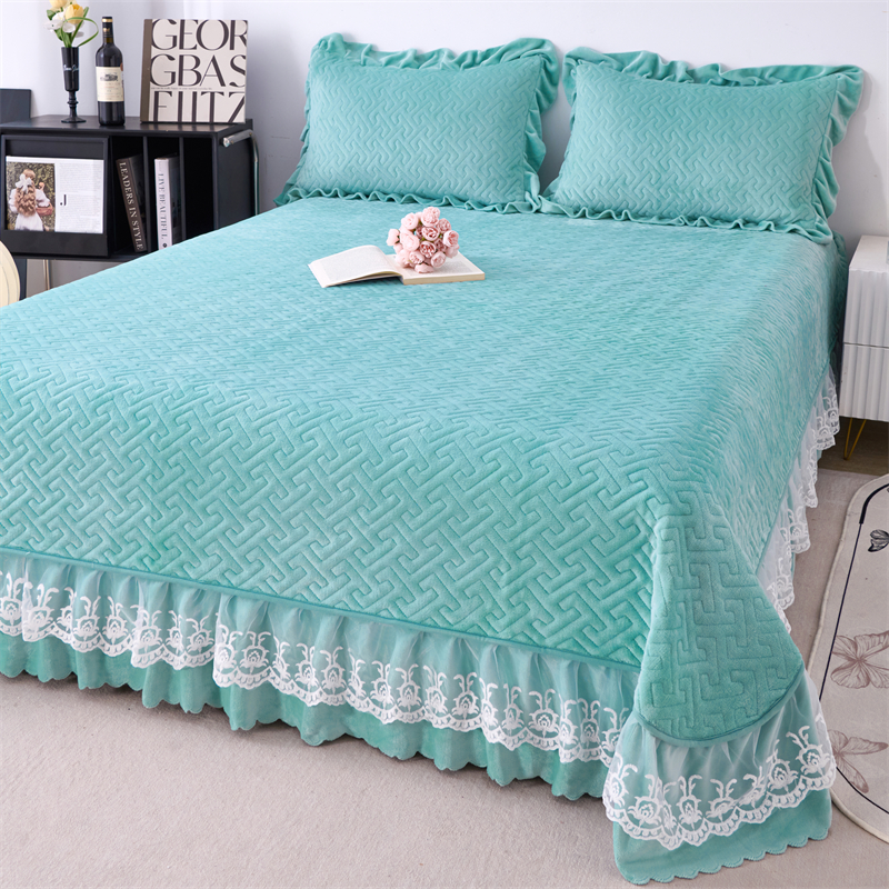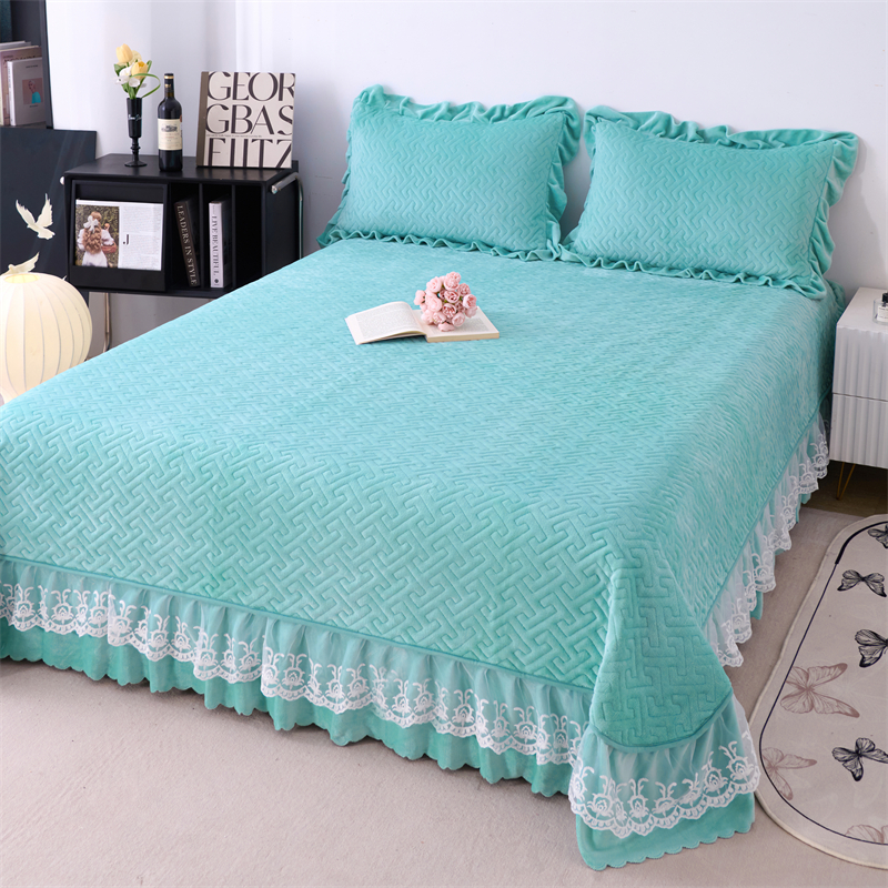 商品名称:畅畅家纺 2025新款11斤纯色韩版冬季超柔加厚牛奶花边床盖四件套 青蓝