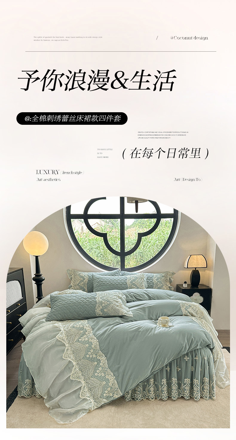 当前位置: 91家纺网 > 商品网购 > 床品套件 > 四件套 > 其它四件套 > 罗艺轩 2025新款全棉纯棉蕾丝刺绣琉璃床裙四件套(1.5m控价288起、1.8m控价293起、1.8m加大控价303起、1.8*2.2m控价298起、1.8*2.2m加大控价308起、2.0m控价3