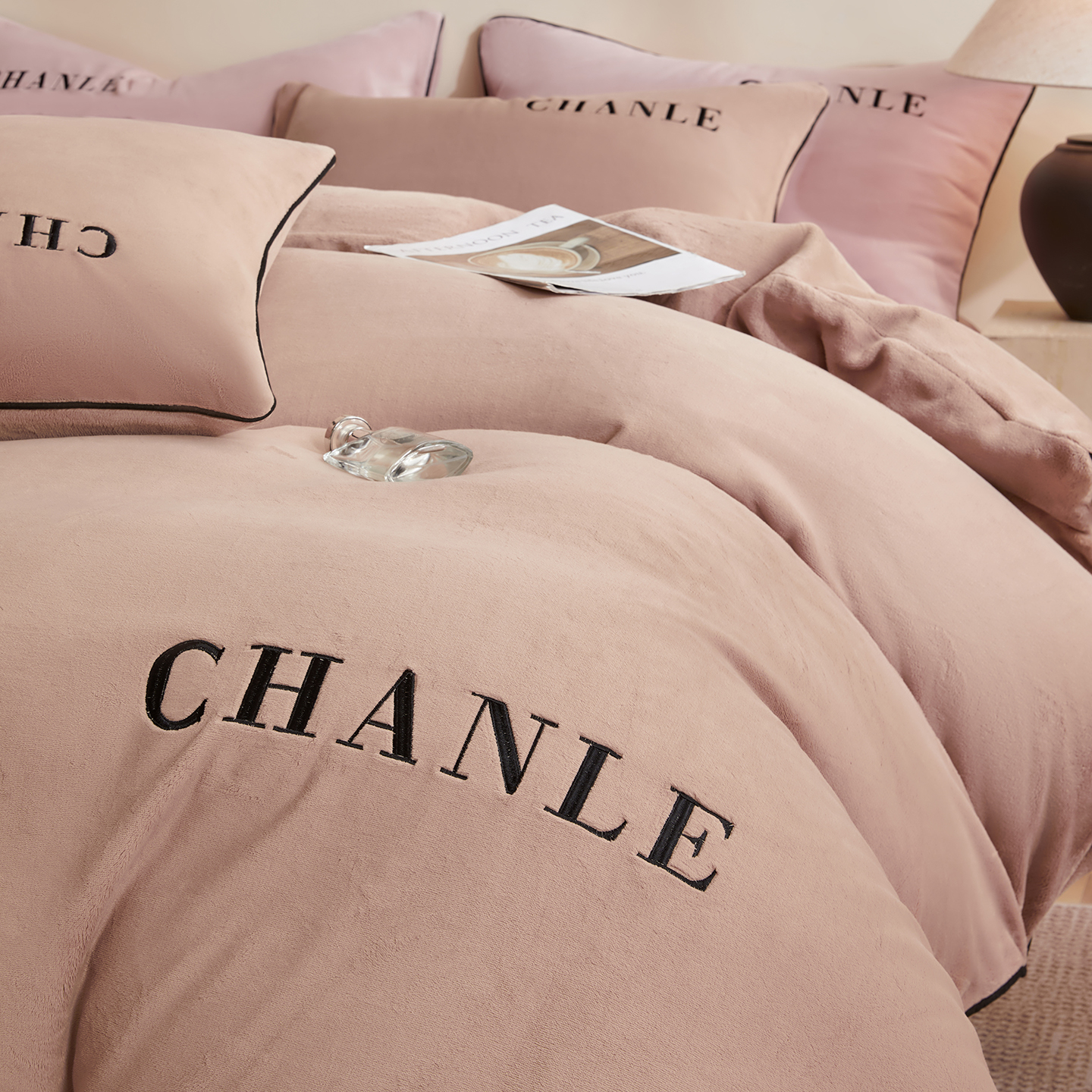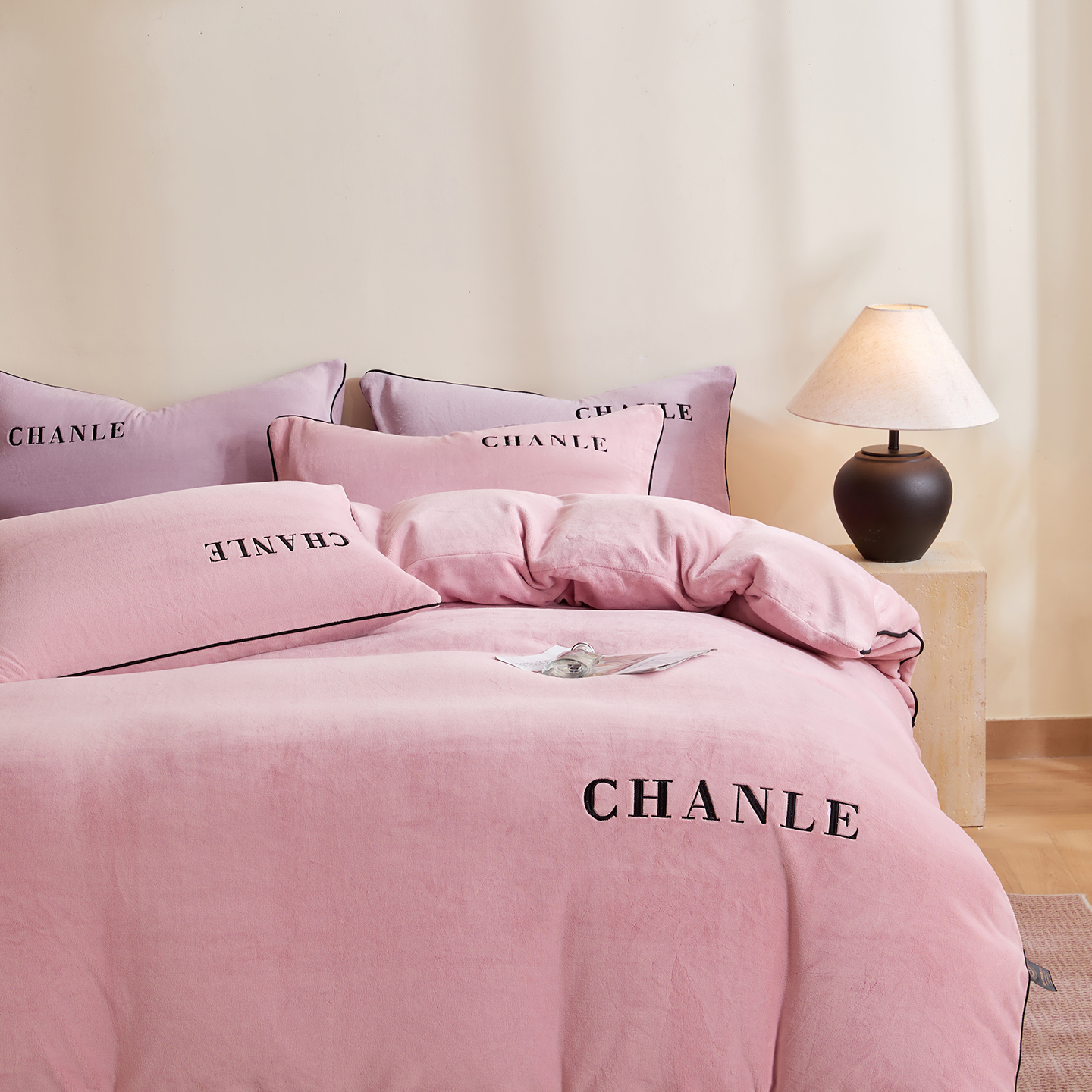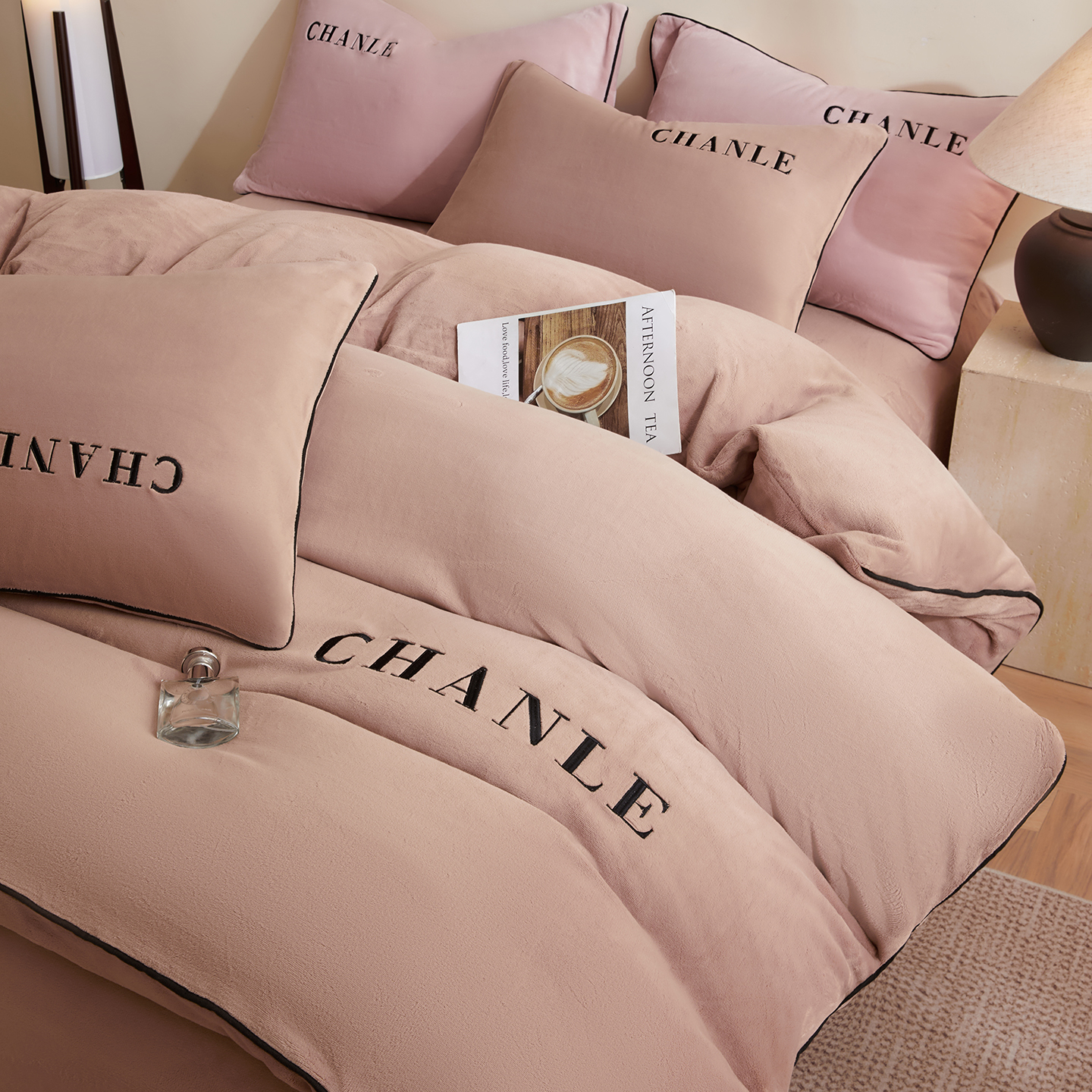 锦禾穗 2023新款牛奶绒四件套-丹麦貂 慕倾-粉色,慕倾-粉色