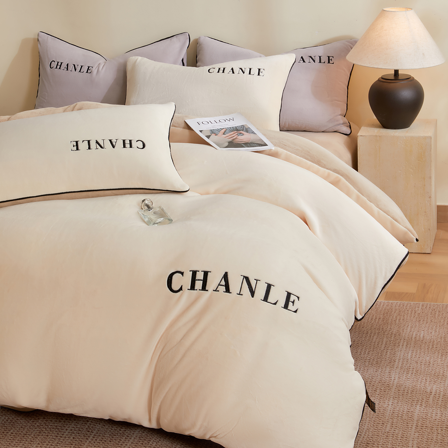 锦禾穗 2025新款240克全消光母婴A类牛奶绒刺绣四件套-莫妮 米白色