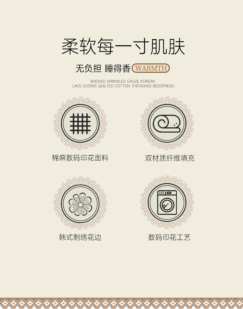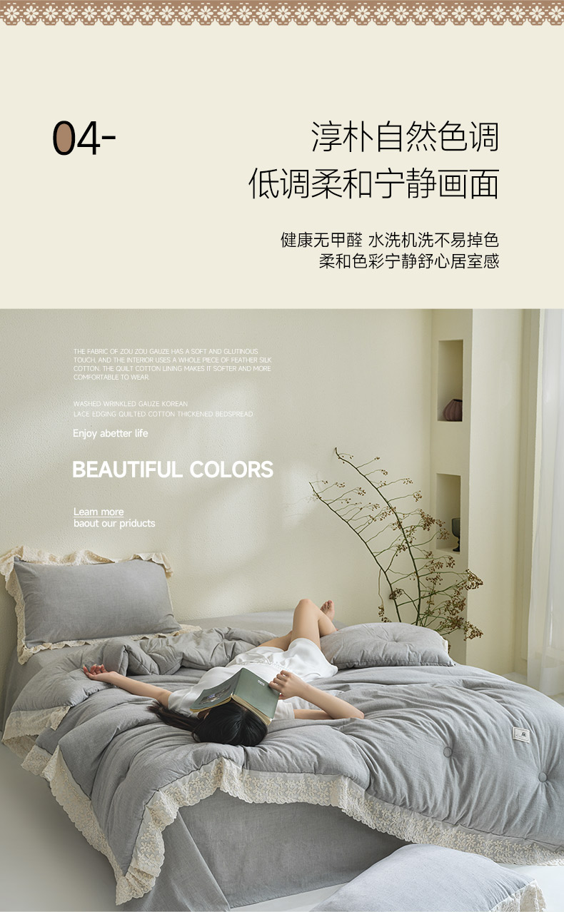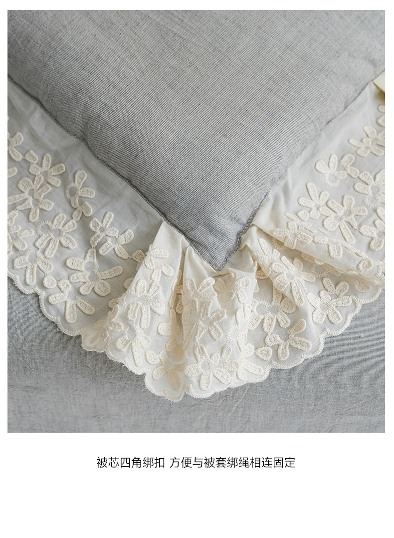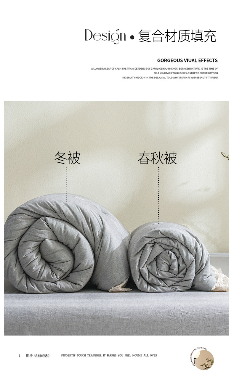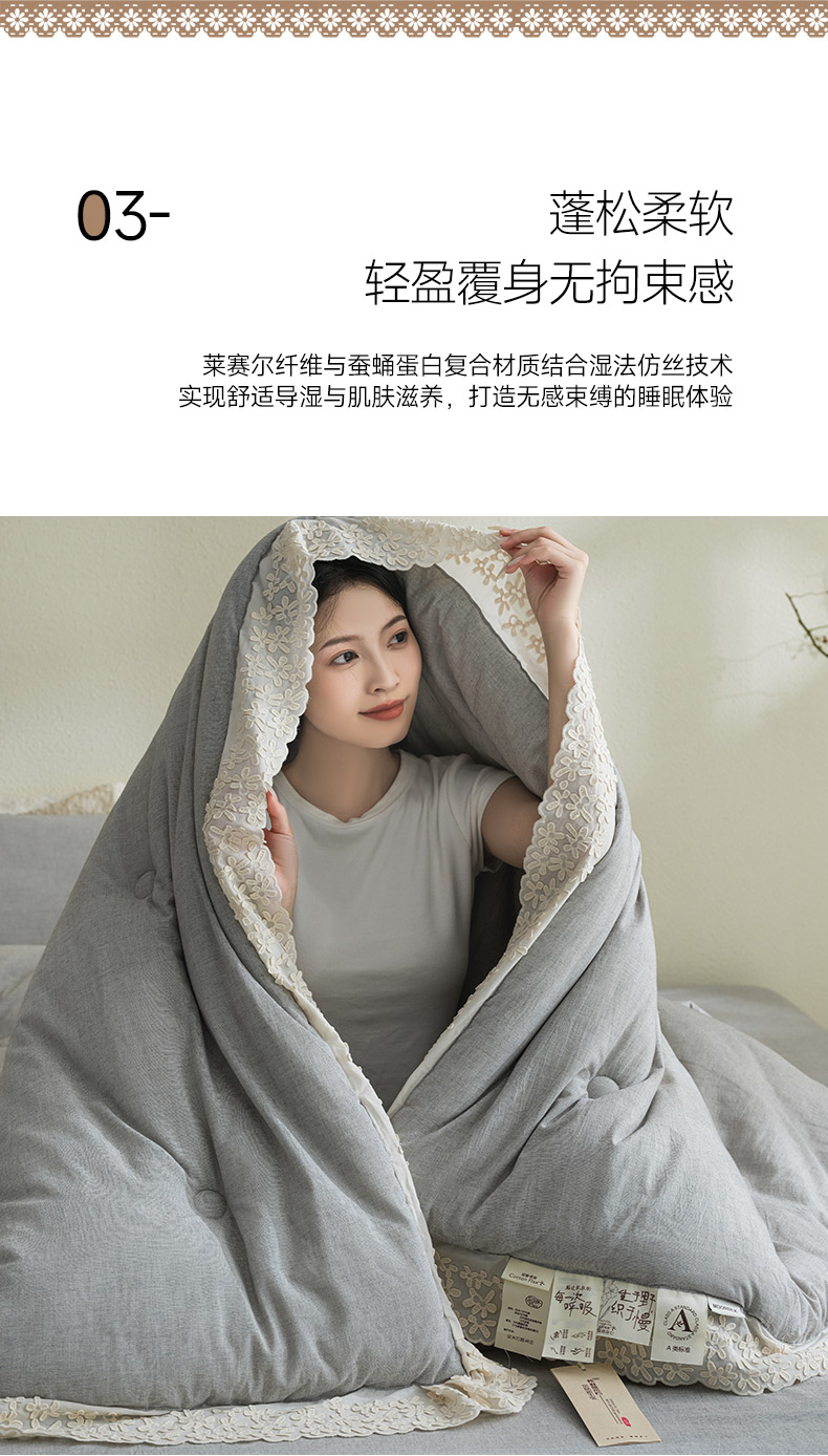 商品名称:桂雅居 2025新款舒适麻棉麻数码印花蕾丝花边懒人被被子被芯 烟墨灰