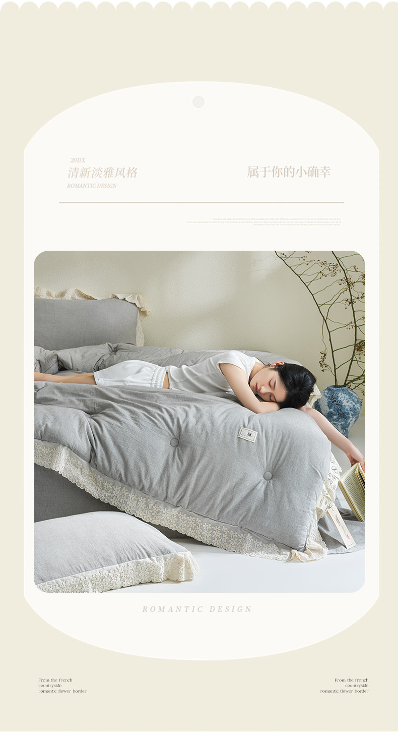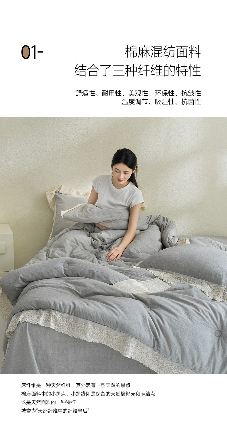 (总)桂雅居 2025新款舒适麻棉麻数码印花蕾丝花边懒人被被子被芯,时雨灰,栗壳色,烟墨灰,麻本色,素锦咖,映雪咖,组合