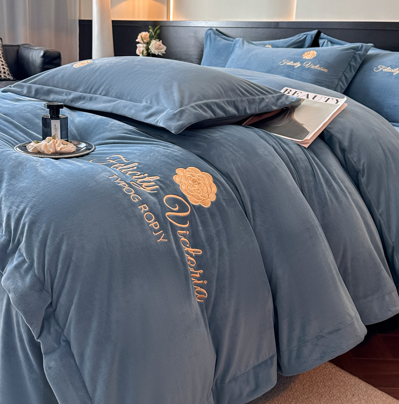 (总)鸿织源家纺 2025新款230g全消光牛奶绒刺绣四件套,宾利蓝,伯爵玉,罗兰灰,奶昔白,赛琳绿,相思咖,豆沙,摩卡棕