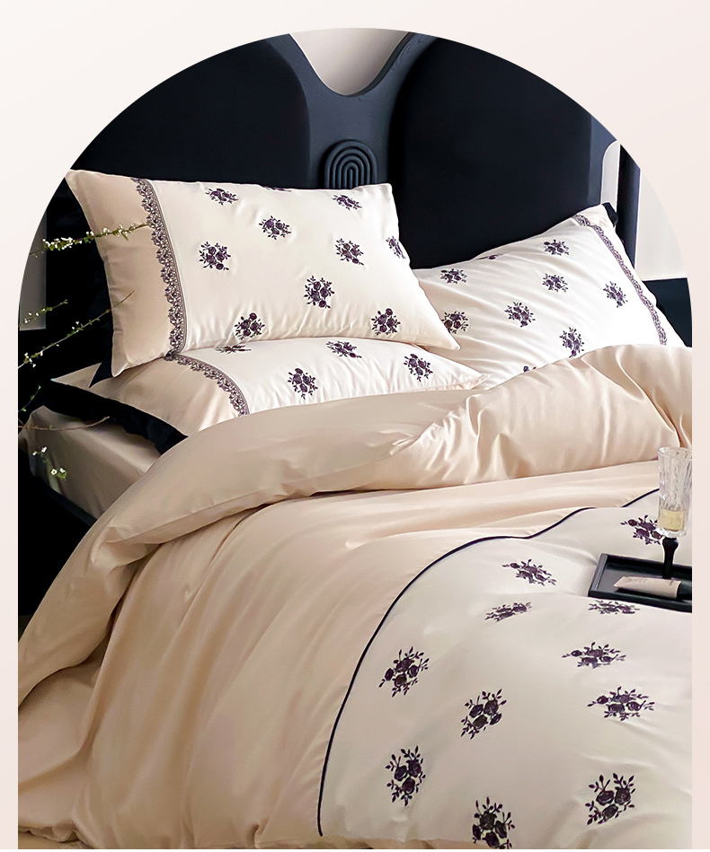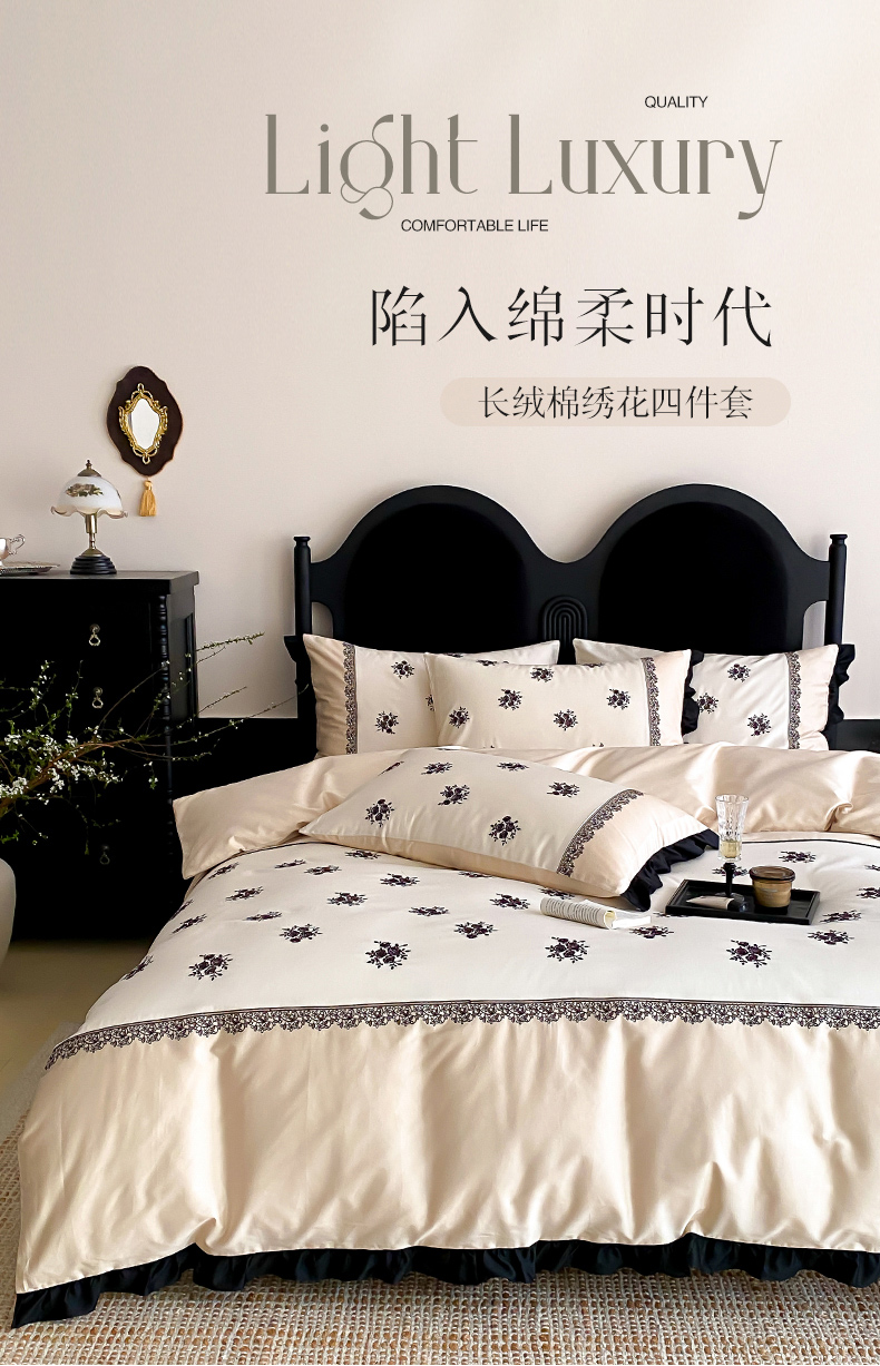 云栖家居 2025新款全棉纯棉长绒棉纯棉刺绣四件套-浅陌(控价不低于318元) 浅陌-香槟白
