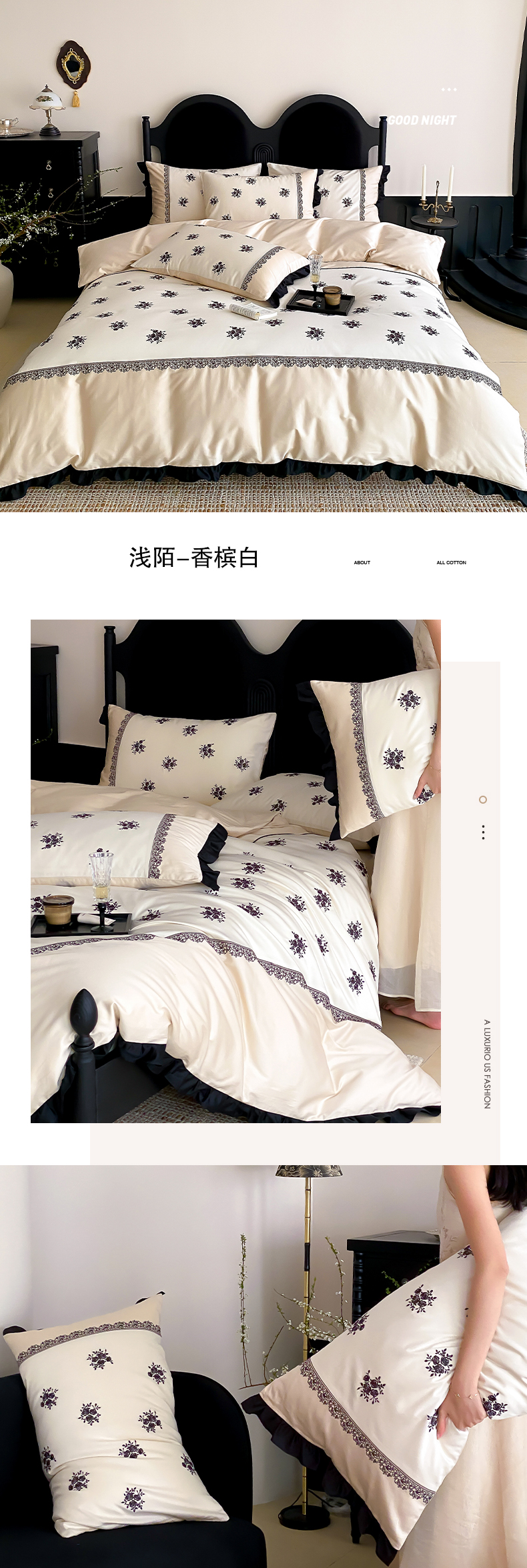 商品名称:云栖家居 2025新款全棉纯棉长绒棉纯棉刺绣四件套-浅陌(控价不低于318元) 浅陌-香槟白