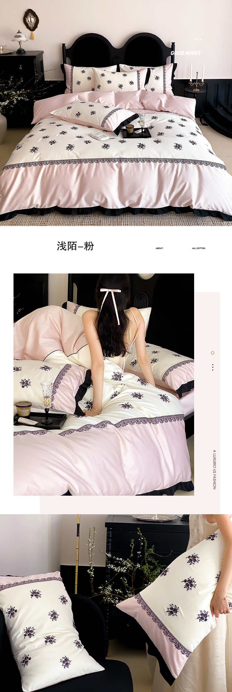 (总)云栖家居 2025秋冬新款50支纯色双拼加厚全棉磨毛被套刺绣100S纯棉四件套-小蝴蝶系列,粉灰,粉紫,蓝灰,米玉,月光黄