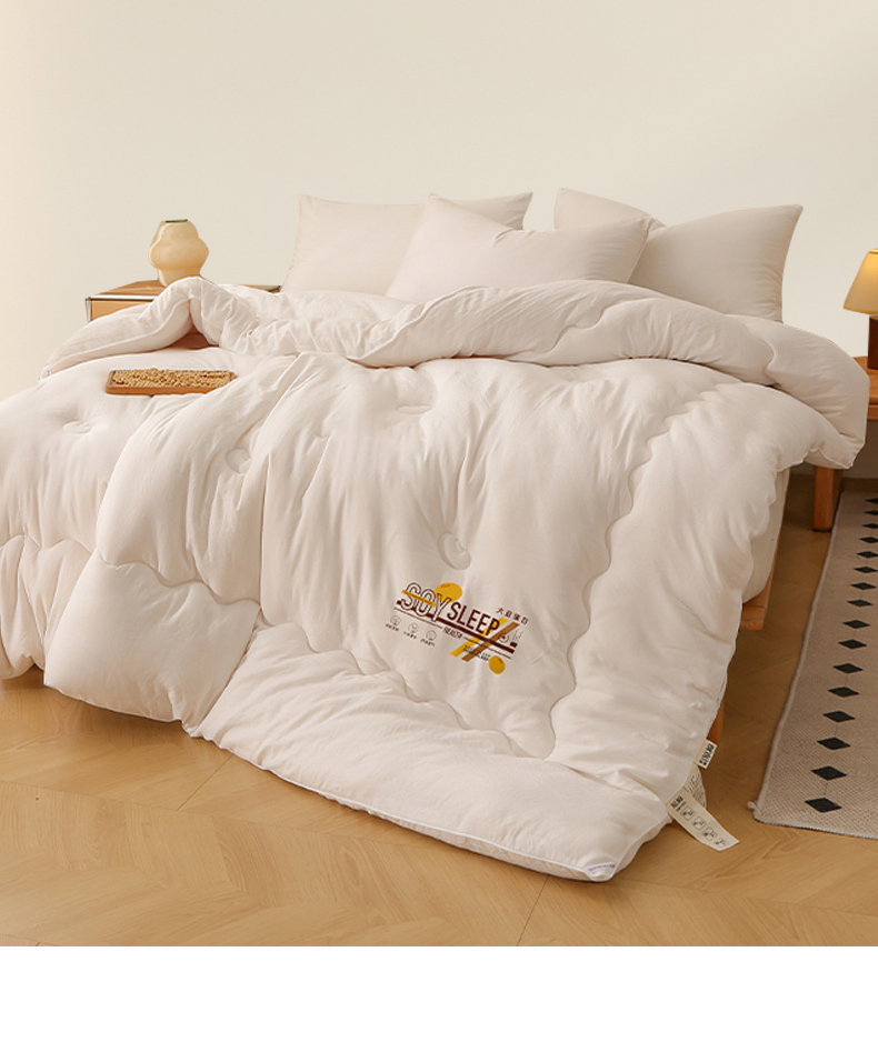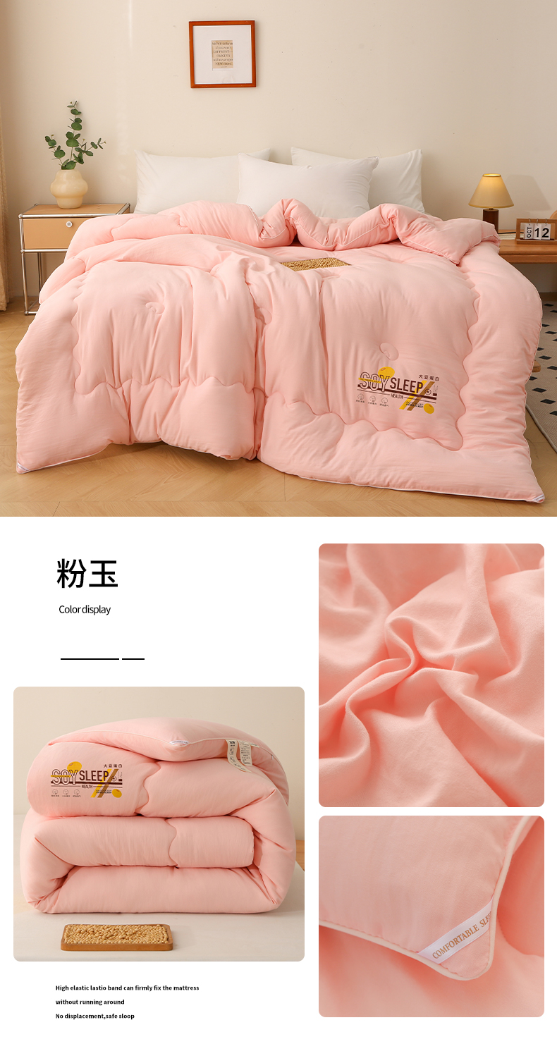 • 91家纺网 家纺一手货源 找家纺 薇玛仕 2025新款简约超柔水洗皱皱棉大豆被秋冬被被子被芯 粉玉