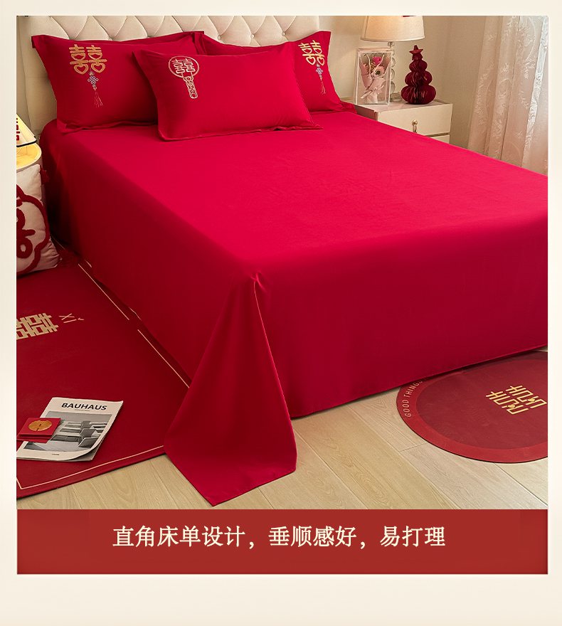 梵克保罗 2025新款140高克重磨毛亲肤棉刺绣婚庆四件套 龙凤呈喜