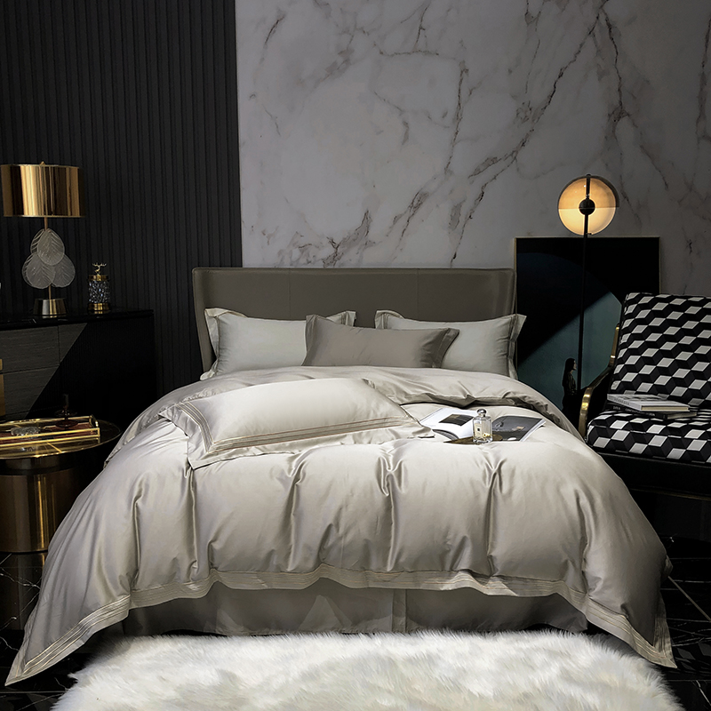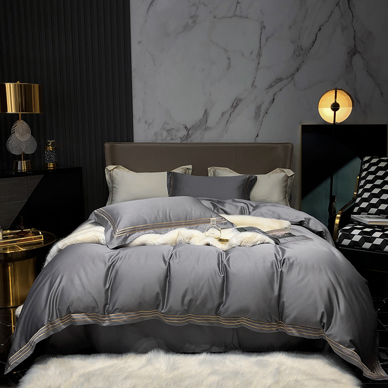 商品名称:梵克保罗 2025春夏新款全棉长绒棉100支三线绣刺绣四件套 女神灰