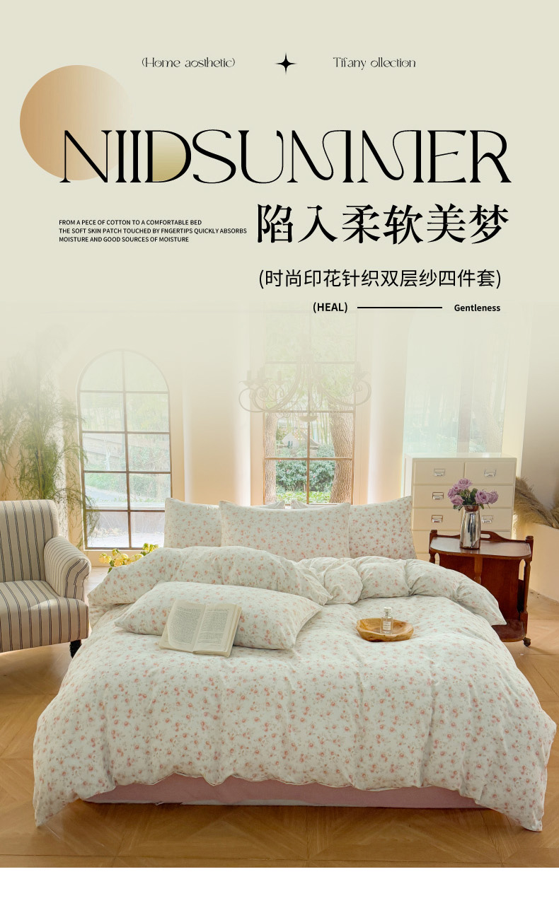 当前位置: 91家纺网 > 商品网购 > 床品套件 > 四件套 > 针织棉四件套 > 梵克保罗 2025新款有氧针织双层纱印花四件套 薇薇安