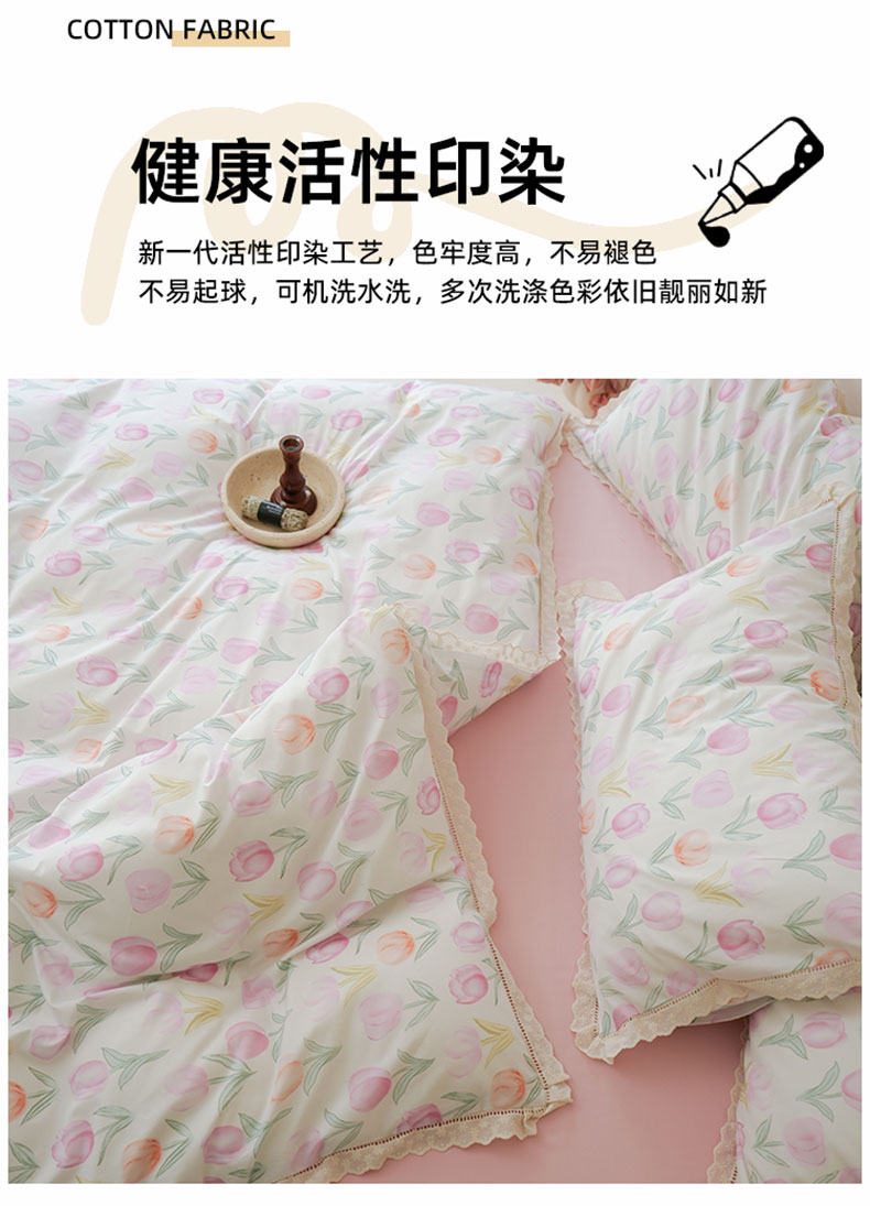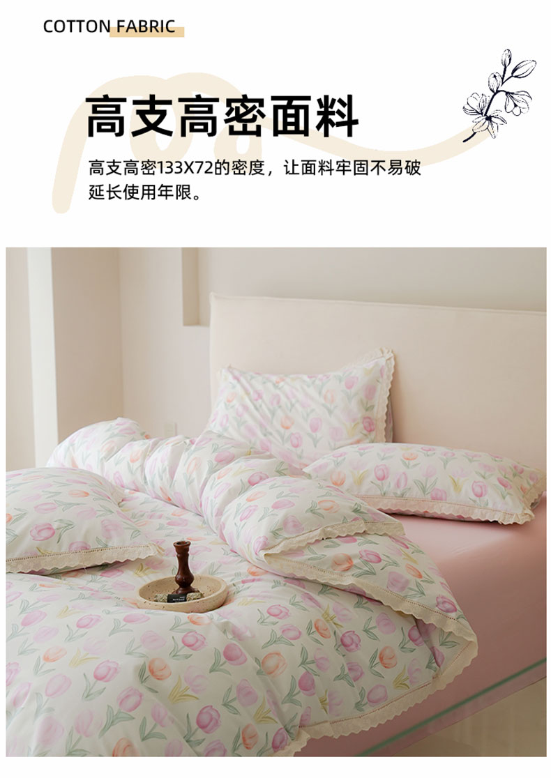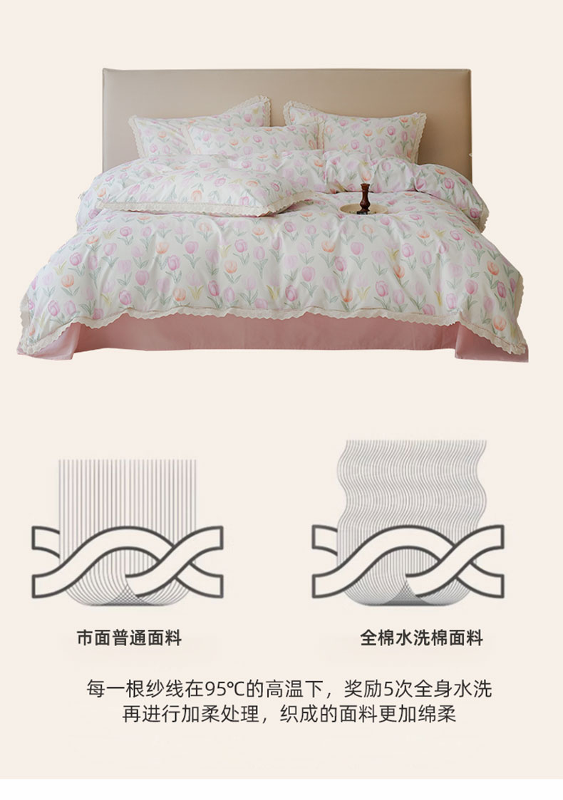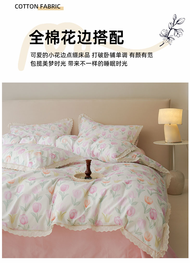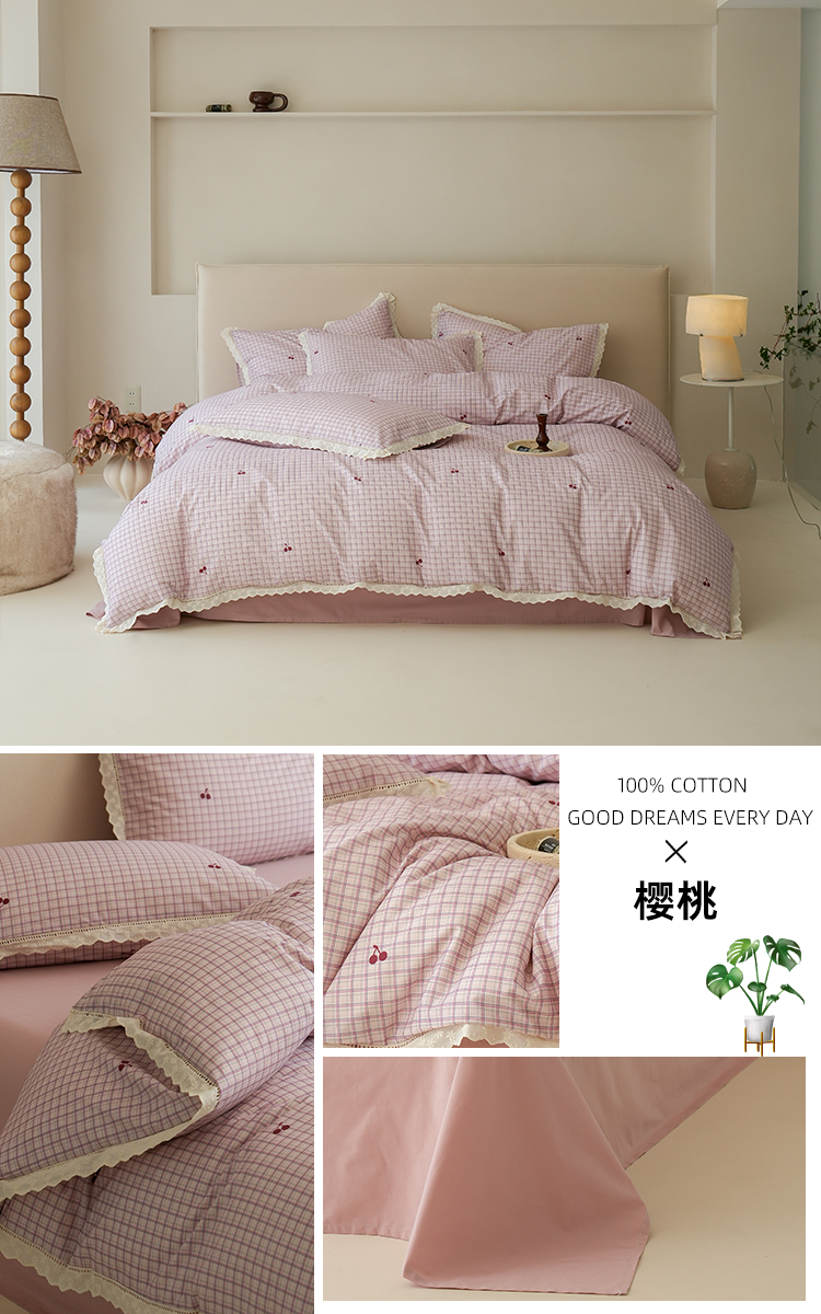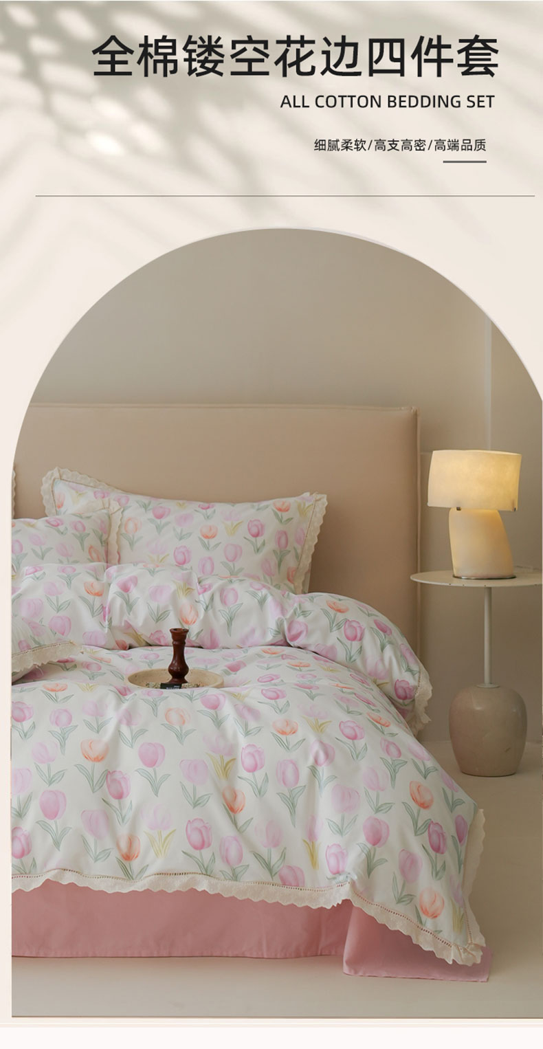 商品名称:洺兰家居 2025年小清新全棉13372镂空花边小碎花ins风水洗棉四件套 丁香