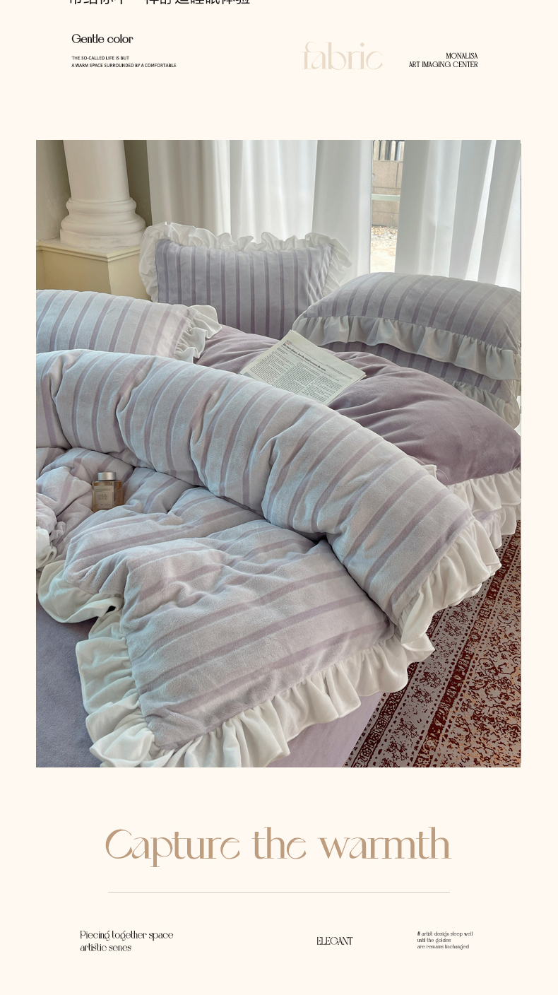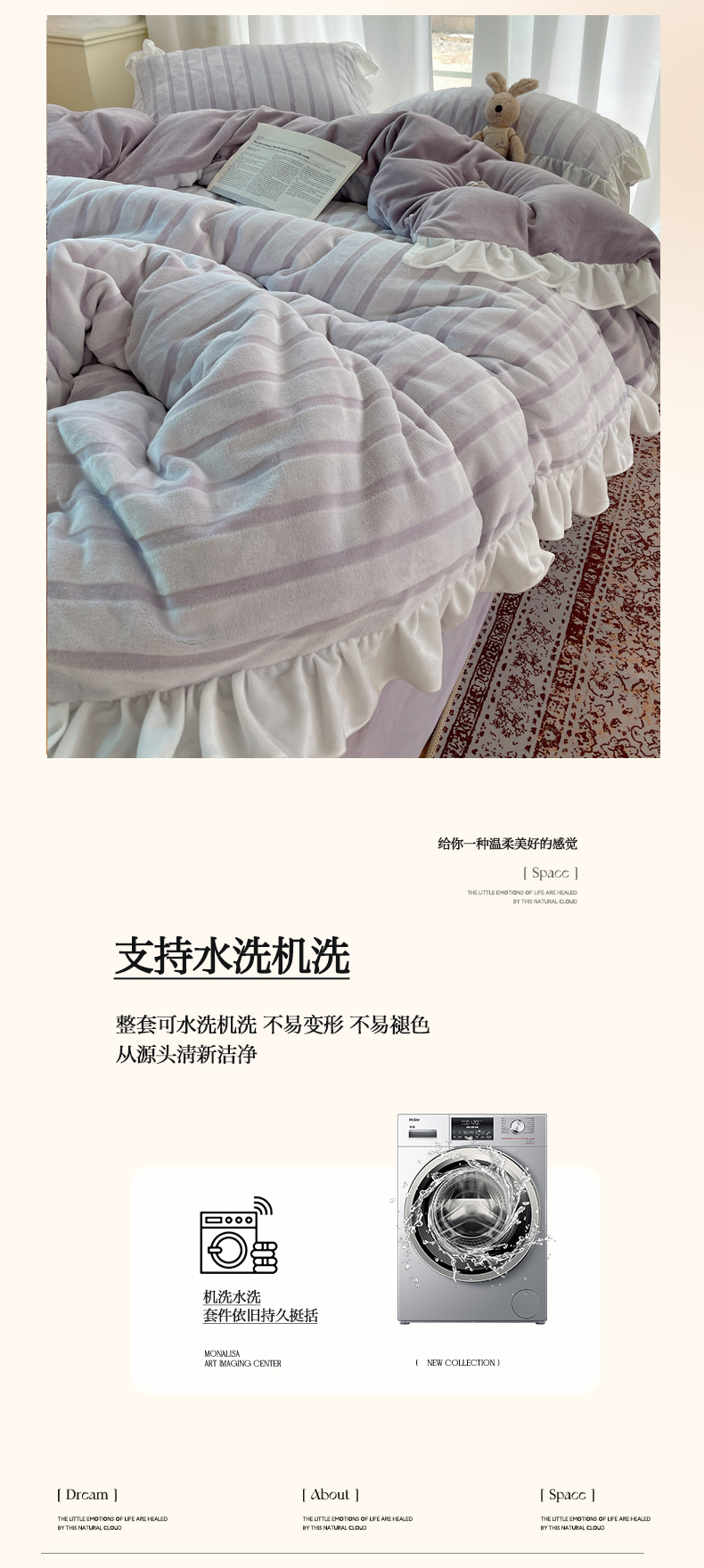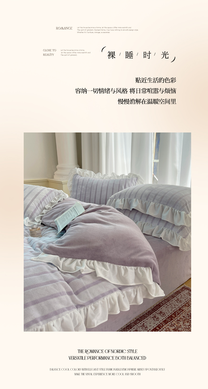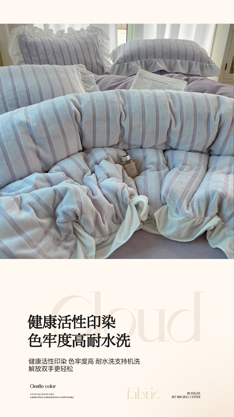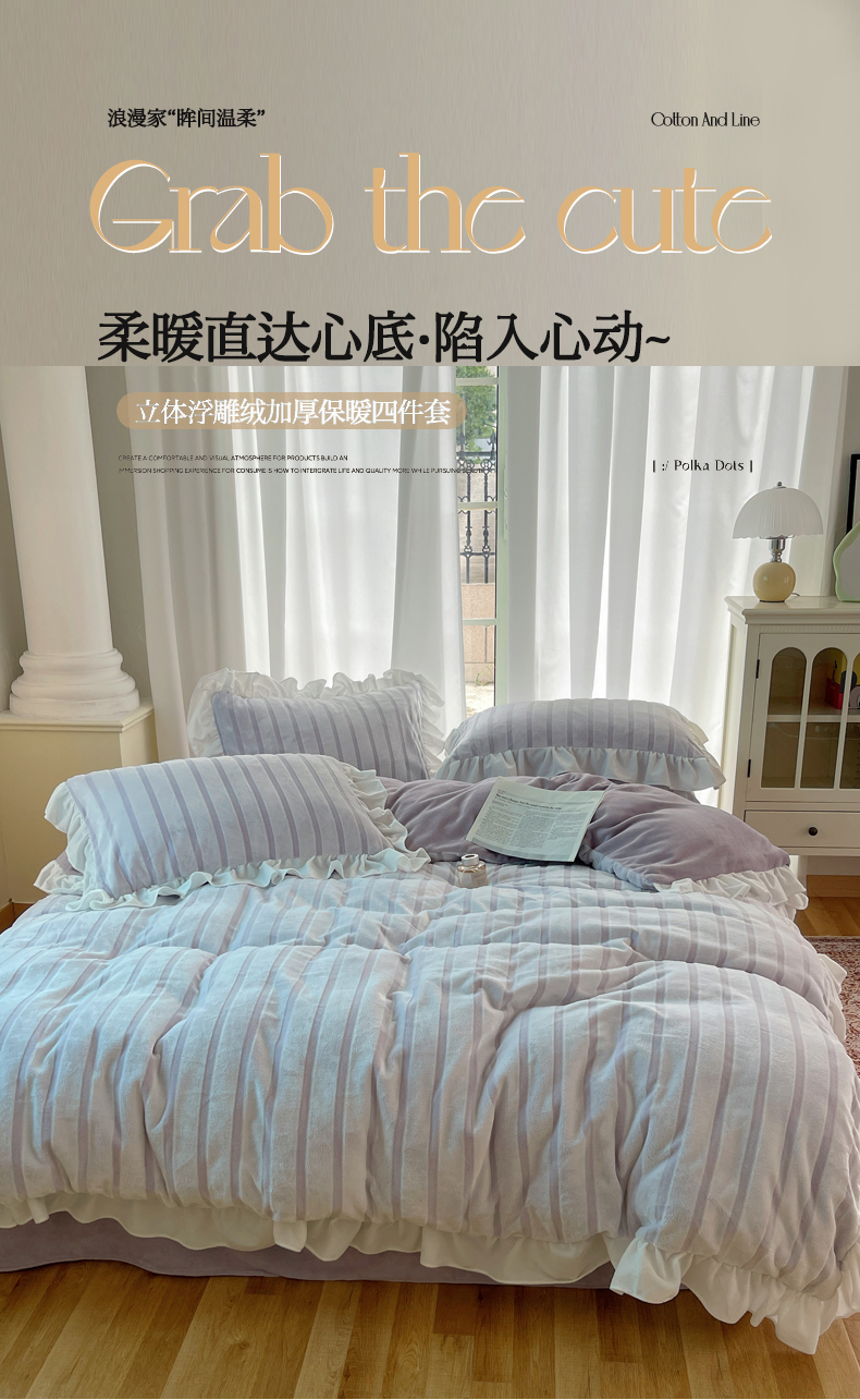 当前位置: 91家纺网 > 商品网购 > 床品套件 > 四件套 > 牛奶绒四件套 > 三朵家纺 2025新款3D立体加厚雕花绒牛奶绒花边款四件套 花边宽条-紫