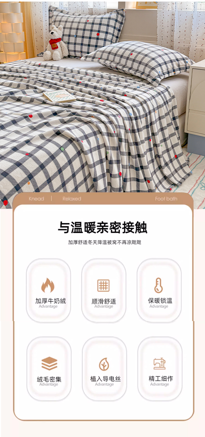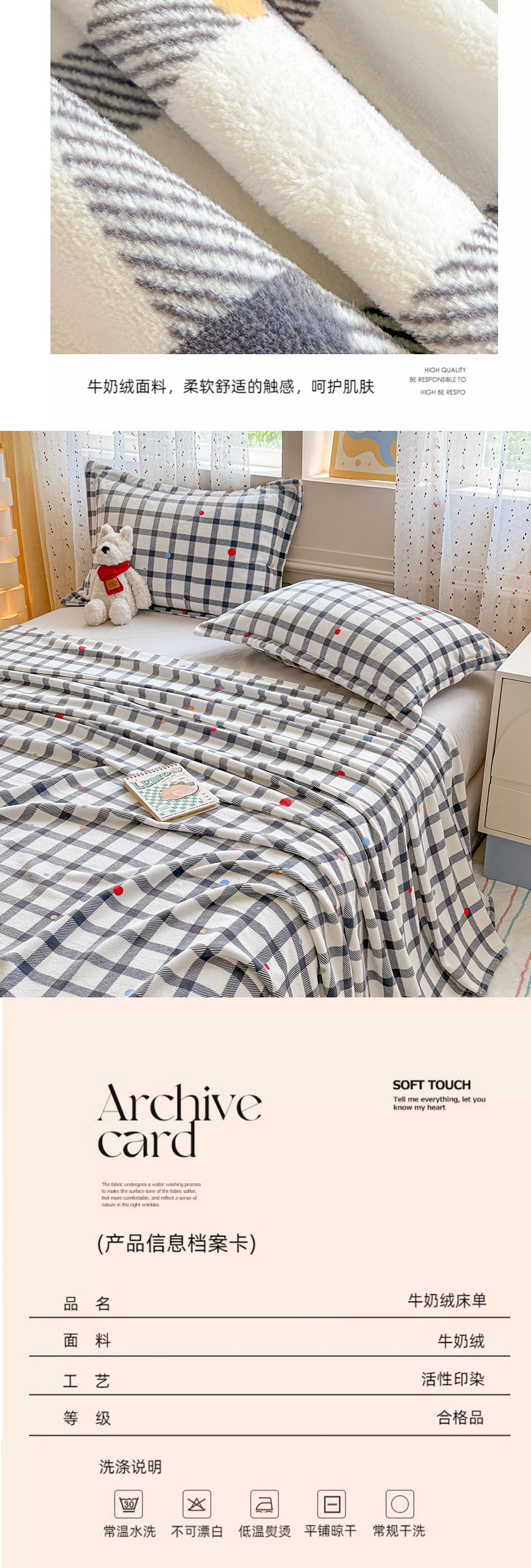 丽美人 2025新款高克重印花牛奶绒无印风床单款(A类母婴级面料) 黑白格调