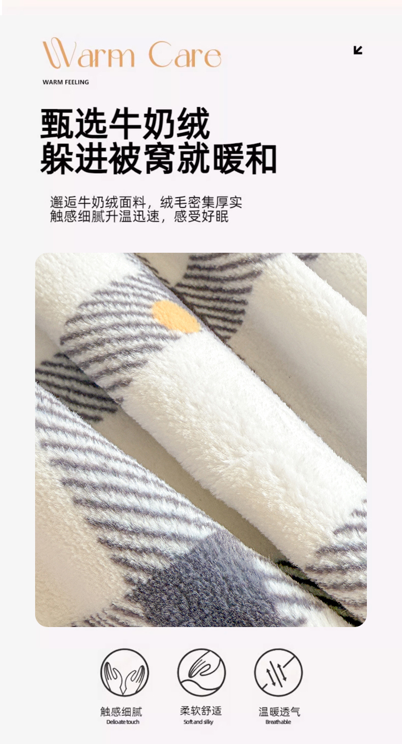 • 91家纺网 家纺一手货源 找家纺 丽美人 2025新款高克重印花牛奶绒无印风床单款(A类母婴级面料) 黑白格调