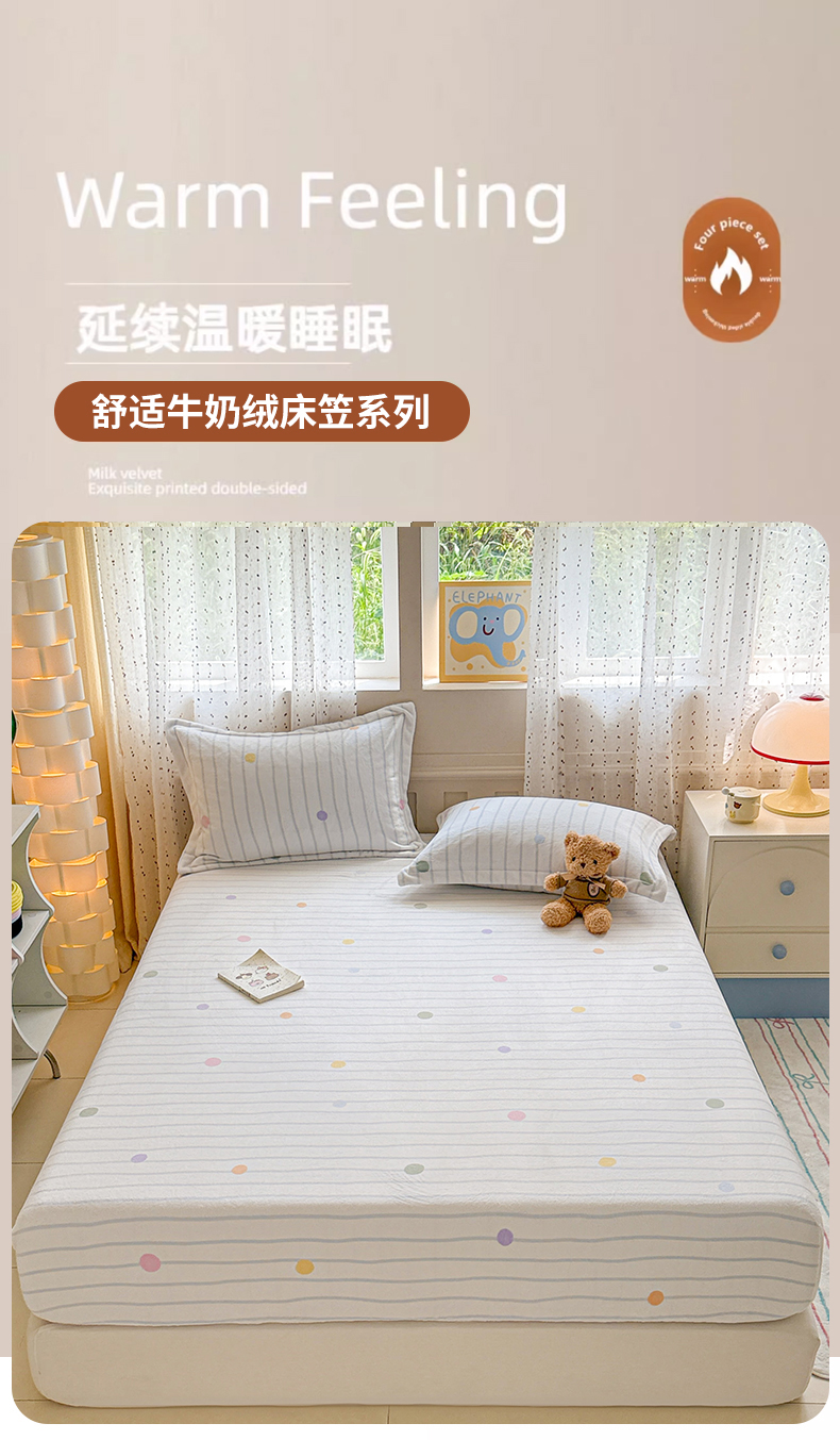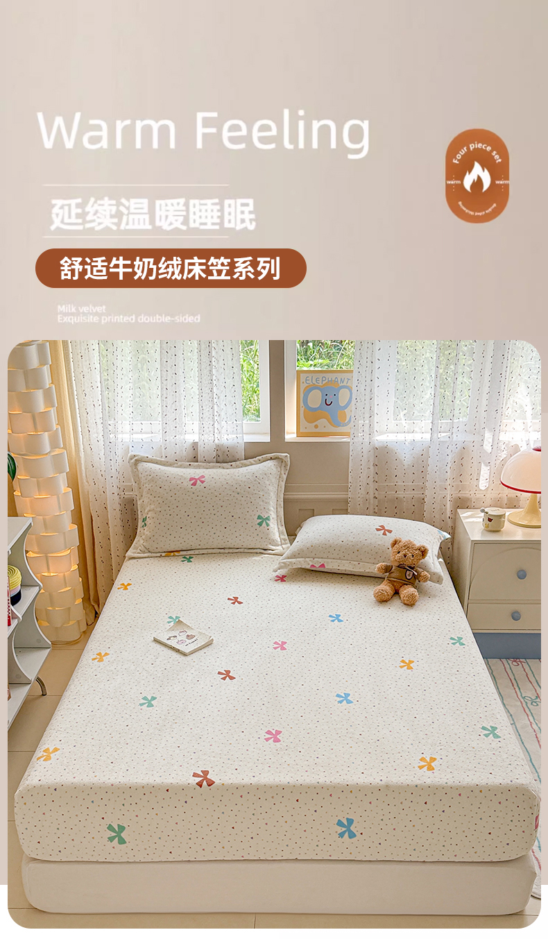 (总)丽美人 2025新款高克重印花牛奶绒无印风床笠款(A类母婴级面料)