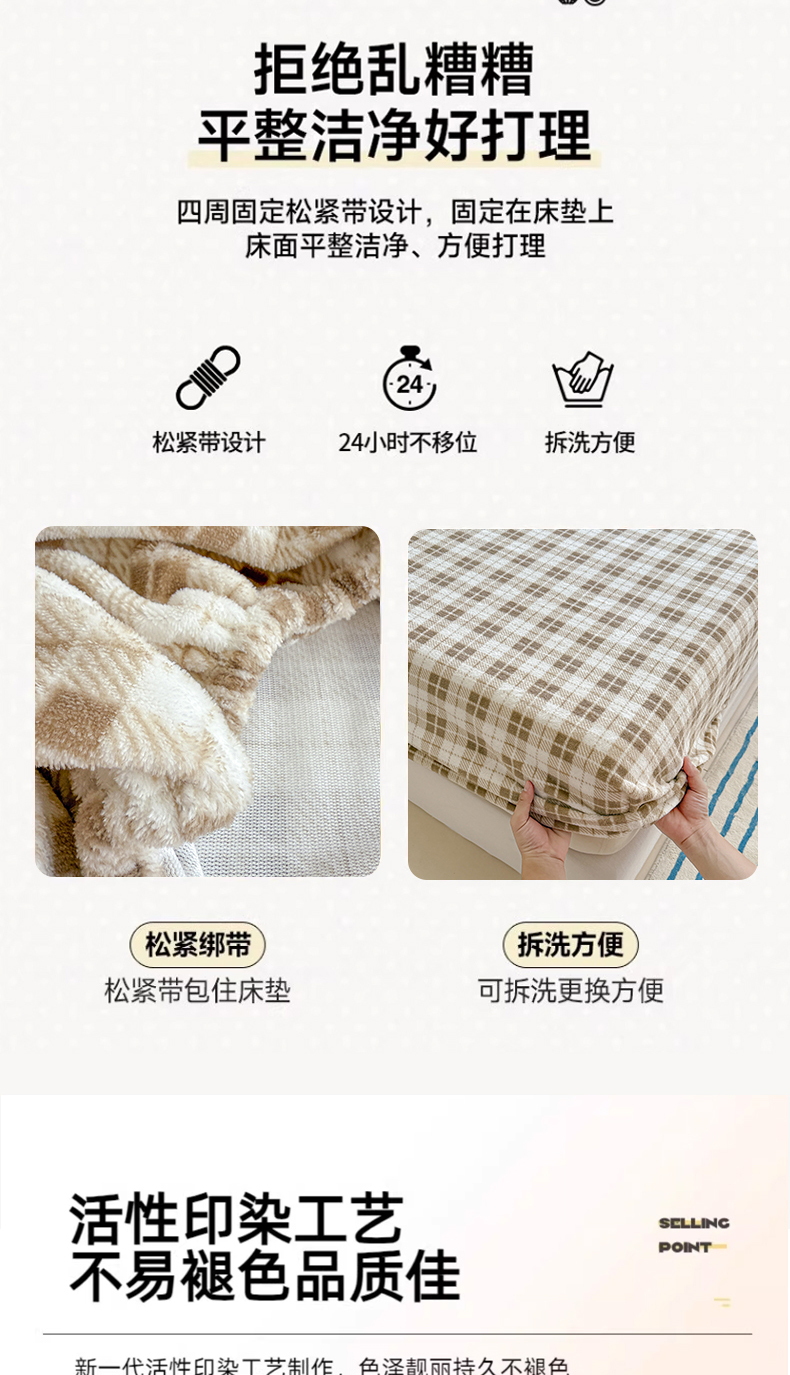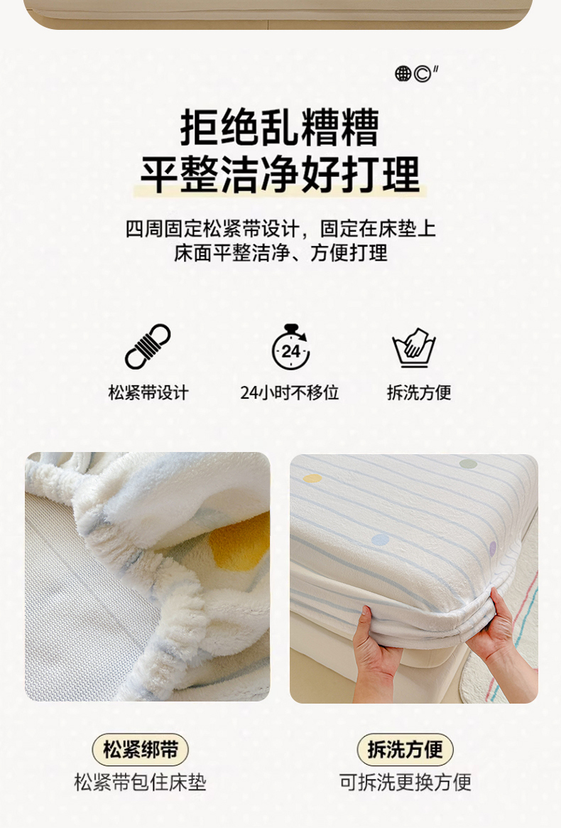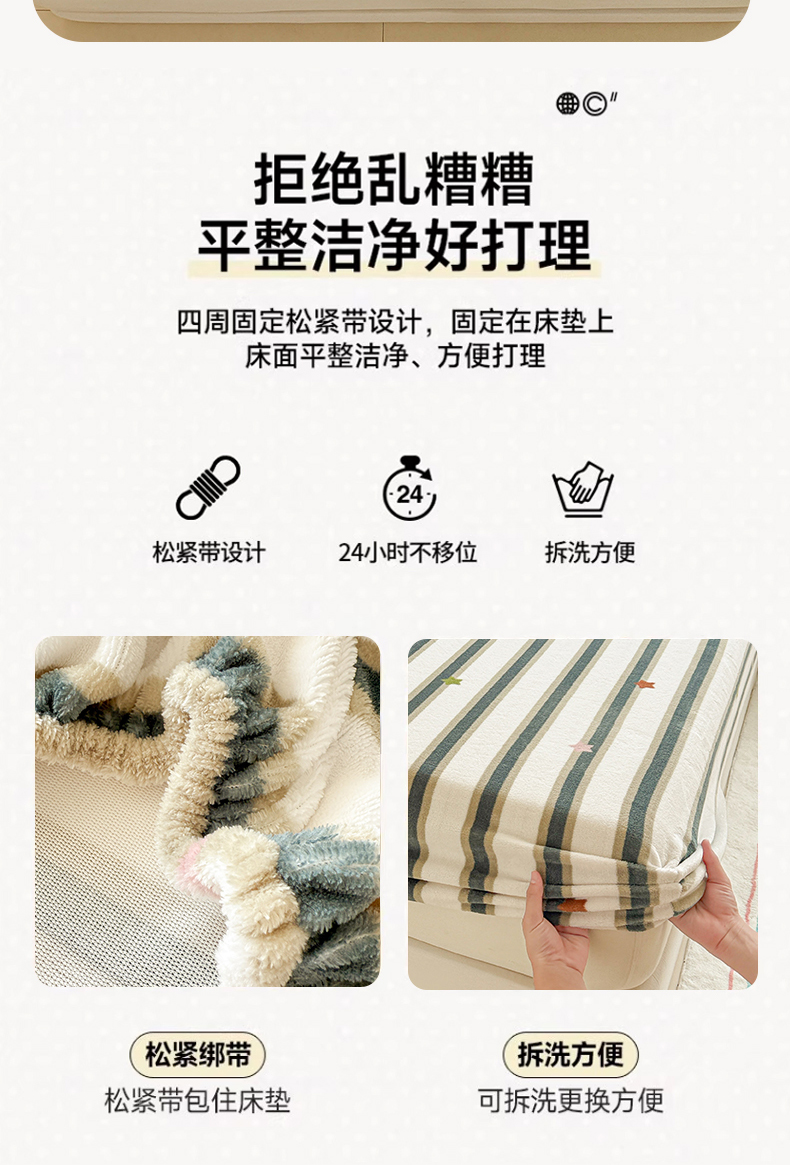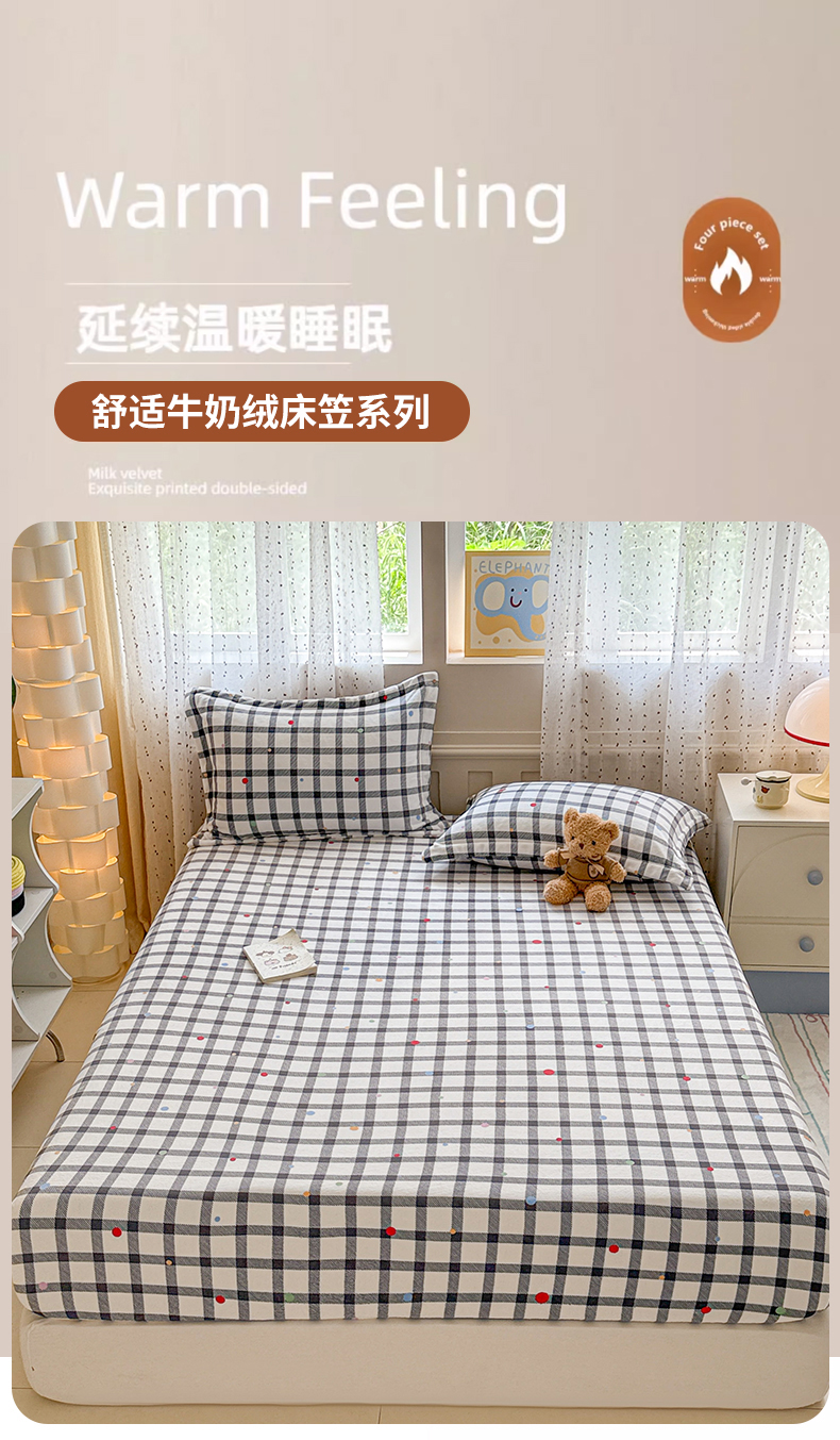 商品名称:(总)丽美人 2025新款高克重印花牛奶绒无印风床笠款(A类母婴级面料)