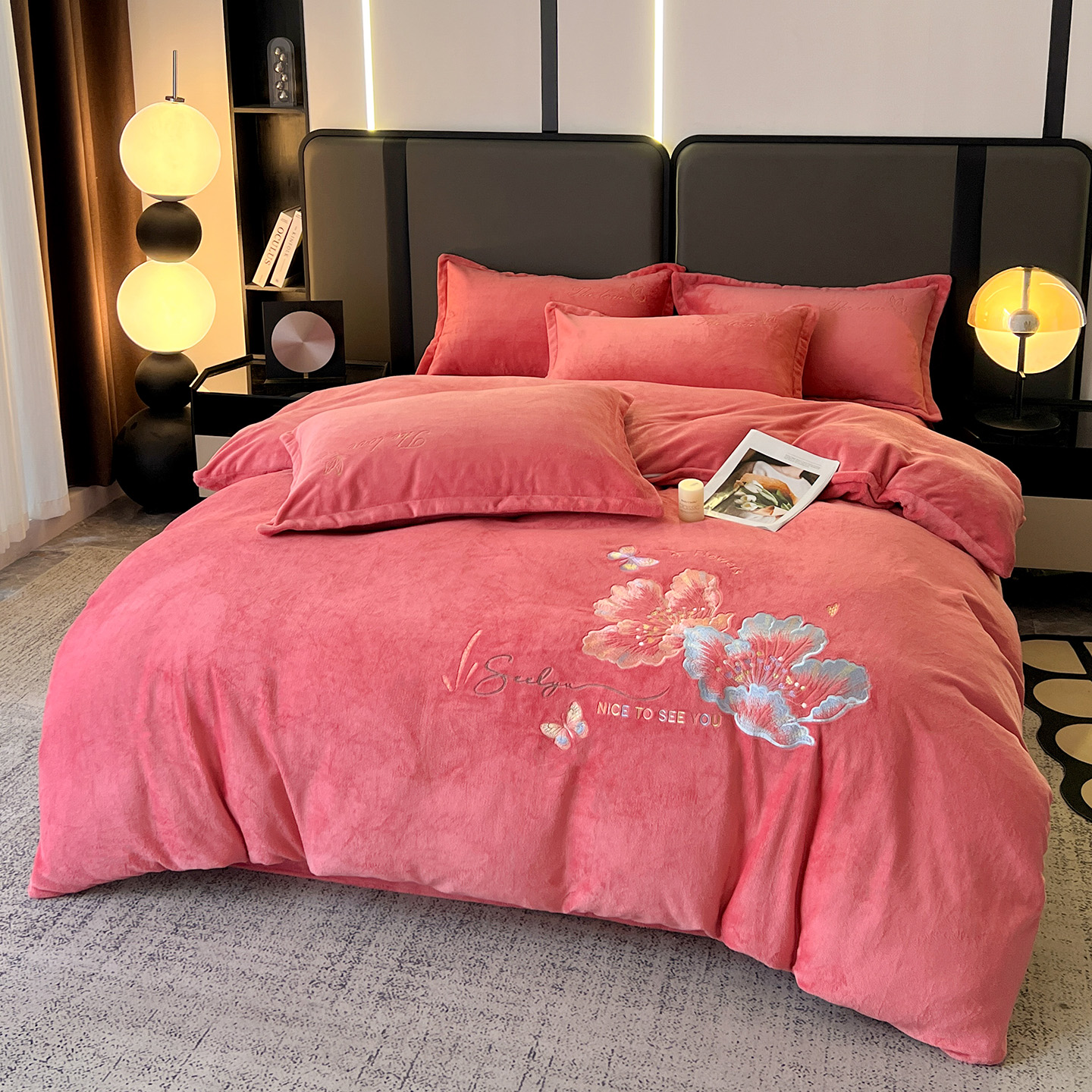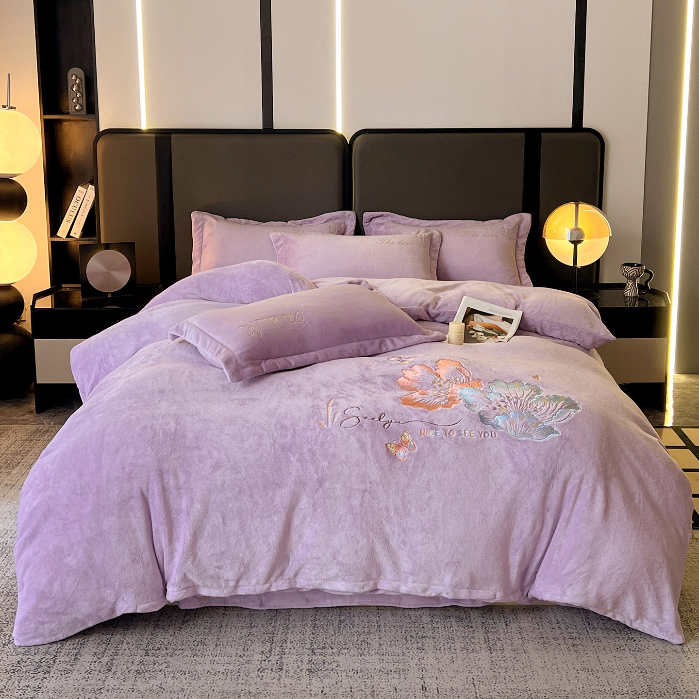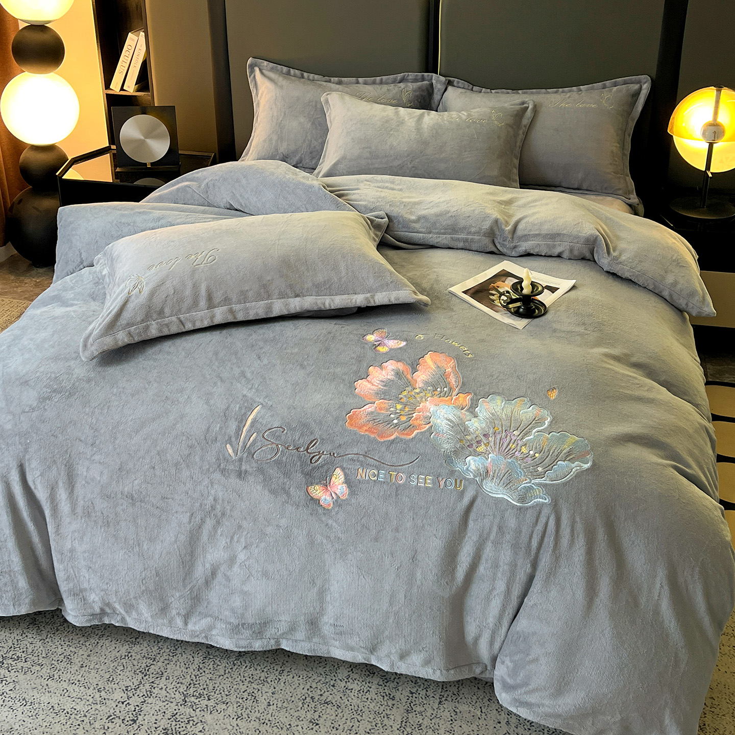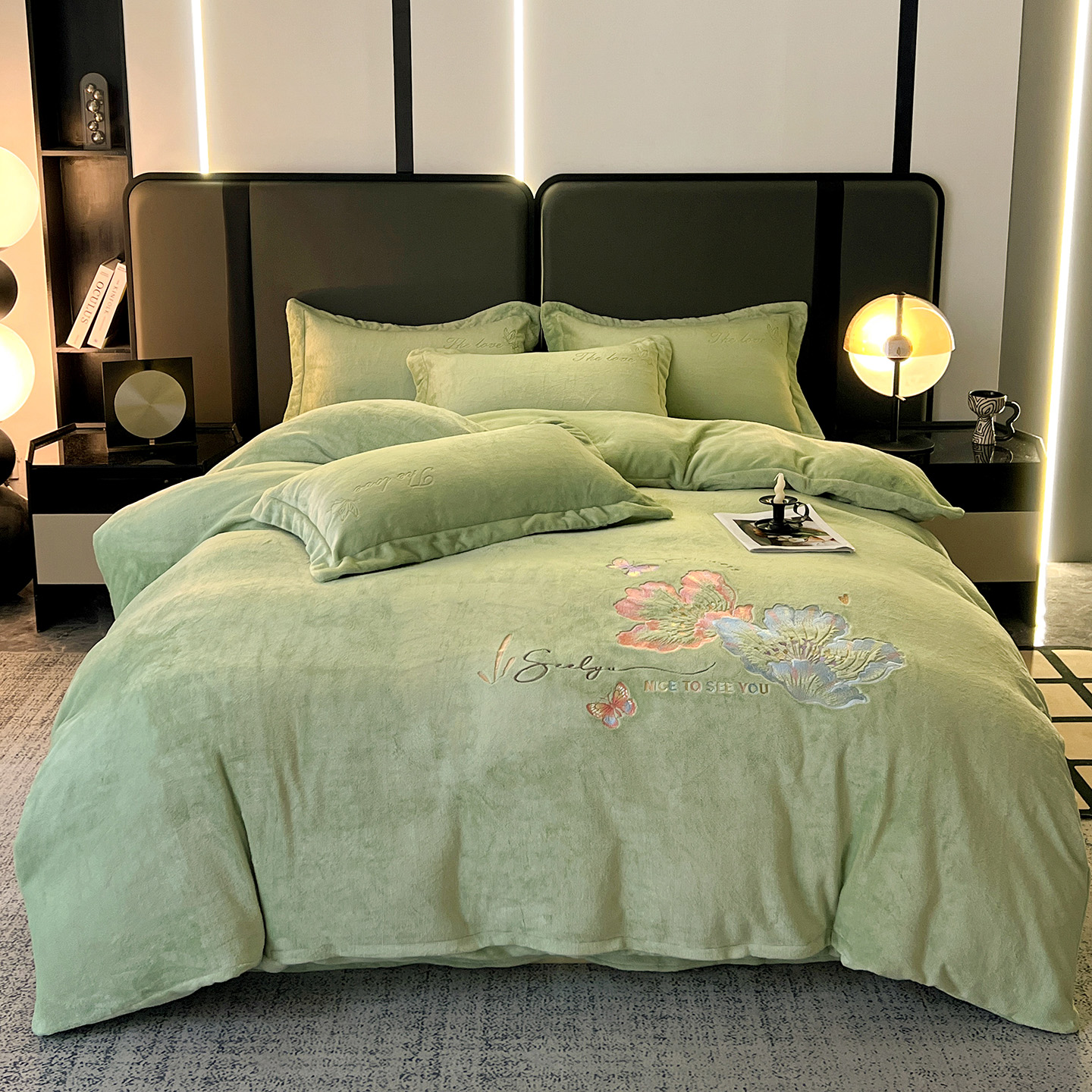 (总)居易简 2025新款亲肤刺绣款牛奶绒四件套-蝶影翩翩
