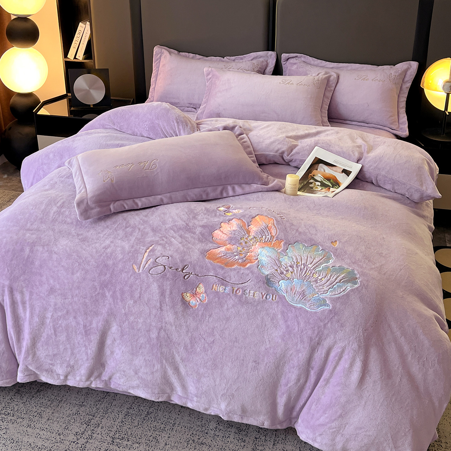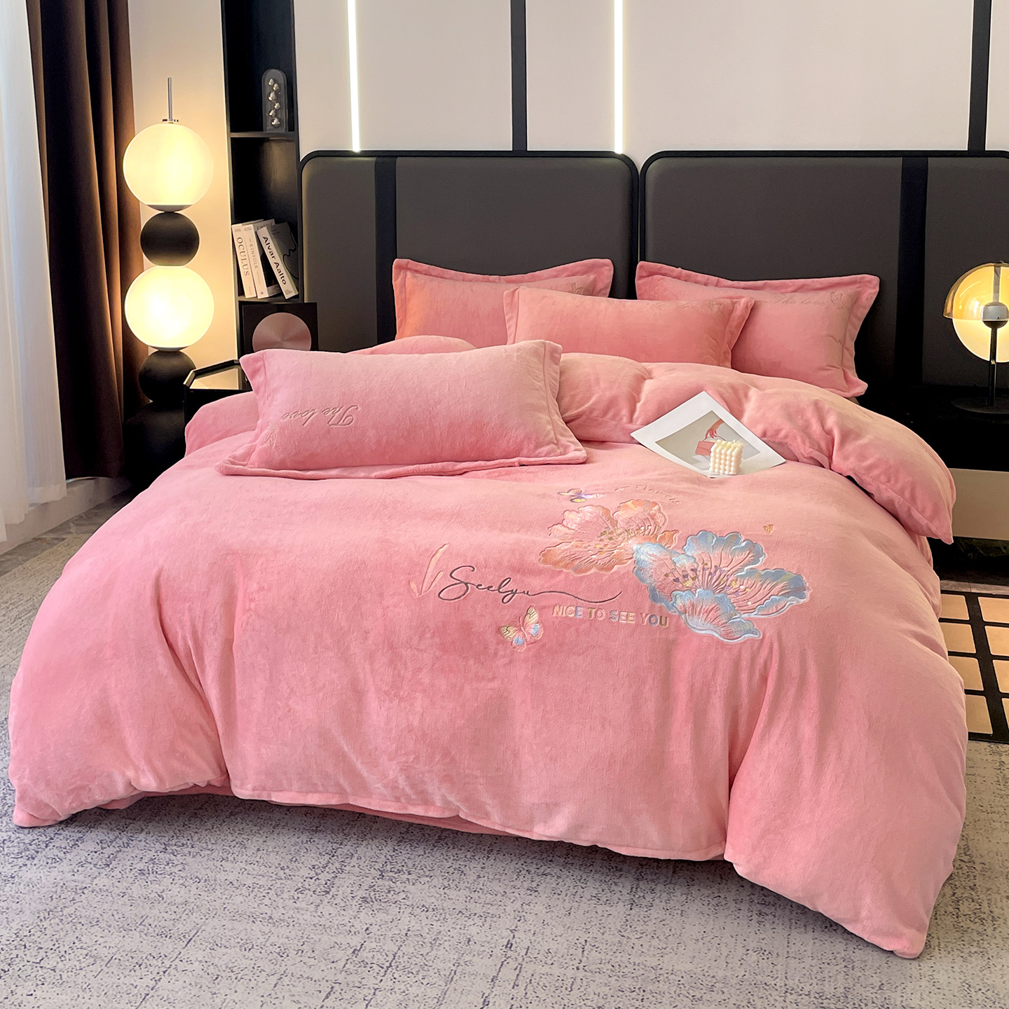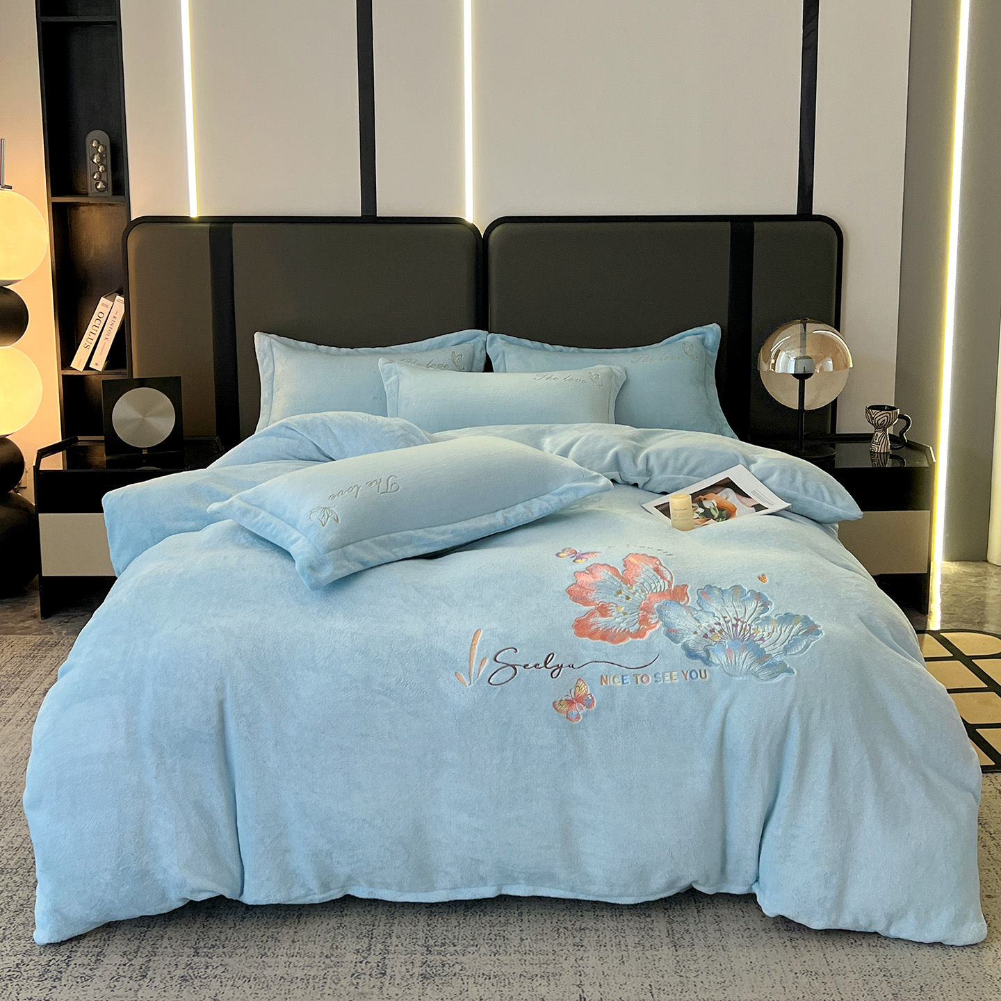 (总)居易简 2025新款亲肤刺绣款牛奶绒四件套-蝶影翩翩